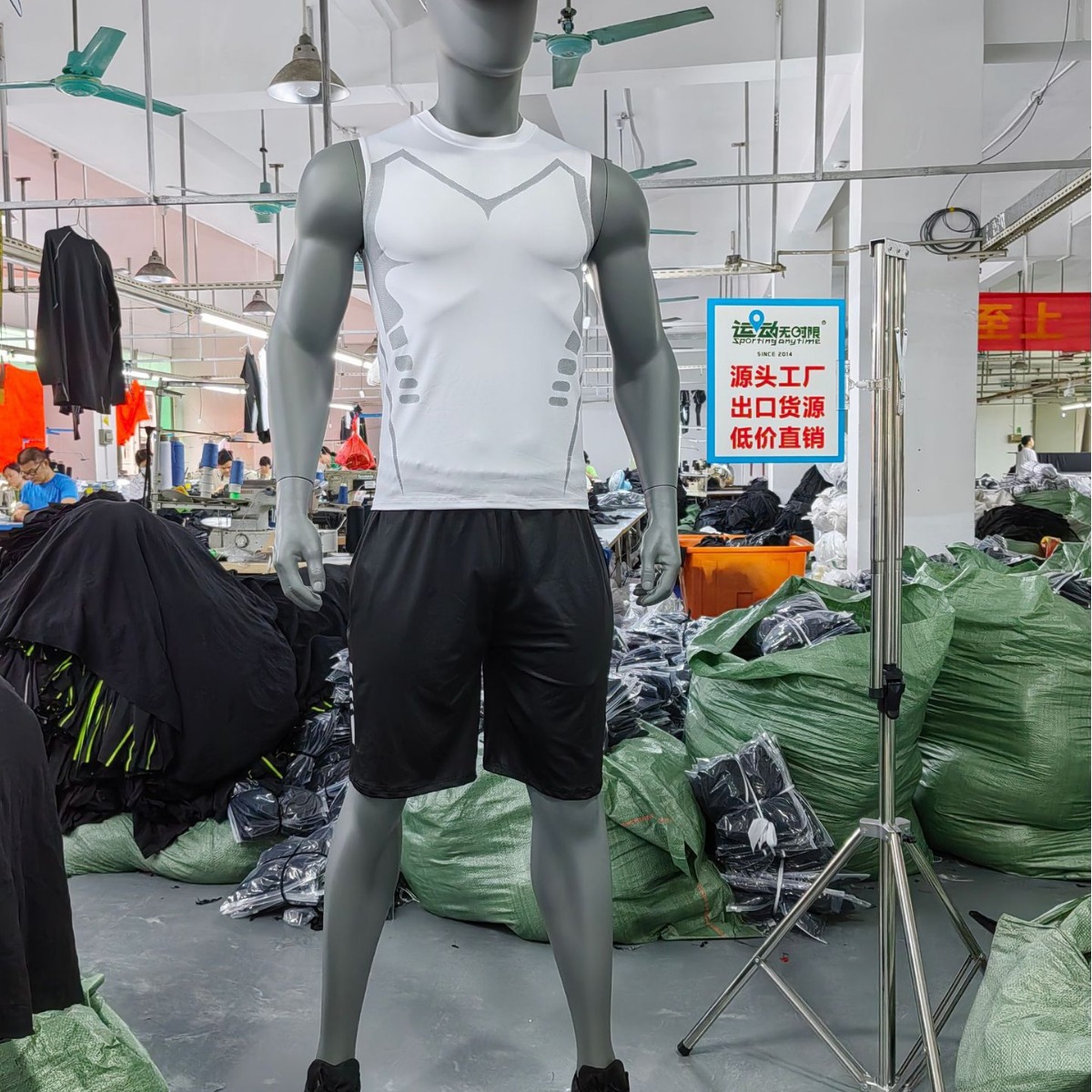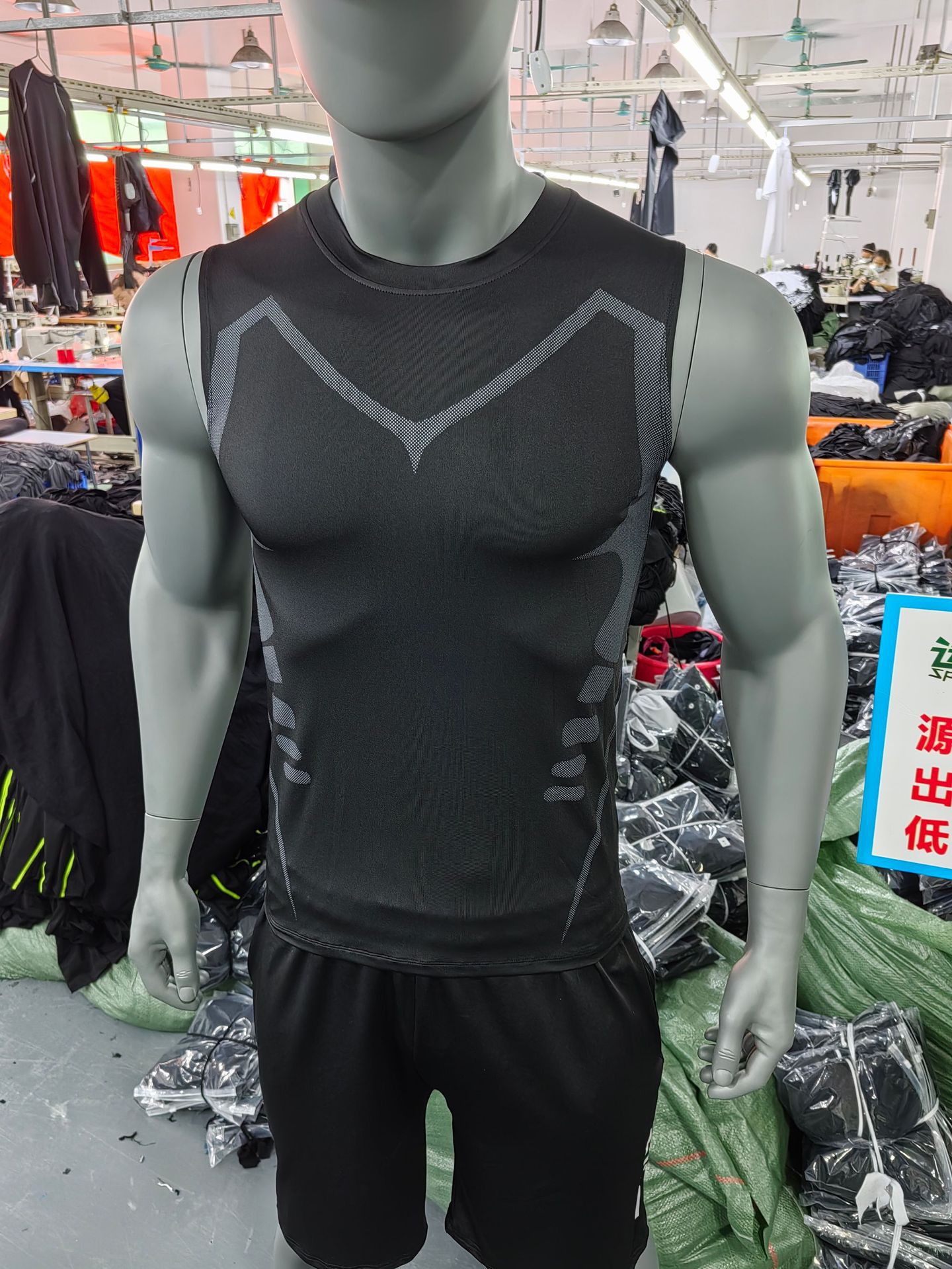 Трансграничные спортивные жилеты Мужская спортивная одежда Быстрая сухая и дышащая стройная без рукавов Обтягиваемый тренировочный жилет Мужское лето