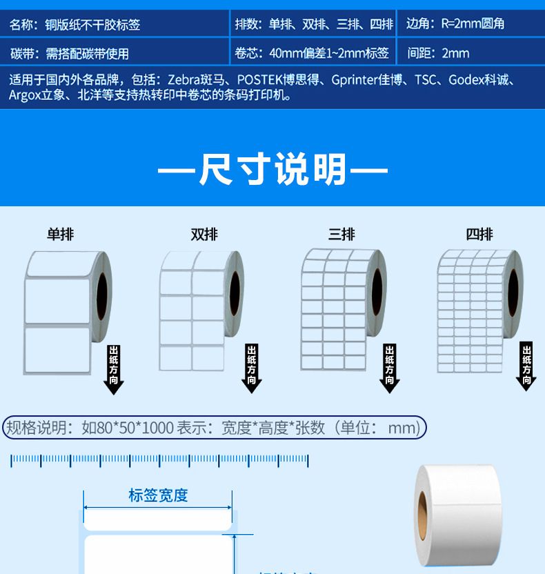 Фабрика прямых продаж мульти-стандарт мелованной бумаги пустой самоклеящий этикетка штрих-код машины медная пластина лент печать наклейки на заказ