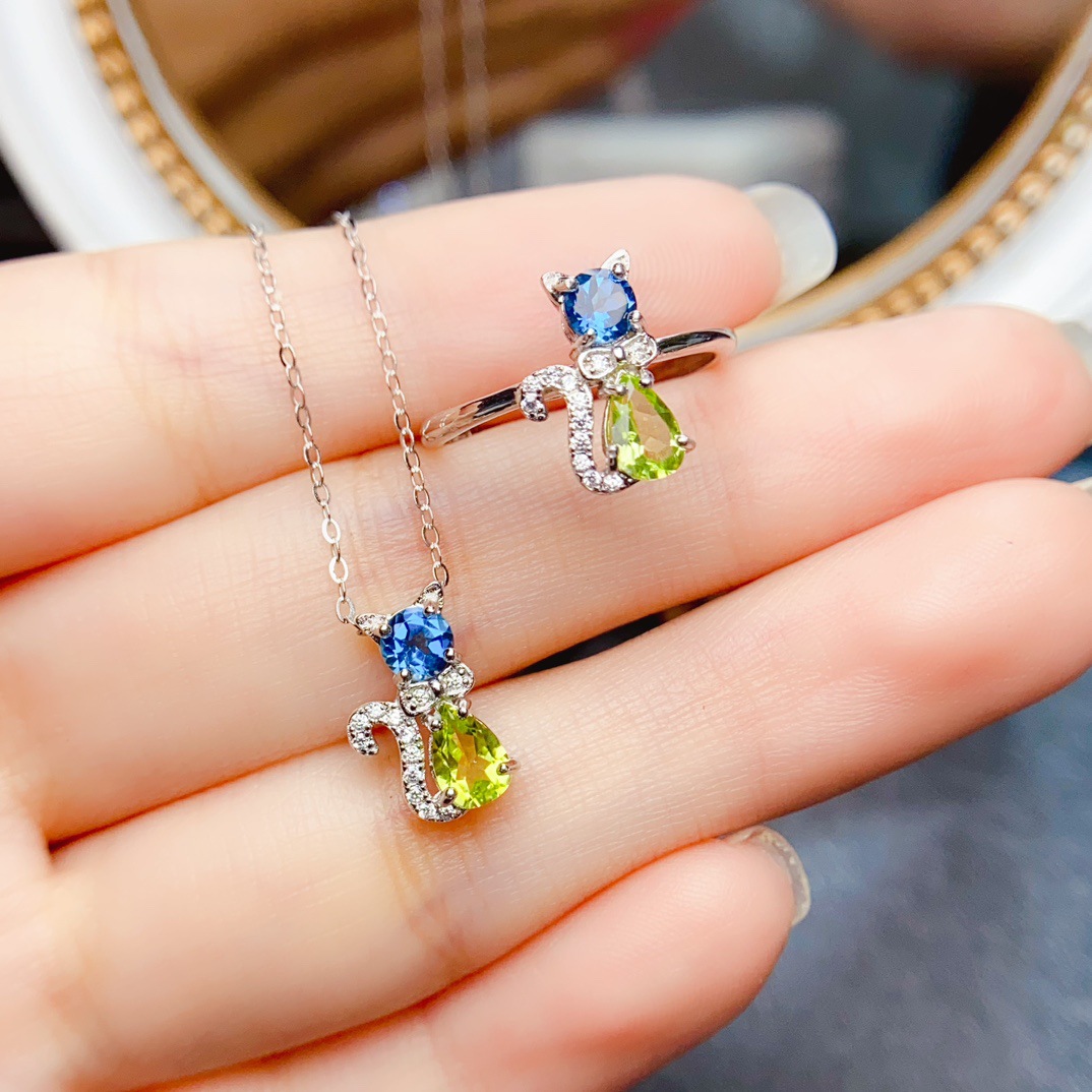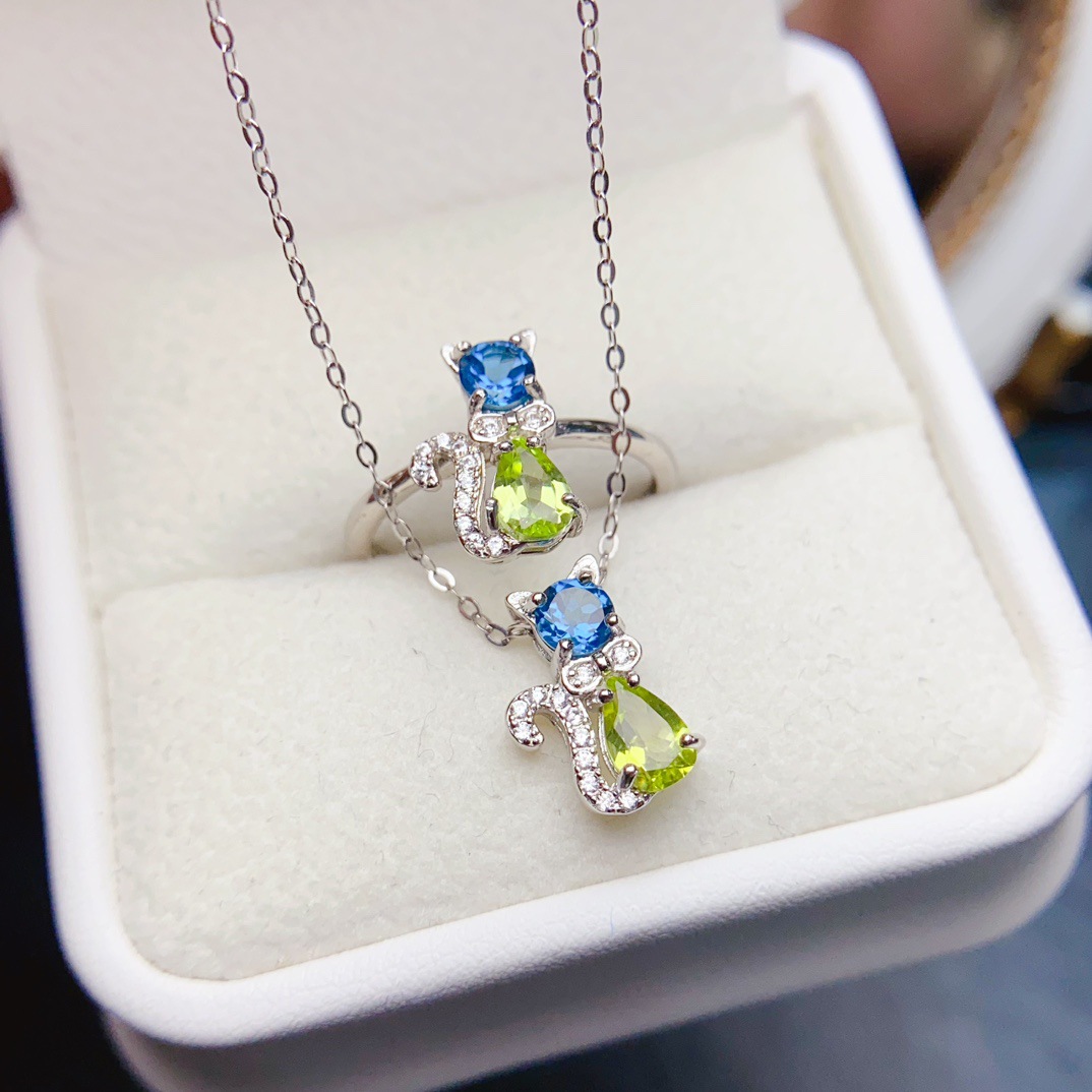 Новый натуральный оливин набор S925 Серебряный инкрустированный основной камень 4*6 мм