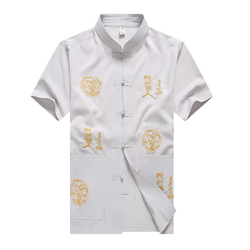 Мужской летний кардиган в китайском стиле из хлопка, повседневная одежда, ретро-костюм с вышивкой дракона, этническая одежда в стиле Тан для мужчин среднего возраста