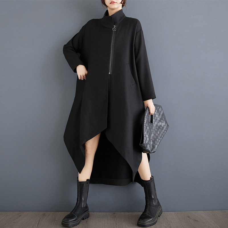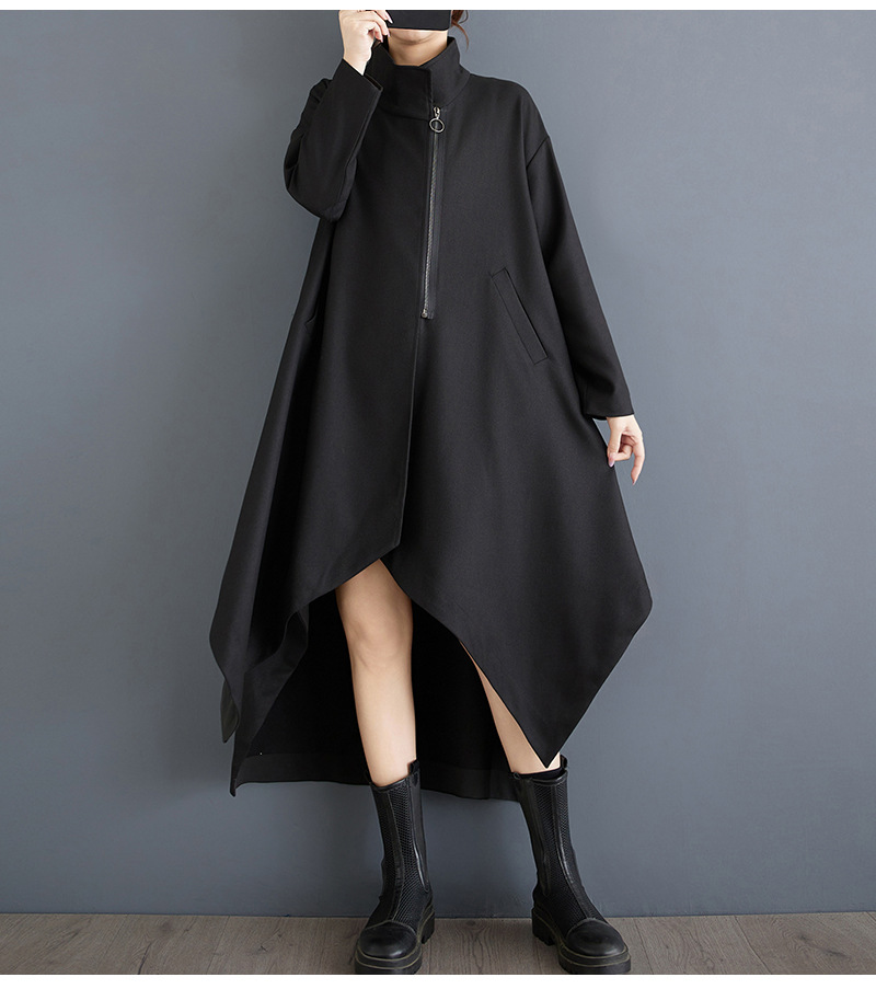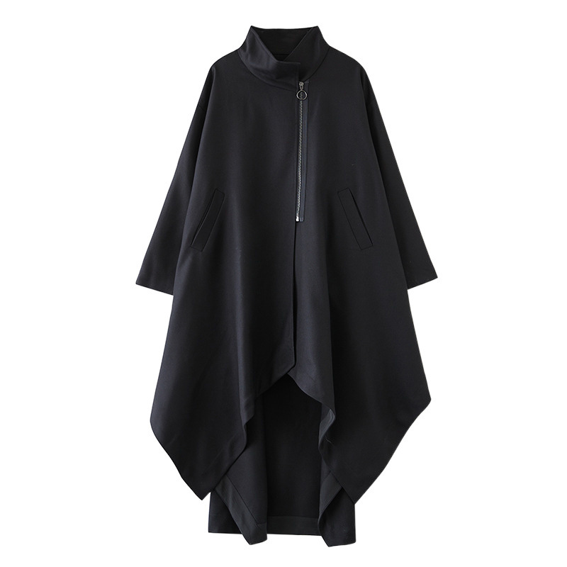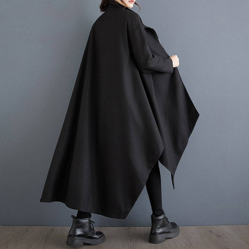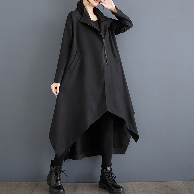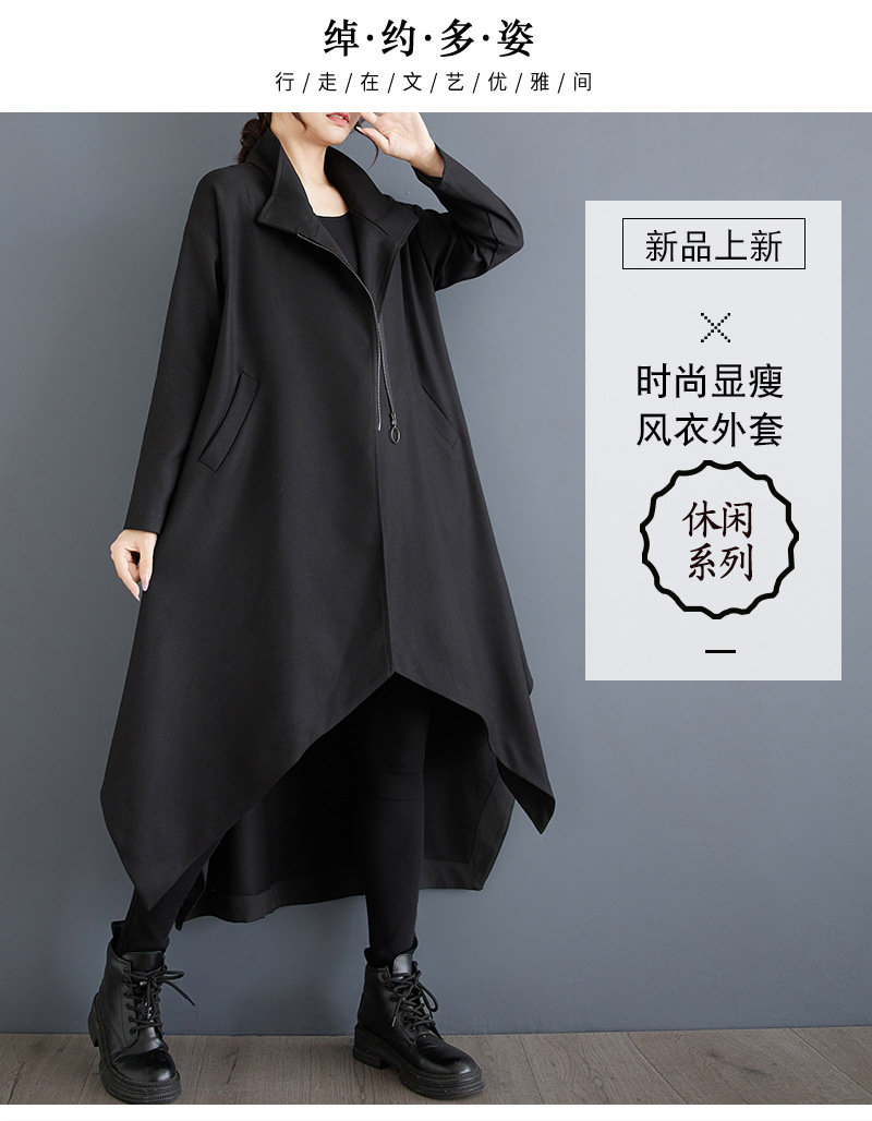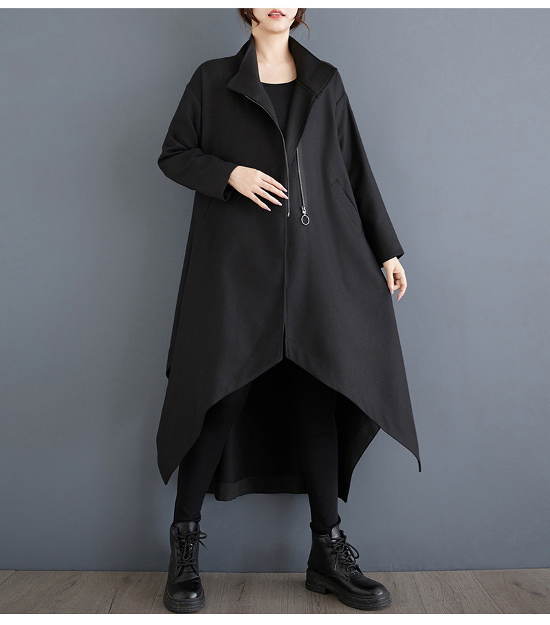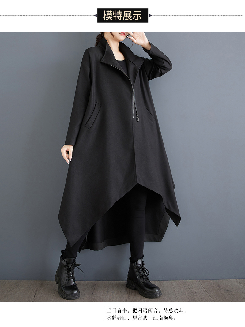 Реальный снимок осенние и зимние нишевые пальто в британском стиле темная ветровка моды дикая свободная тонкая средняя длинная нерегулярная куртка