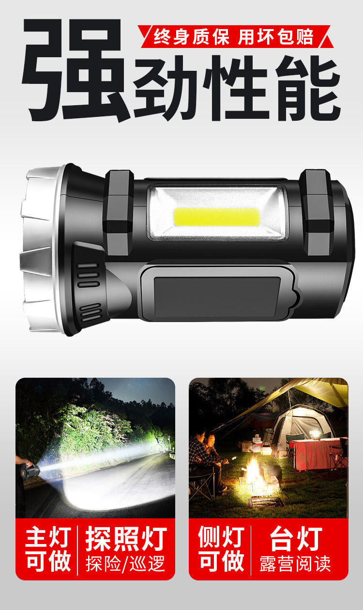 Перезаряжаемый уличный портативный фонарь-прожектор с длительным временем работы от аккумулятора, водонепроницаемый, с литиевой батареей, светодиодный, портативный, сверхъяркий.