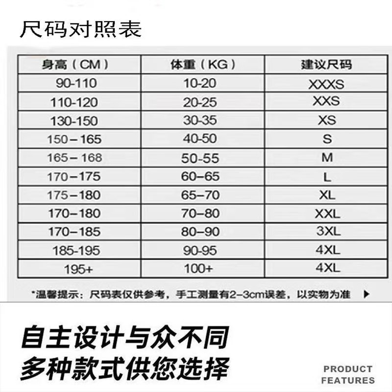 XS (рекомендуемый рост 145); S (рекомендуемый рост 150); М (рекомендуемый рост 160); L (рекомендуемый рост 165); XL (рекомендуемый рост 170); XXL (рекомендуемый рост 175); XXXL (рекомендуемый рост 180); XXXXL (рекомендуемый рост 185); Детский размер L (рекомендуемый рост 110).; Детский размер XL (рекомендуемый рост 120).; Детский размер 2XL (рекомендуемый рост 130).; Детский размер 3XL (рекомендуемый рост 140).