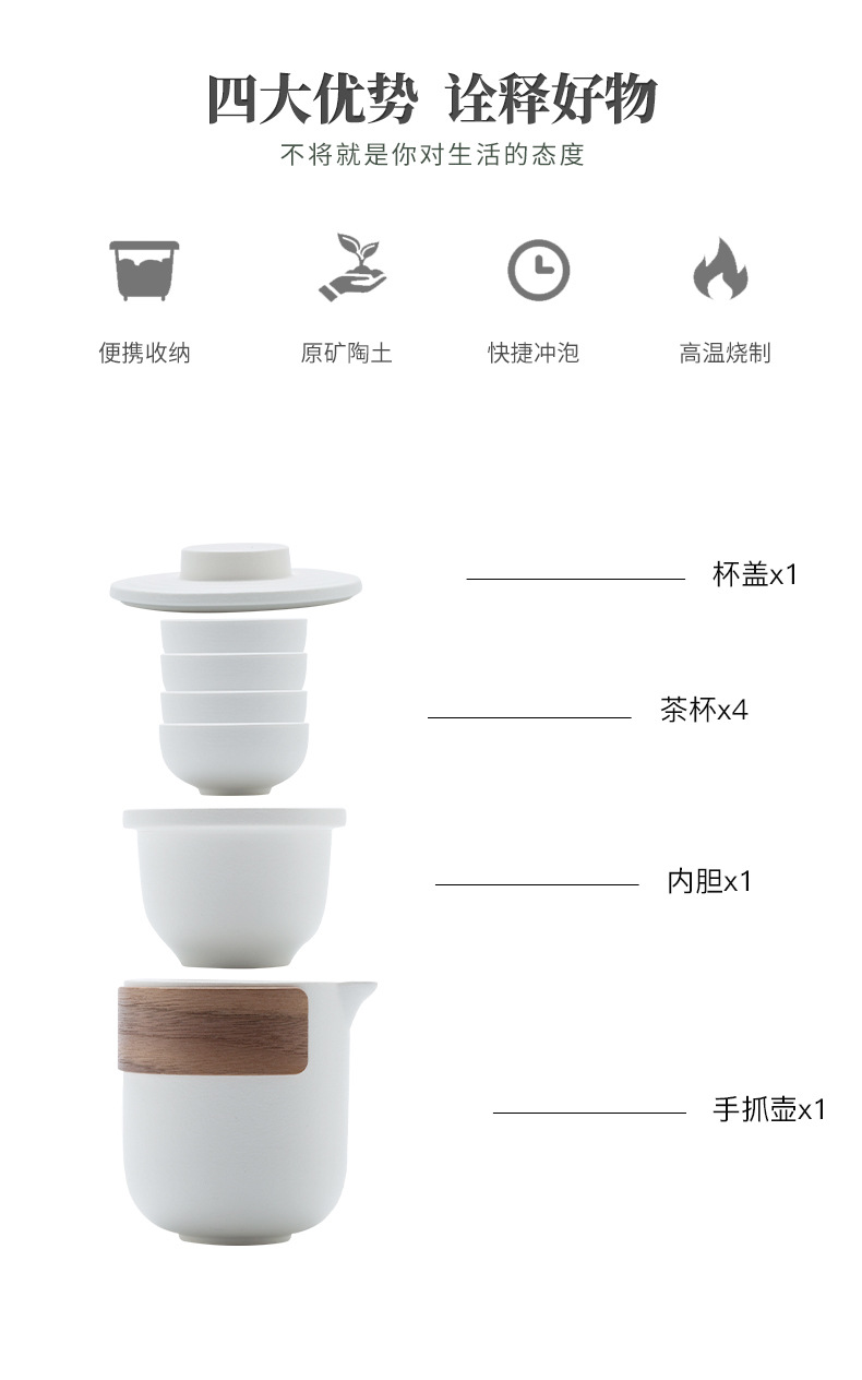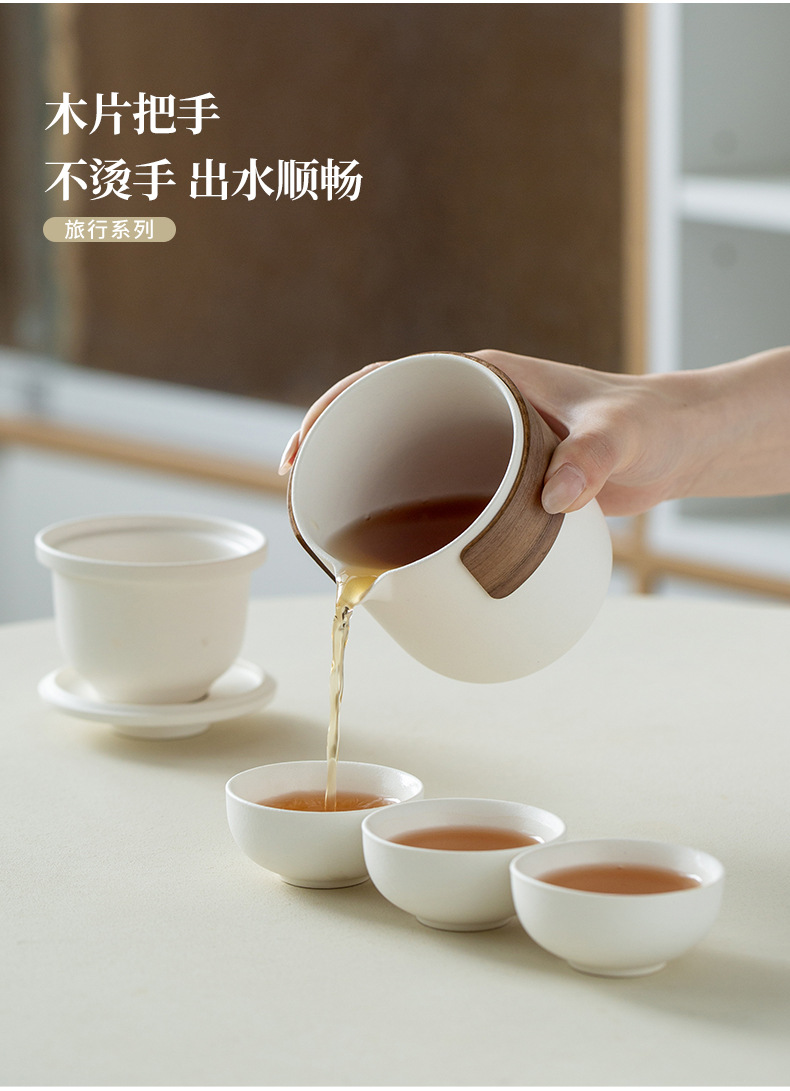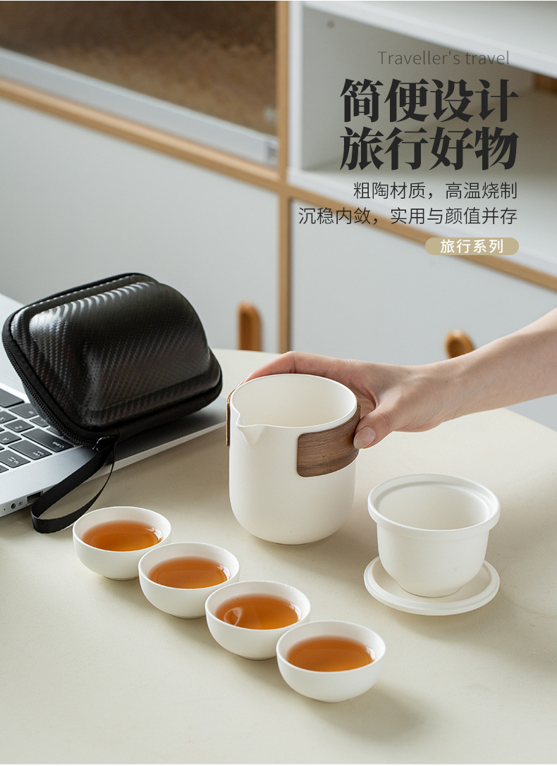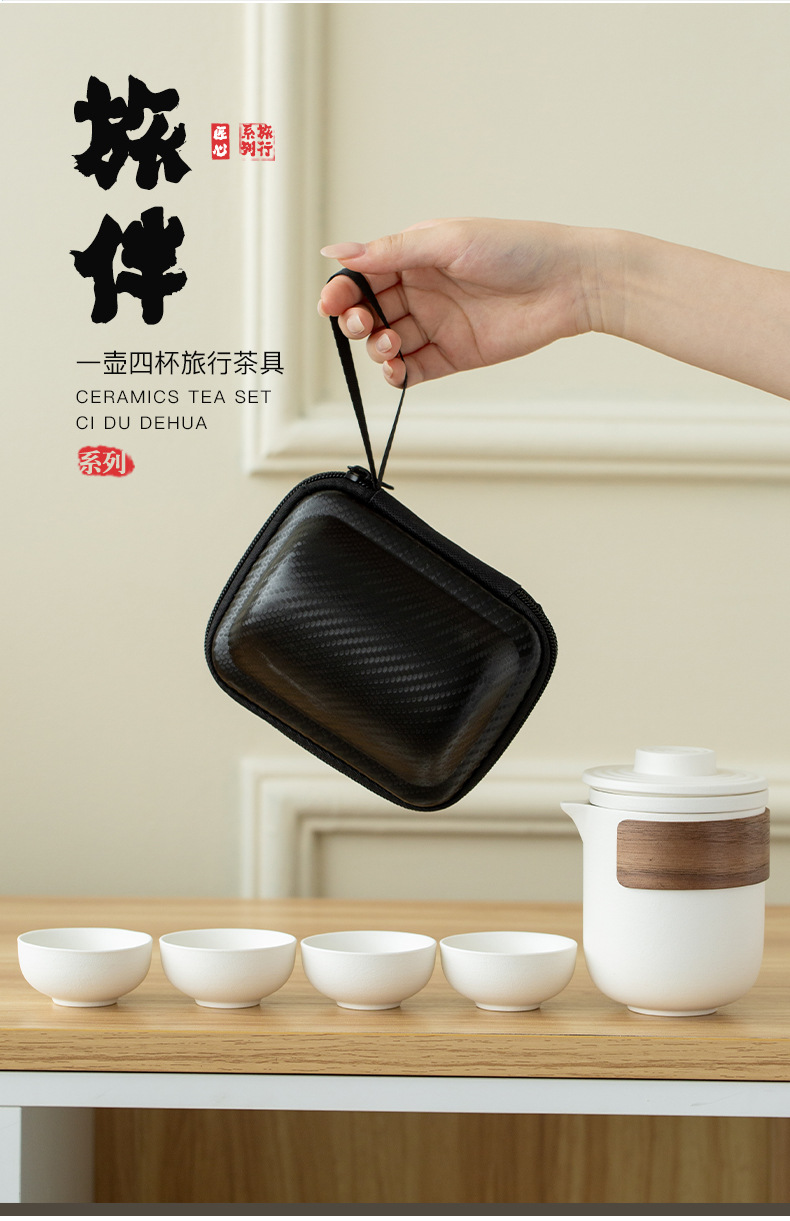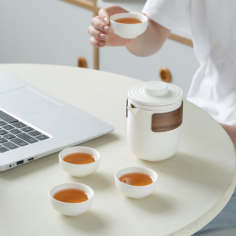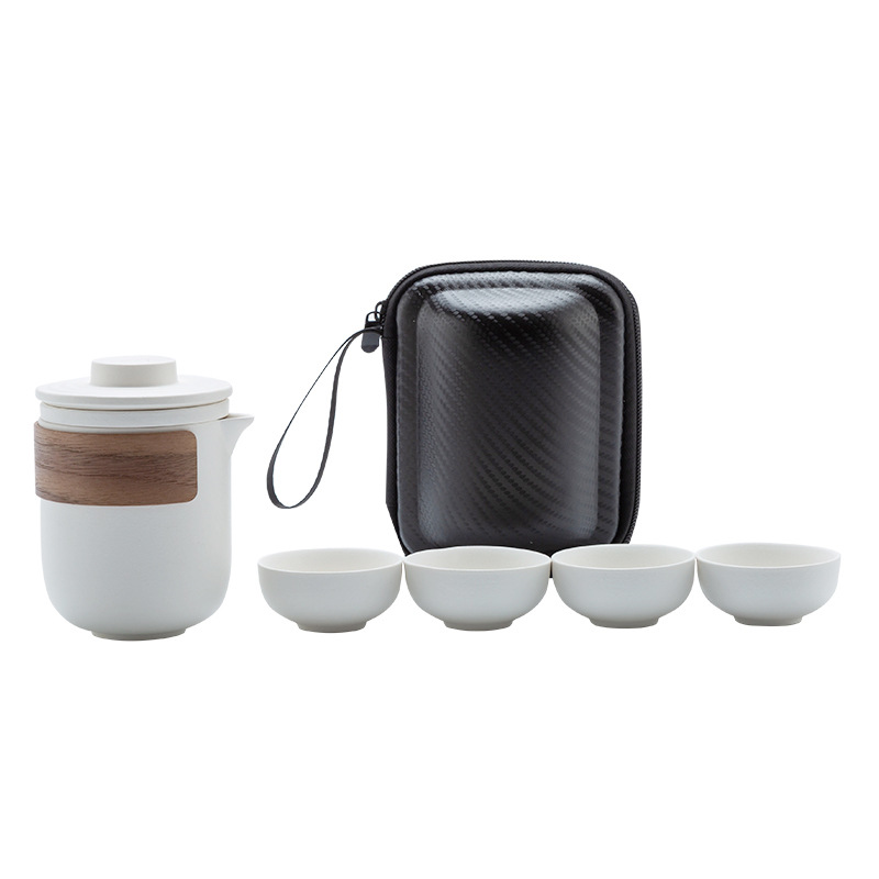 Портативный дорожный набор для чая кунг-фу, быстрый набор из одной кастрюли и четырех чашек, простая керамическая посуда для кемпинга, чайные чашки, подарок с возможностью персонализации