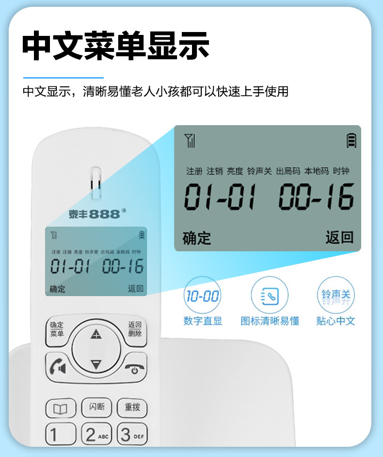 Taifeng 888 беспроводной телефон китайский меню