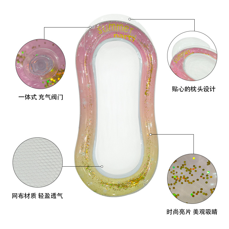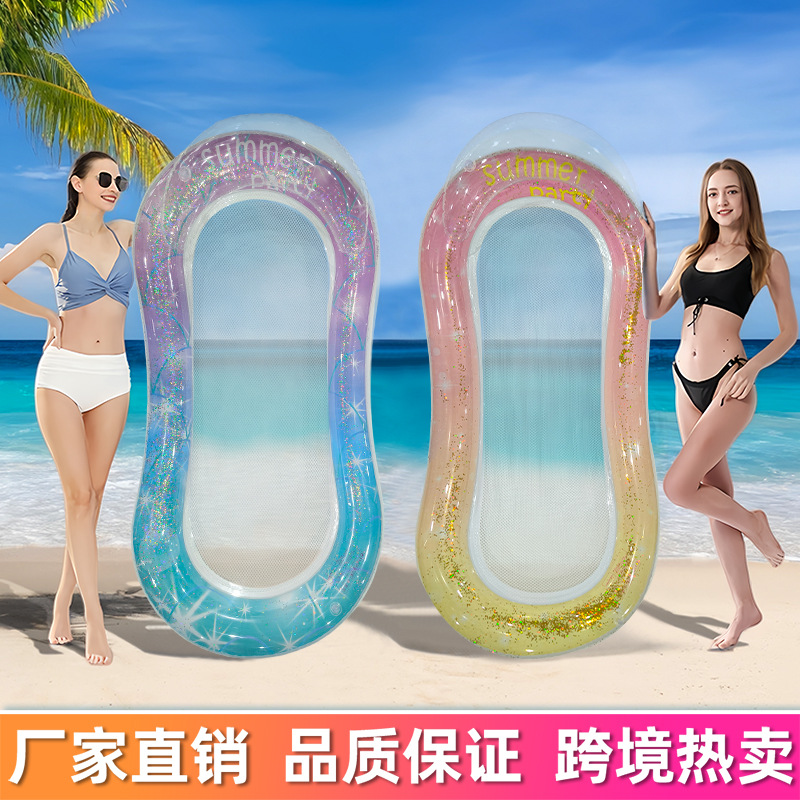 Трансграничная вода аттракцион складной сетка шезлонг плавающая кровать экологически чистые ПВХ блестки апельсиновый порошок градиент надувной поплавок