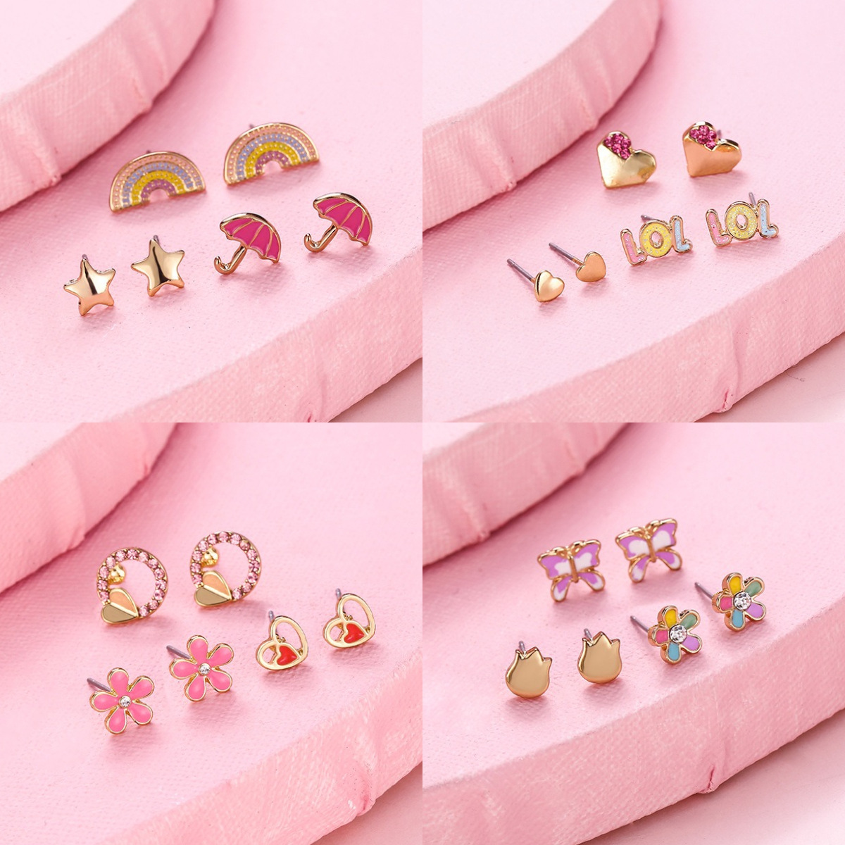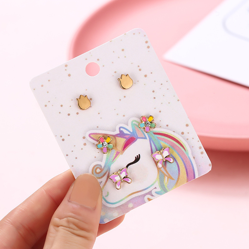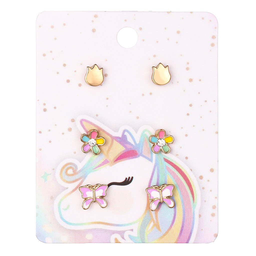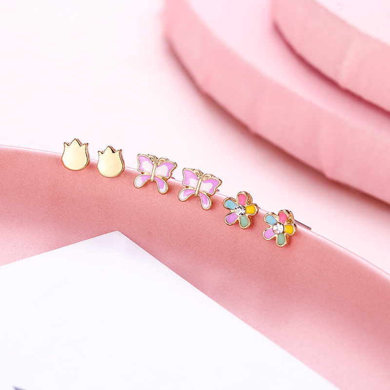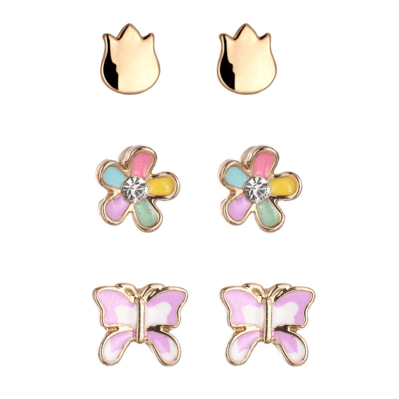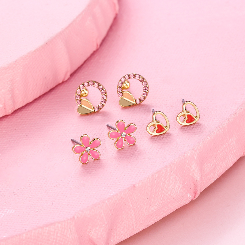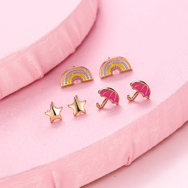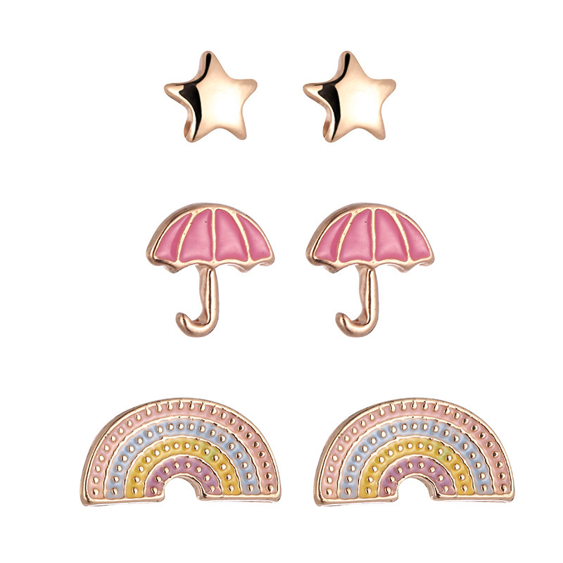 Корейская версия сладкого поп мультфильма детские серьги-гвоздики мода любящая радуга цветок набор из трех частей масляного сплава