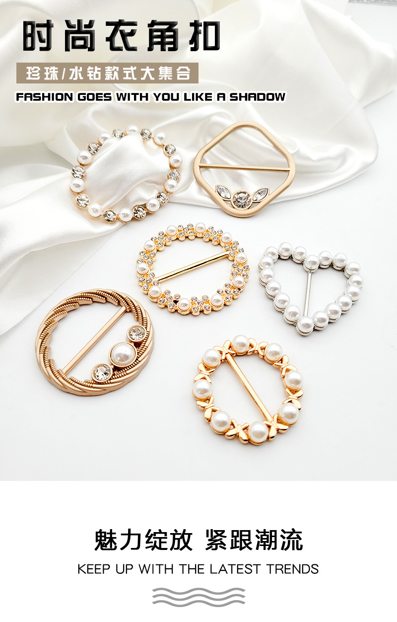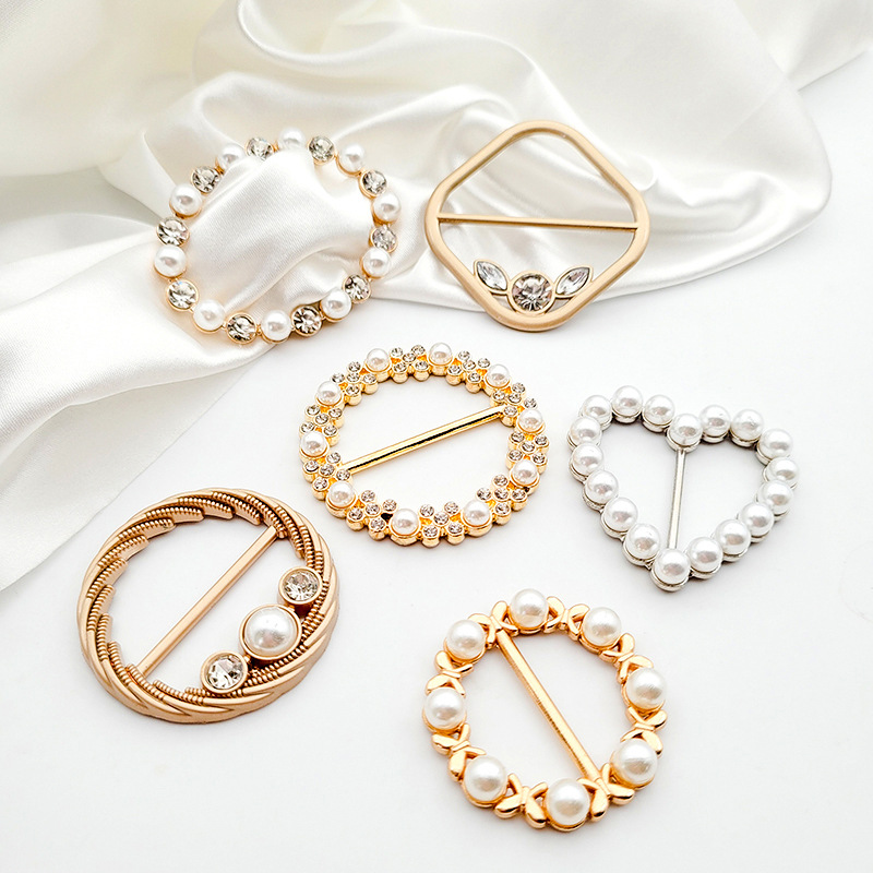Угловая пряжка с узлом из металлической одежды Угловая пряжка из жемчуга с бриллиантами
