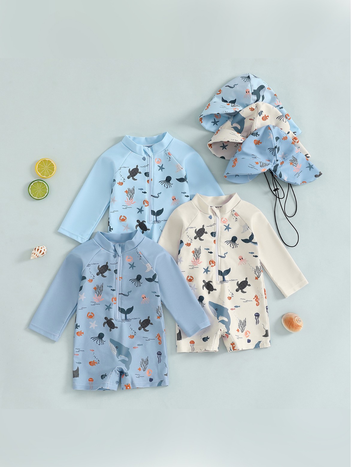 70-80-90-100-110-120 Шляпа цельный детский купальник с длинным рукавом