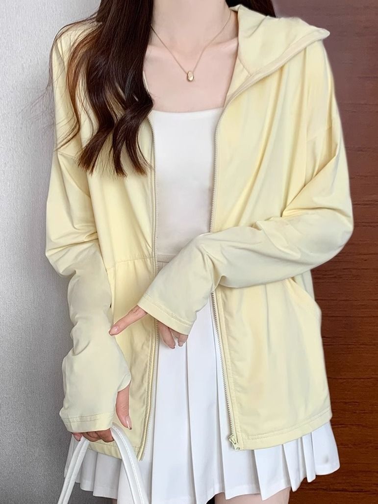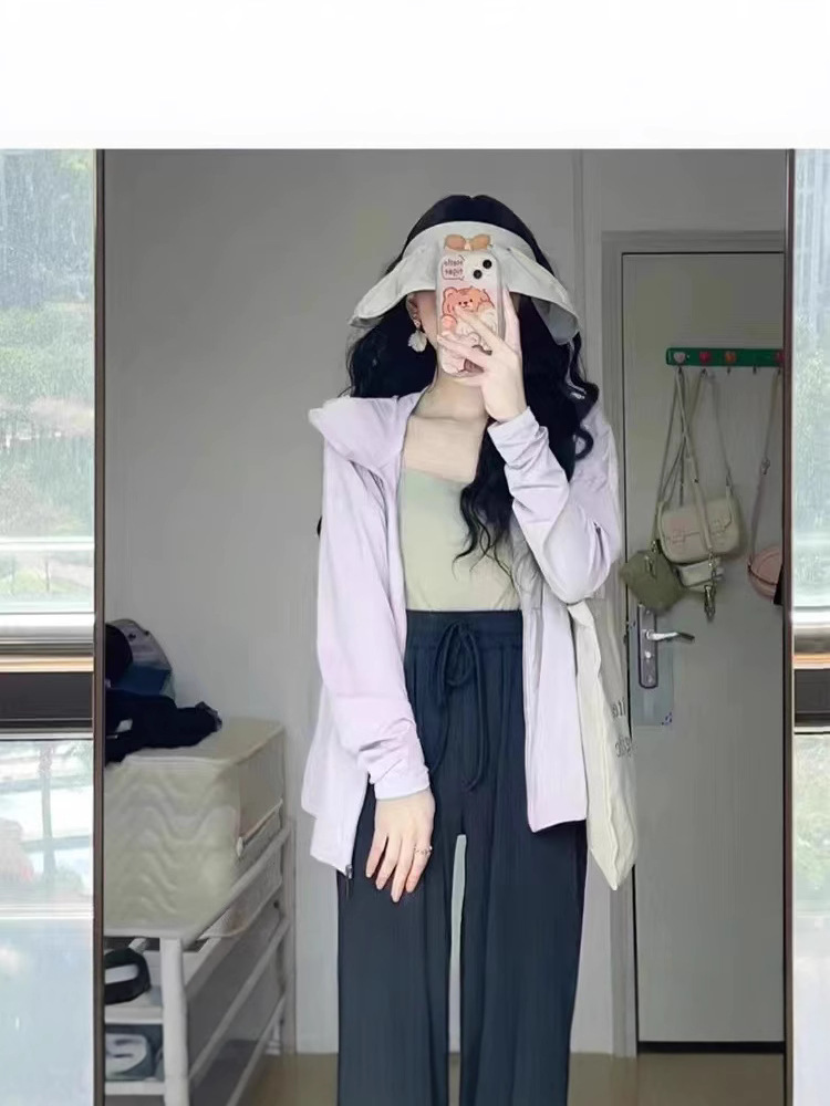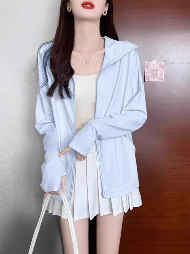 2024 Летняя ледяная шелковая солнцезащитная одежда для женщин на улице Летняя сплошная воздухопроницаемая тонкая свободная куртка для женщин