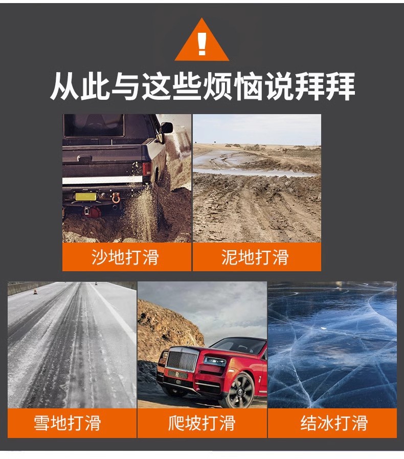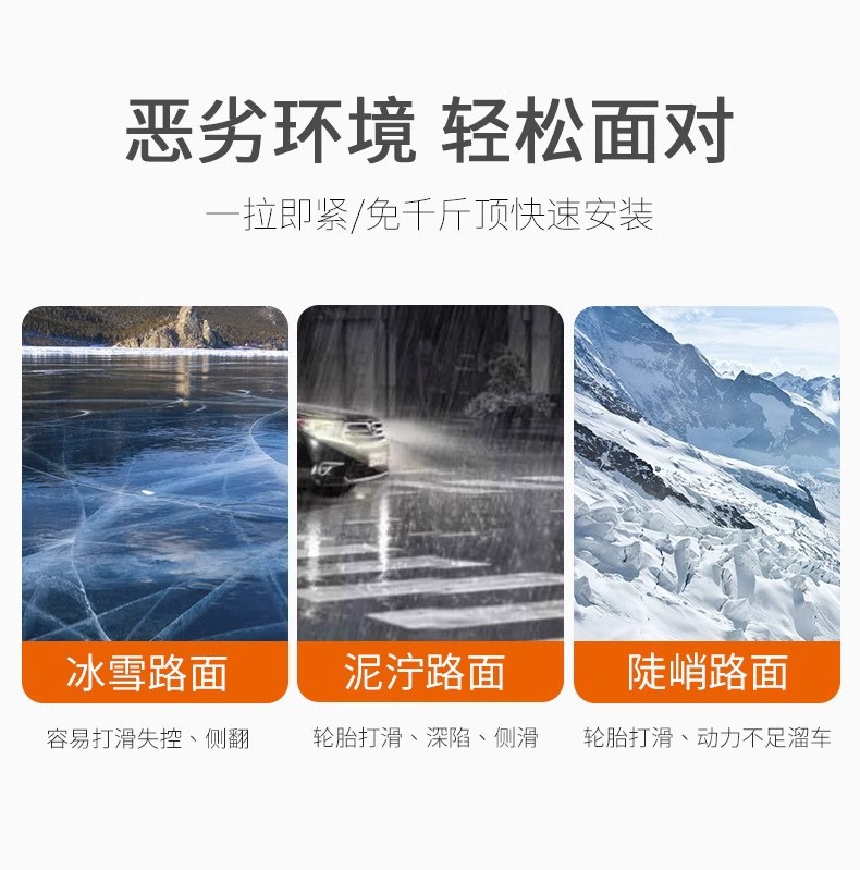 1 противоскользящая цепочка с завязками [новый материал класса А]; 1 противоскользящая цепочка с завязками [класс B]; Гусеничная противоскользящая цепь черного цвета 1 шт.; Гусеничная противоскользящая цепь желтого цвета 1 шт.