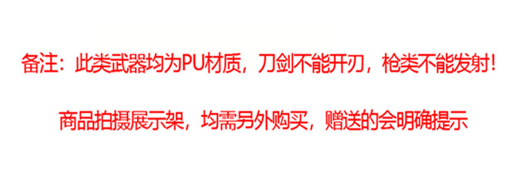 Мачете; нунчаки; Лопаточный пистолет Модель А; Лопаточный пистолет Модель B; Большой револьвер; Пистолет Devil May Cry Серебристый; рог с шипами меч; маленький летающий меч; Маленький выигрышный меч; Пистолет Devil May Cry Черный; каVALЕРСКИЙ МЕЧ; Священный меч Насира; Сломанный меч 100см.; Меч Юэ Ван 80; Двойной меч дракона; меч белого волка; Незваный меч зверя; Меч ледникового поля; меч в камне; Зачерненный священный меч; Меч короля эльфов; Славный королевский меч; жалкий меч; Ледяной меч; Зорро меч; Клятва Победы Меч; Алиса Свад; Конанский меч; Серебряная модель меча безумного демона; Большой меч викингов; Малый меч викингов 46см; Длинный коготь меч; Королевский меч 81 см; 082 меч; Разбивающий мастерский меч; 1171 меч; меч женщины-воина; Сири Золотой Меч; Меч Папы; Меч Зуба Дракона; Тиранский печаль 76см; Хитрый нож кролика синий; Мака нож; Нож для укуса зверя; Золотая модель кинжала; Модель серебряного кинжала; Маленький нож Дэдпул 63 см; пиратский нож; зубчатый нож; Маленький самурайский меч моей жены.; катанка; Молот Тора; 2М Мифическая Золотая Палка; Большой щит Зельды; Маленький щит Зельды; Летающий дракон, щит синий; Кинжал с кошачьим когтем; пожарный топор; Тор's Axe 55CM; Интегрированный стальной коготь в сборе; Маска Дьявола Тип А; Маска Дьявола Тип Б; Лопата; Тянь Ни Меч Светла 2; Скипетр Водяного Дракона; защитная трость; 80 см семье убийств меча; Молоток разрушения; Пятое поколение темнее; алмазный меч