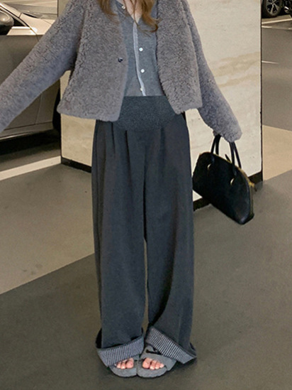 Темно-серые шерстяные брюки (поддержка живота); Темно-серая шерсть плюс бархат (поддержка живота)