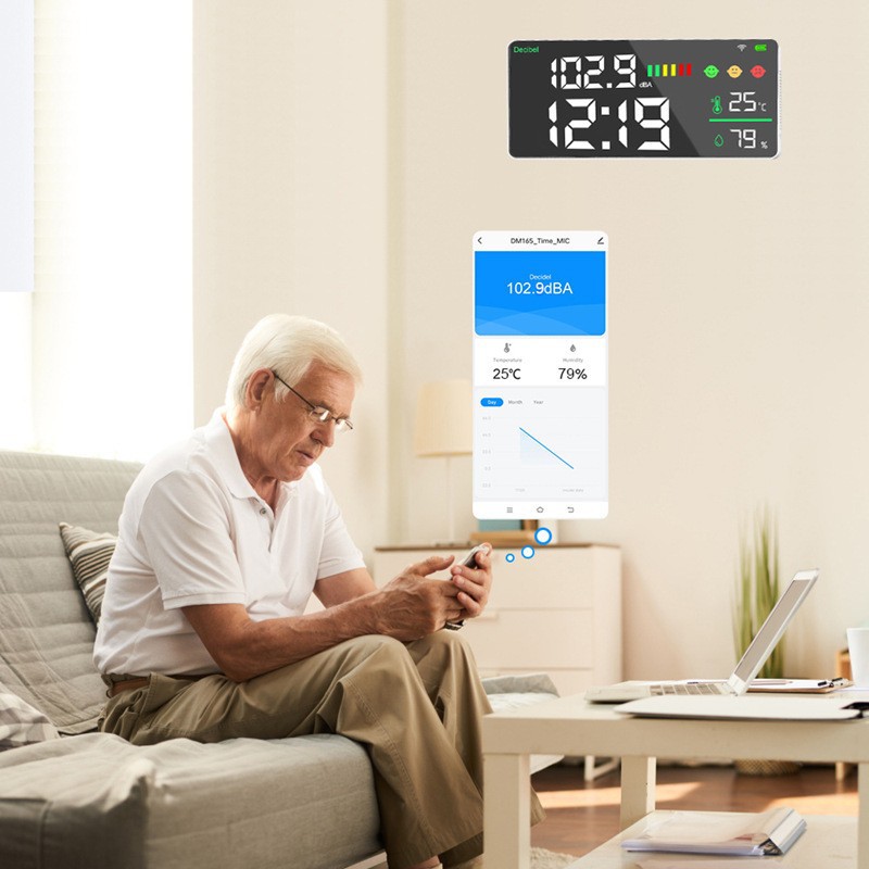 Детектор шума Tuya WiFi с большим экраном, настенный измеритель уровня звука в децибелах