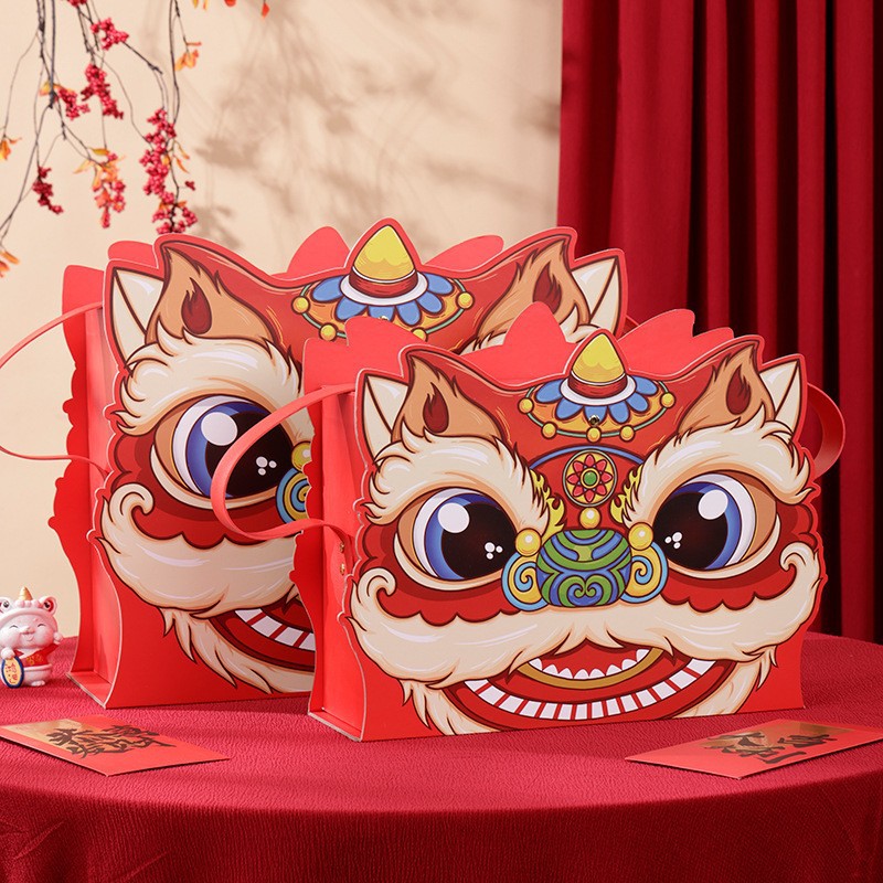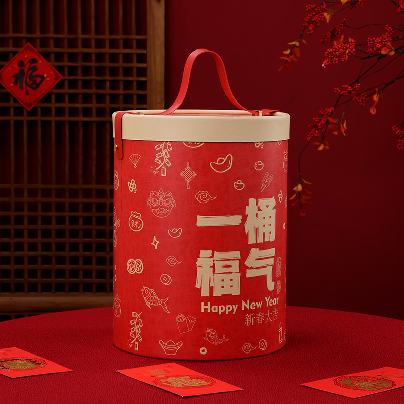 Большая красная сумка-ведро 2026 года для подарков, закусок, конфет, упаковочная коробка для подарков и сувениров к Весеннему фестивалю