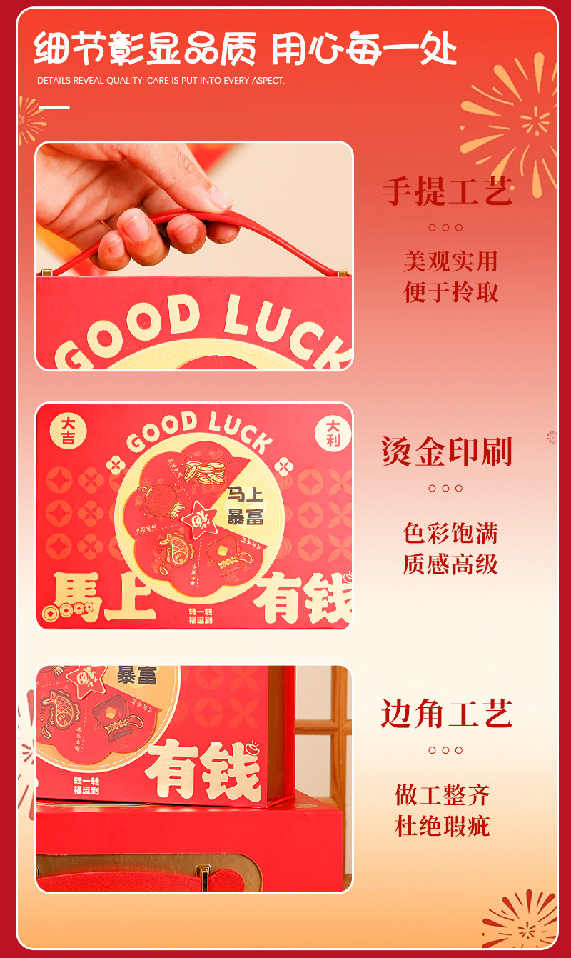 проснувшийся лев; Получите деньги немедленно; Ведро благословений; Фуляй (пустая коробка); Мгновенно обогатитесь и откройте оконную коробку; Предназначенная для удачи трехмерная коробка; Ежедневные деньги (пустое поле)
