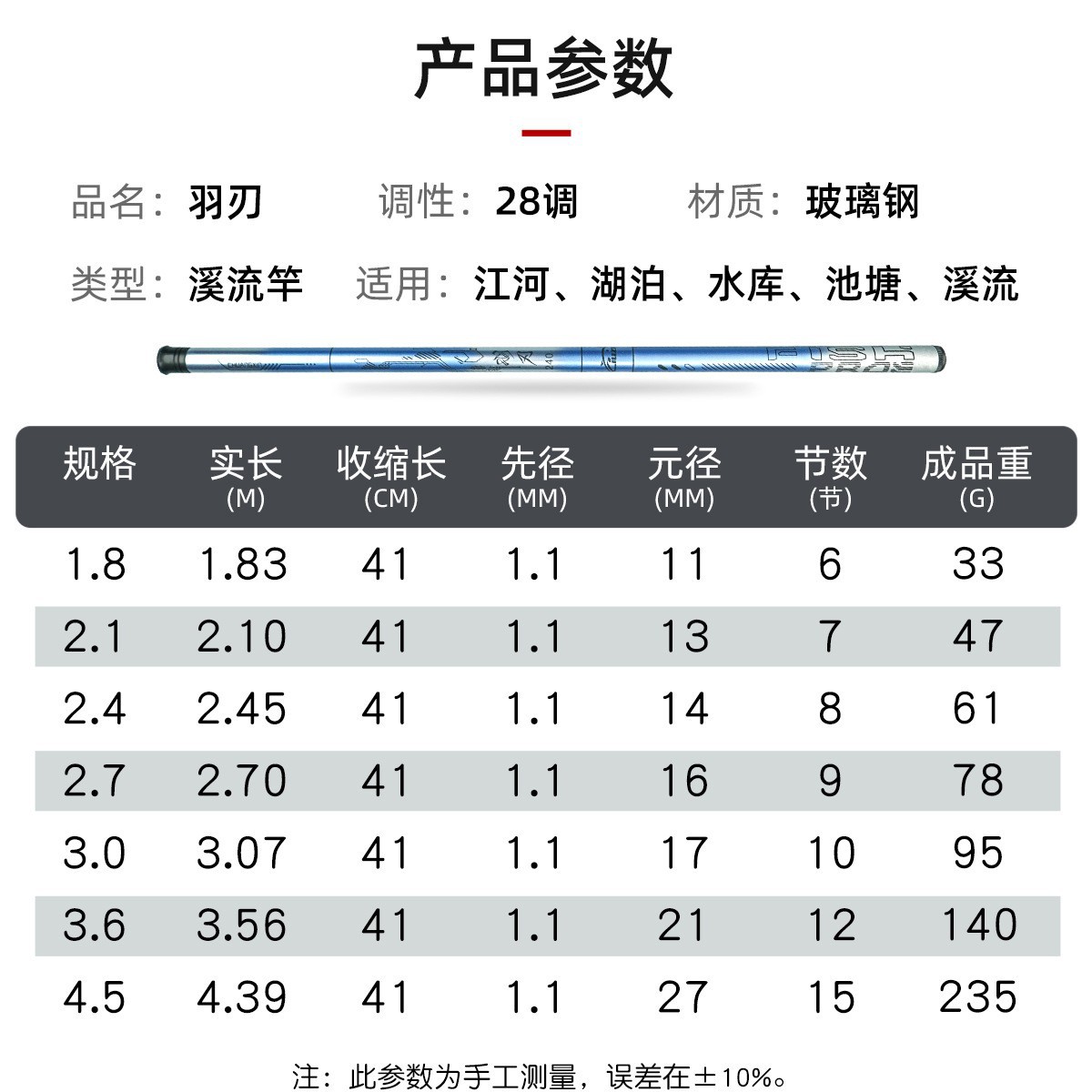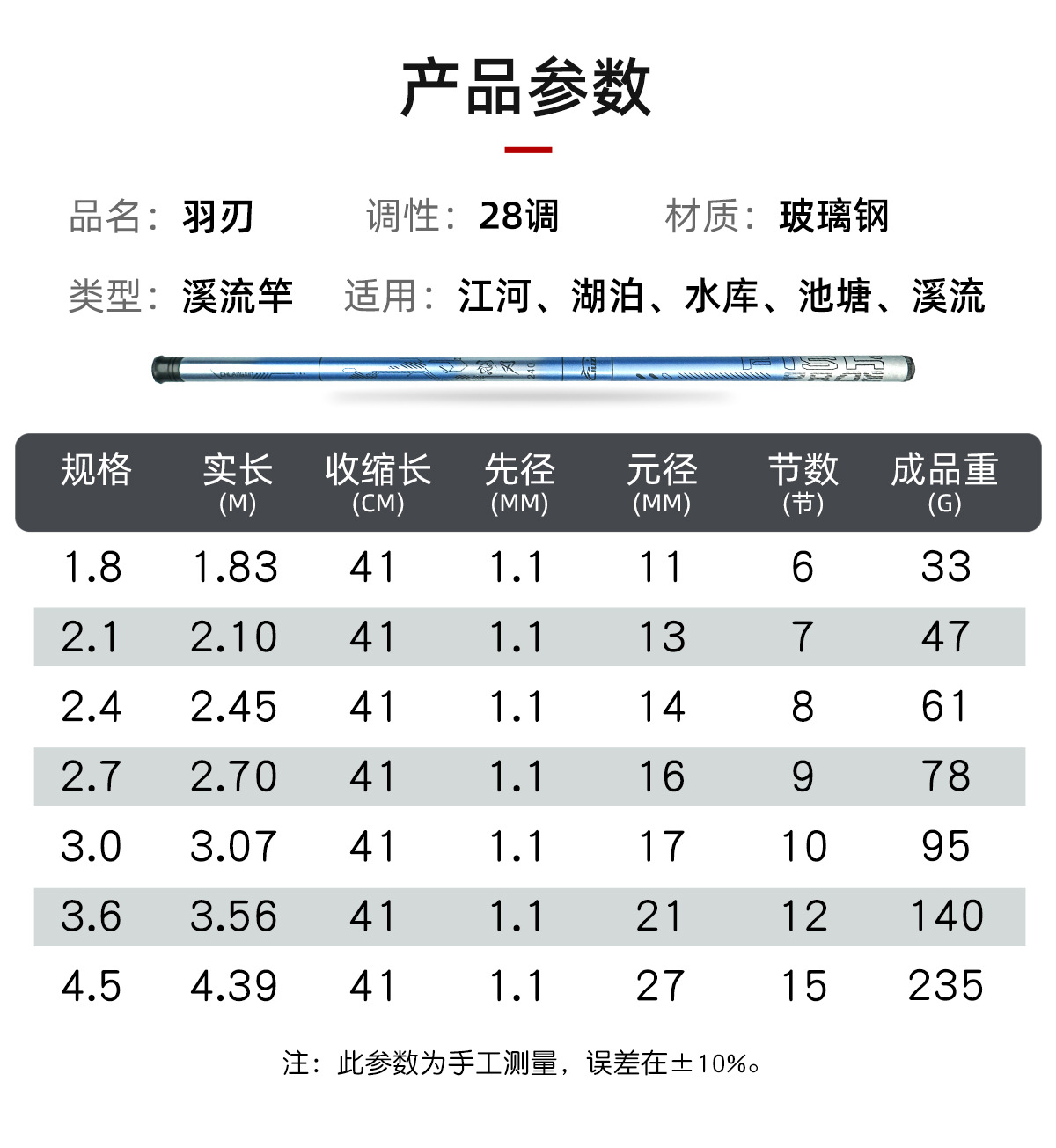 Ультракороткая ручная палка (37 мелодий); Ультракороткий ручной стержень с перьевым лезвием (37 мелодий); Охотник на тысячу рек (28 мелодий); Небесный меч (28 мелодий); Птица-охотница за водой (28 мелодий); Гарбуз Маленький Кинг-Конг, смешанный цвет (37 тонов); Маленький волнистый кончик (28 мелодий); Синий фантом (19 оттенков); Blue Phantom II (19 тонов)