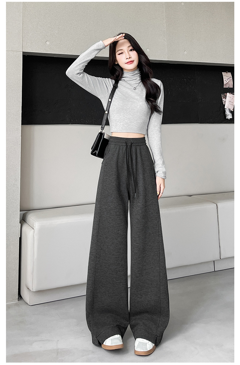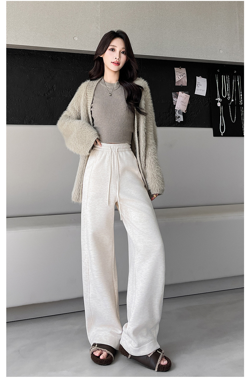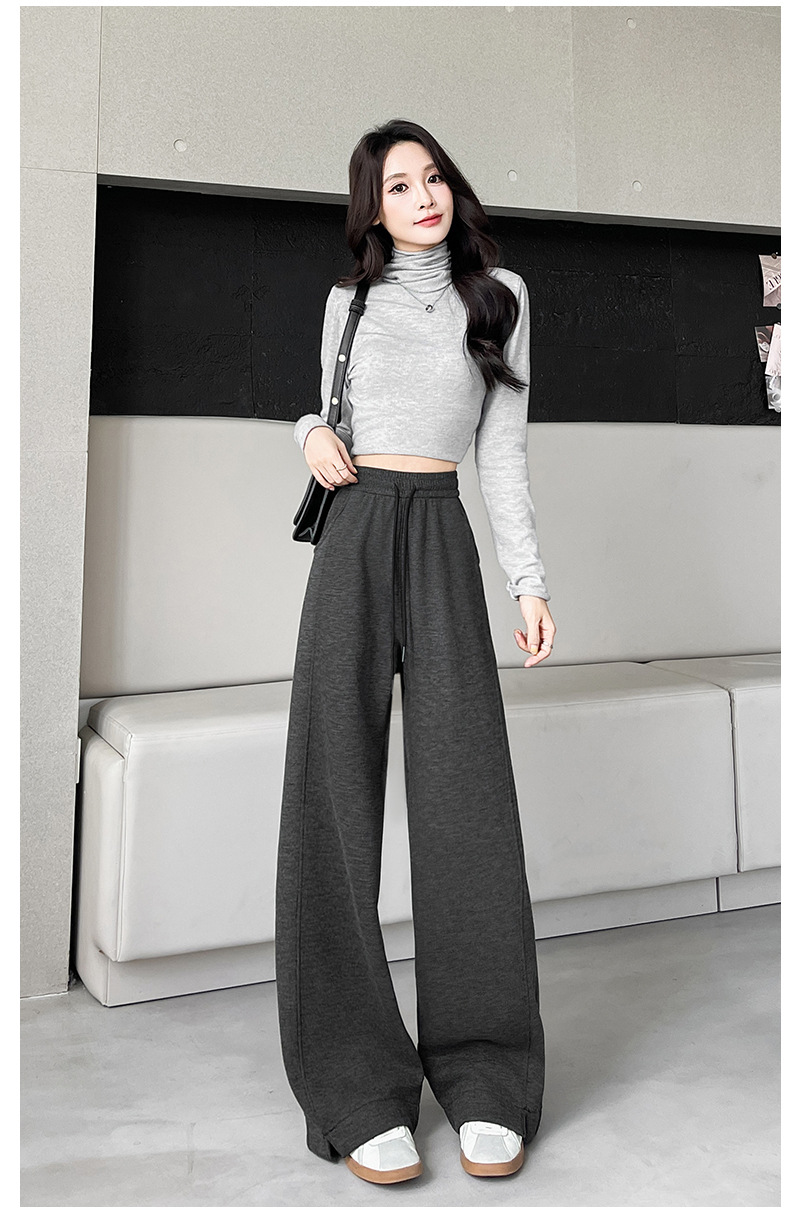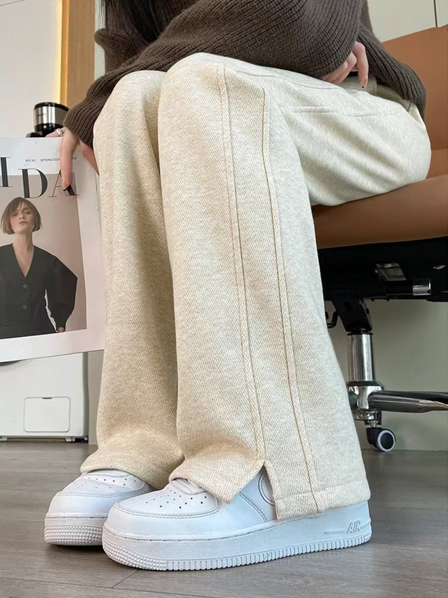 Широкие брюки из кашемира для женщин, новая модель осень-зима 2025, свободные прямые, драпирующиеся, на флисовой подкладке, утолщенные, повседневные брюки.