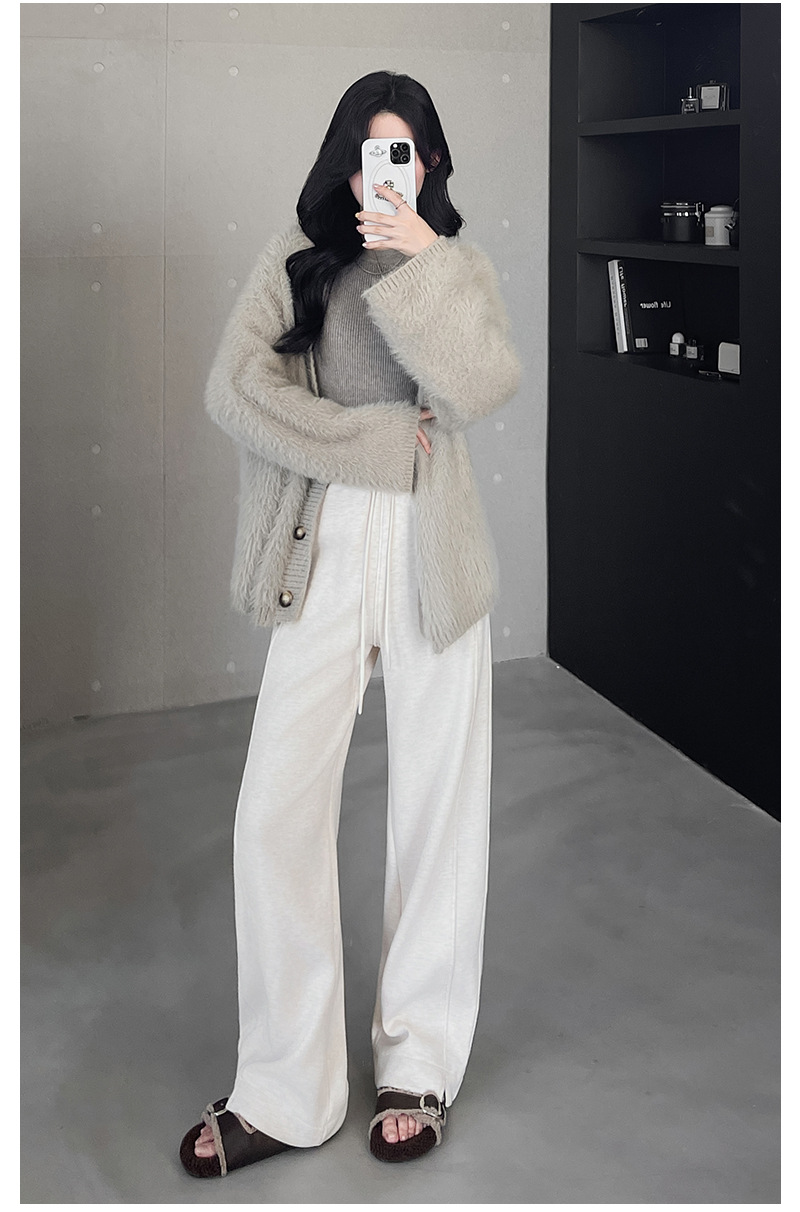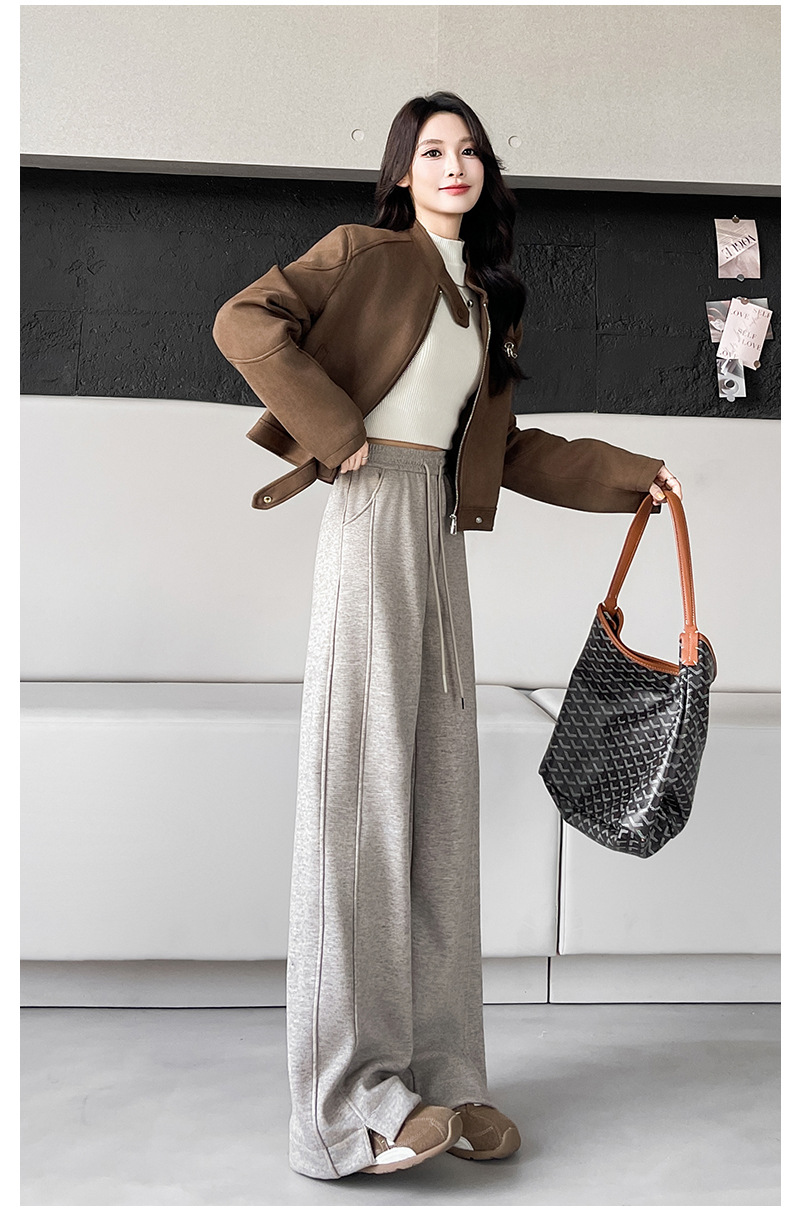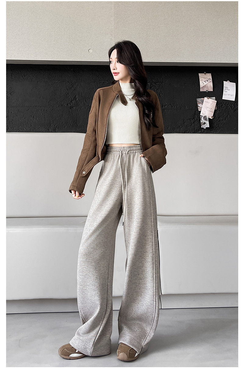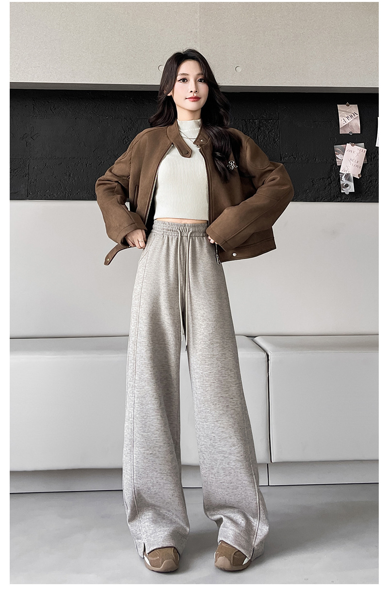 Широкие брюки из кашемира для женщин, новая модель осень-зима 2025, свободные прямые, драпирующиеся, на флисовой подкладке, утолщенные, повседневные брюки.