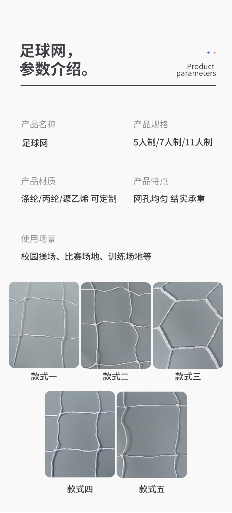 Стандартная модель для 3 человек, 2,0 мм; Обычная модель для 5 человек, 2,0 мм.; Обычная модель для 7 человек, 2,0 мм.; Обычная модель для 11 человек, 2,0 мм; 2,5 мм, система на 5 человек; 2,5 мм, 7-человеческая система; 2,5 мм, система на 11 человек; Взвешенная версия для 5 человек, 3 мм.; 3 мм, 7-человеческая утяжеленная версия; 3 мм, утяжеленная версия на 11 человек; Шестигранник без узлов для соревнований, 5 в сторону; Шестигранник без узлов для соревнований, 7 игроков в сторону; Шестигранник без узлов соревновательного класса, 11 игроков в сторону; Прочная плетеная веревка из полиэстера длиной 5,0 м для 5 человек (смелая и тяжелая); Прочная плетеная веревка из полиэстера диаметром 5,0 мм для 7 человек (смелая и тяжелая); Прочная плетеная веревка из полиэстера диаметром 5,0 мм для 11 человек (смелая и тяжелая); Модель для международных соревнований из полиэстера толщиной 5 мм, 5 в сторону; Модель для международных соревнований из полиэстера толщиной 5 мм, 7 игроков в сторону; Модель для международных соревнований из полиэстера толщиной 5 мм, 11 игроков на стороне