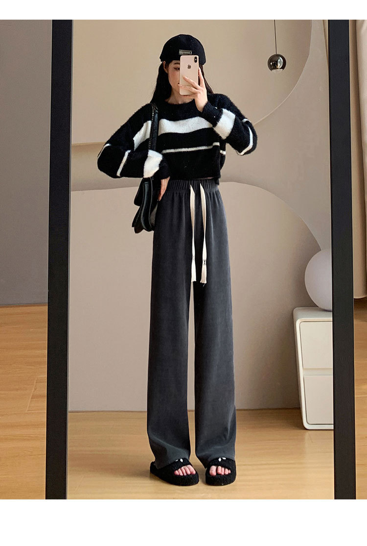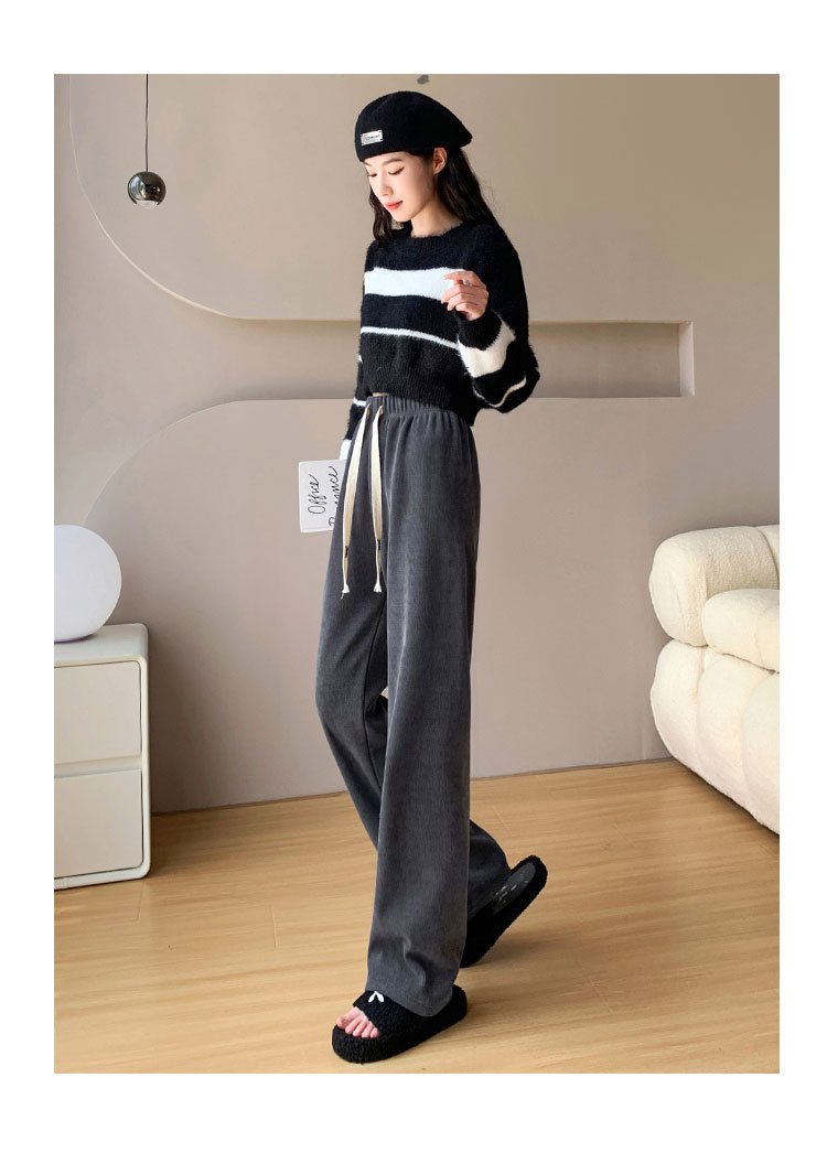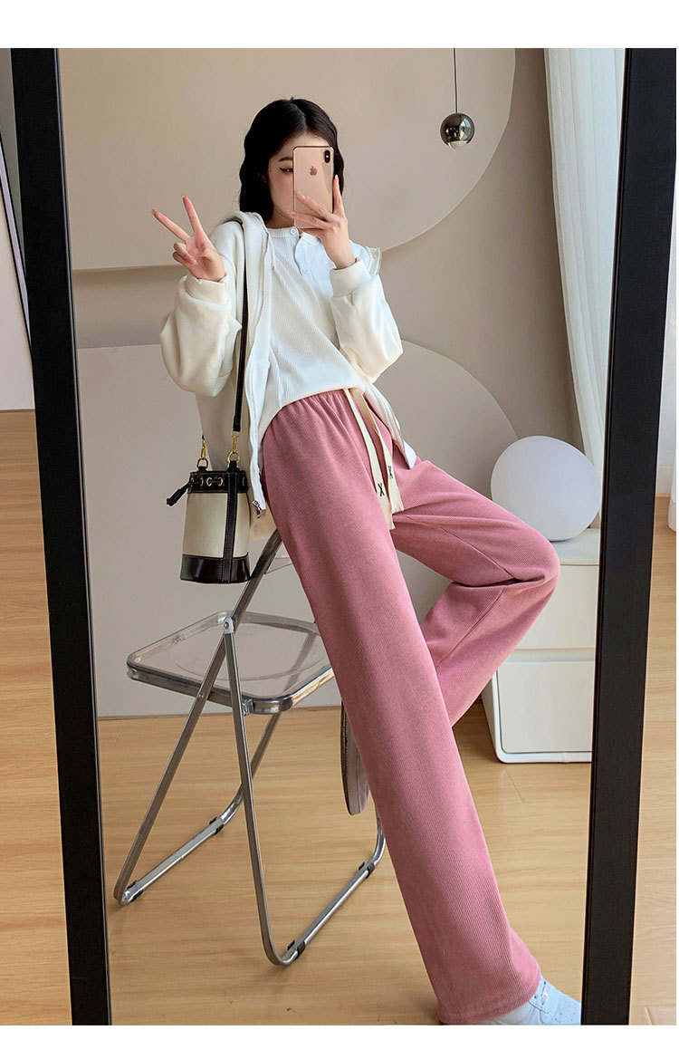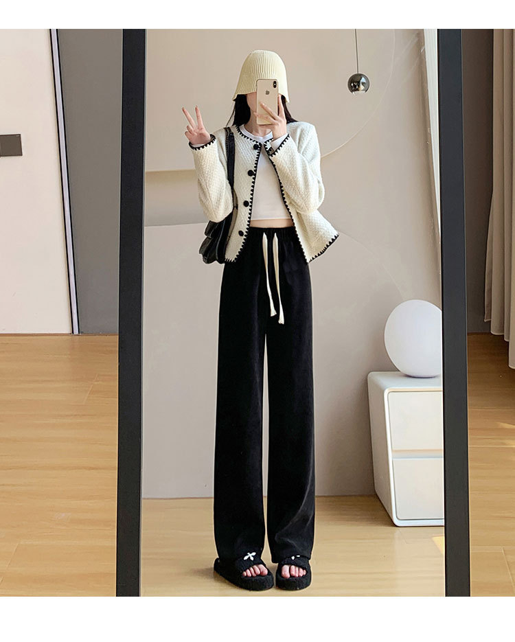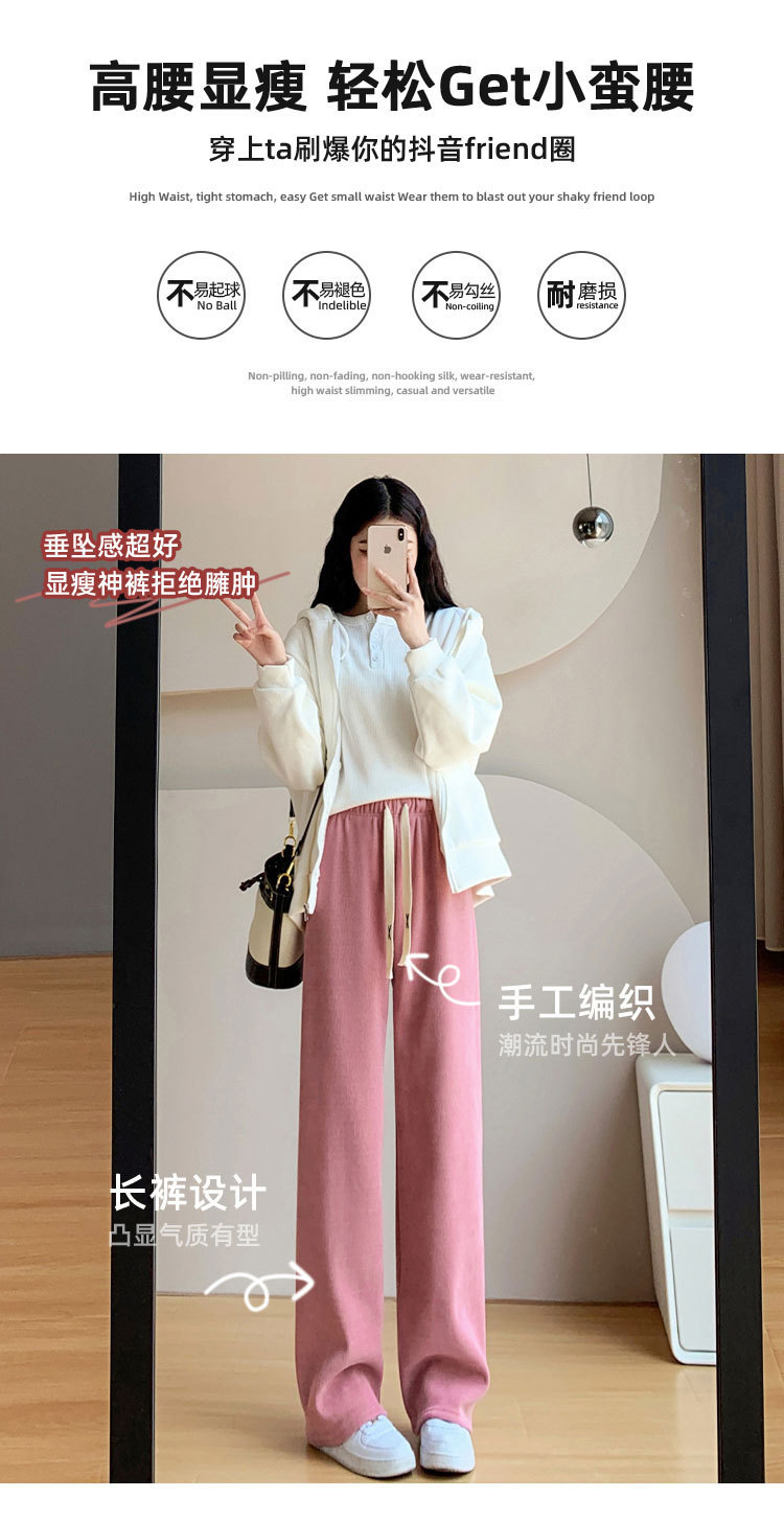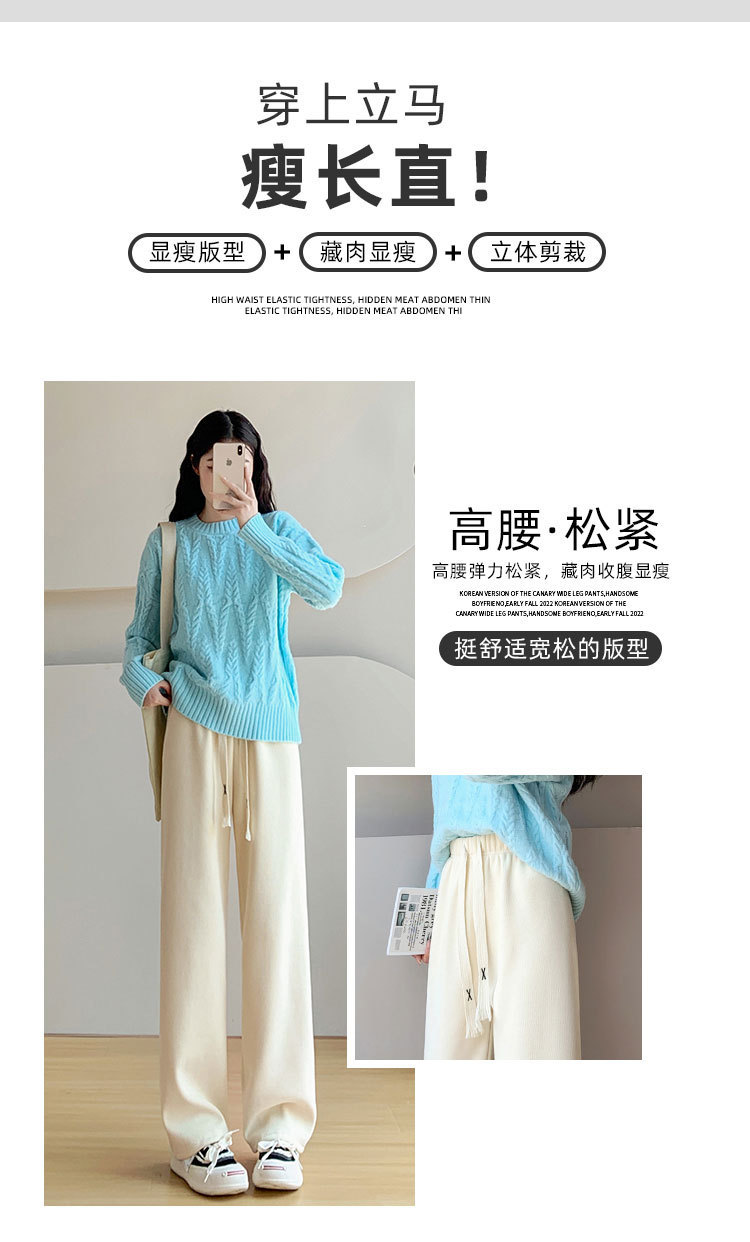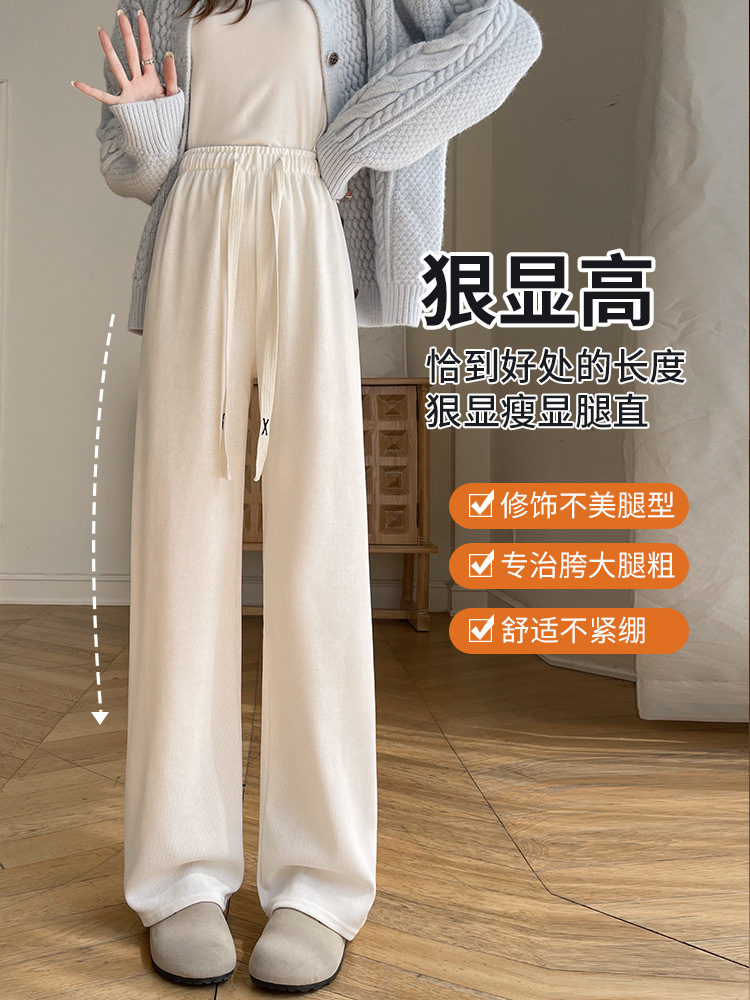 Белые узкие брюки с широкими ногами женские осенние и зимние модели с высокой талией