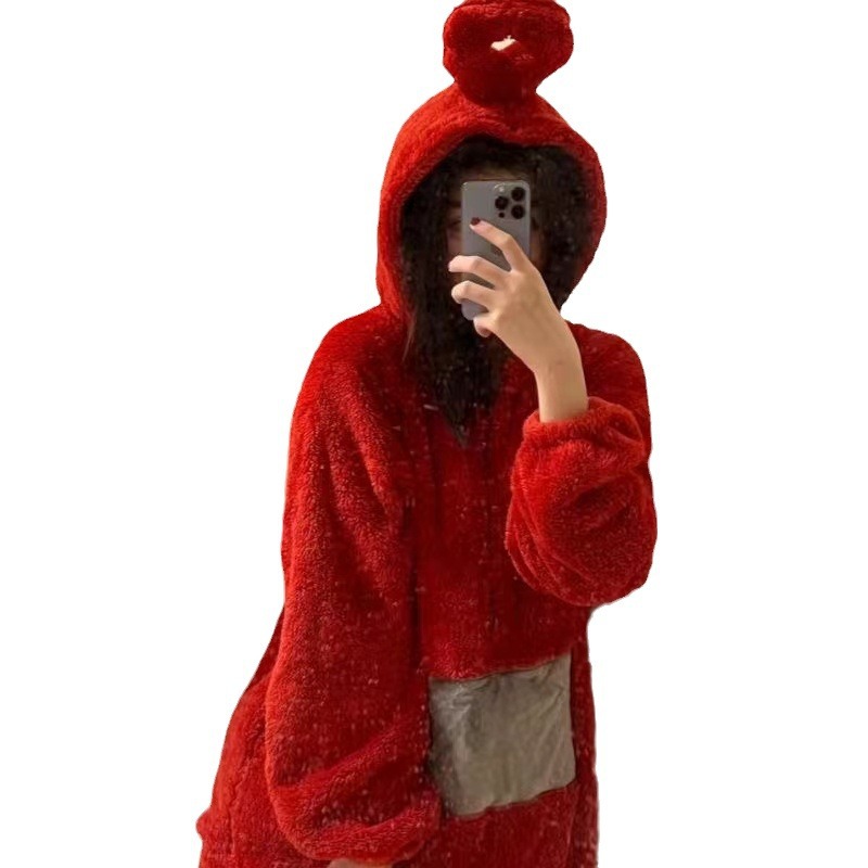 Цельная пижама из кораллового флиса Antenna Baby с мультяшным принтом для пар, осенне-зимняя домашняя одежда для лучших друзей и подружек невесты, утолщенная и теплая.