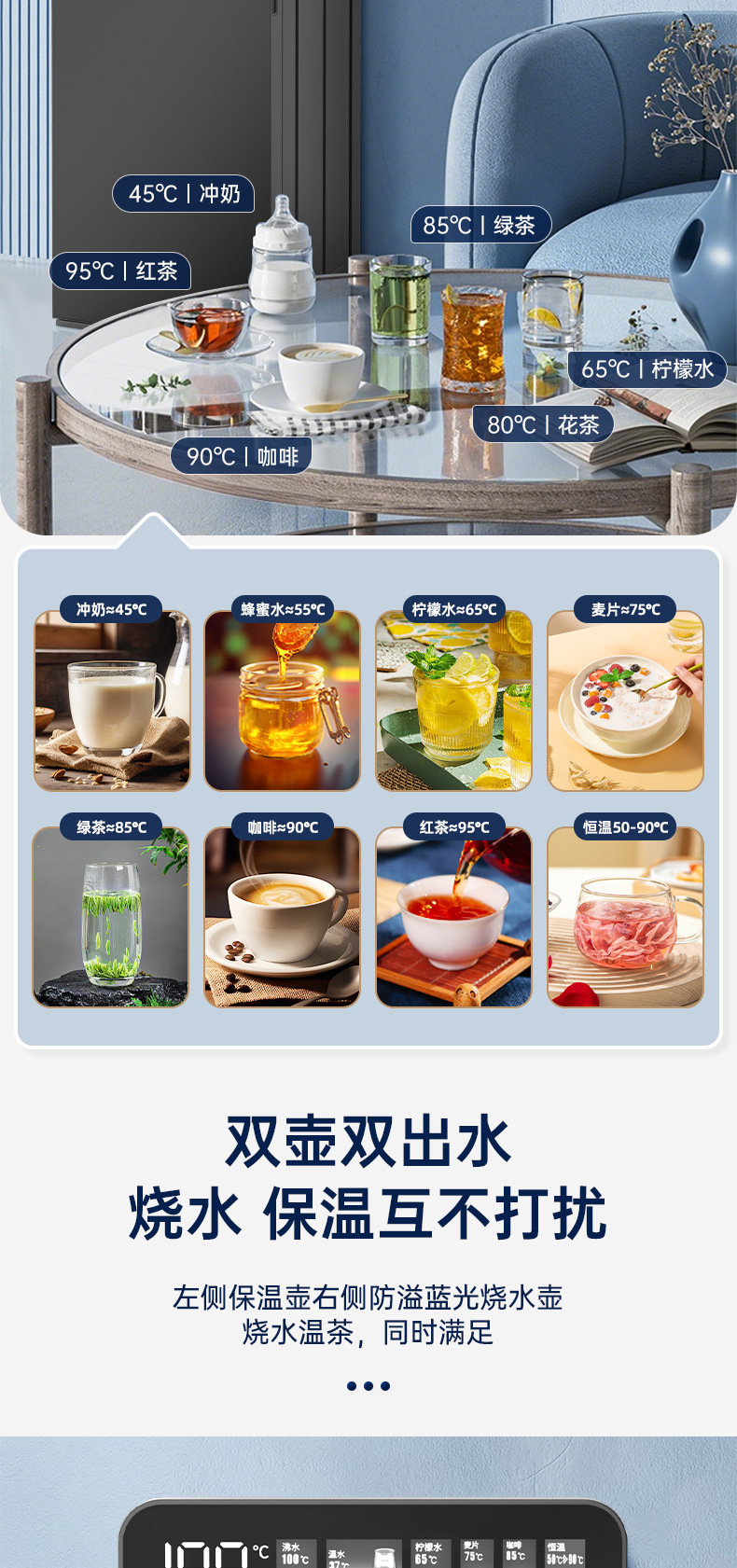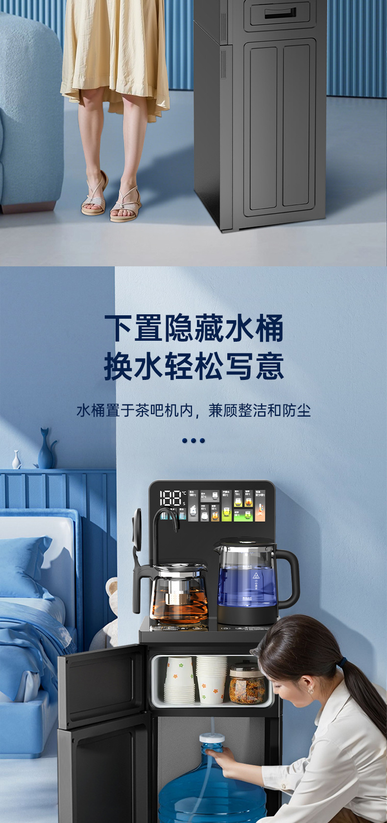 [Цифровой дисплей с интеллектуальным экраном] Белый, многоступенчатая регулировка температуры, два выхода для воды; [Красочный двойной дисплей большой емкости с синим светом] Белый + пульт дистанционного управления + двойные выходы для воды; [Красочный двойной дисплей большой емкости с синим светом] Черный + пульт дистанционного управления + двойные выходы для воды; [Цветной экран с двойным сенсорным дисплеем + чайник с синим светом] белый + многоступенчатая регулировка температуры; [Голосовое управление AI + цветной двойной сенсорный экран] черный + синий светильник; [Голосовое управление AI + цветной двойной сенсорный экран] белый + синий светильник; [Улучшенная защита от переполнения + цветной экран с голосовым управлением AI, двойной сенсорный дисплей] черный + двухслойная защита от ожогов; ------Сверху — вода, поступающая сверху, снизу — вода, поступающая снизу.------; Черный [Эксклюзивная нижняя вода + голос AI + голографический сенсорный цветной экран + защита от перелива]; Белый [Эксклюзивная подача воды снизу + голос AI + голографический сенсорный цветной экран + защита от перелива]