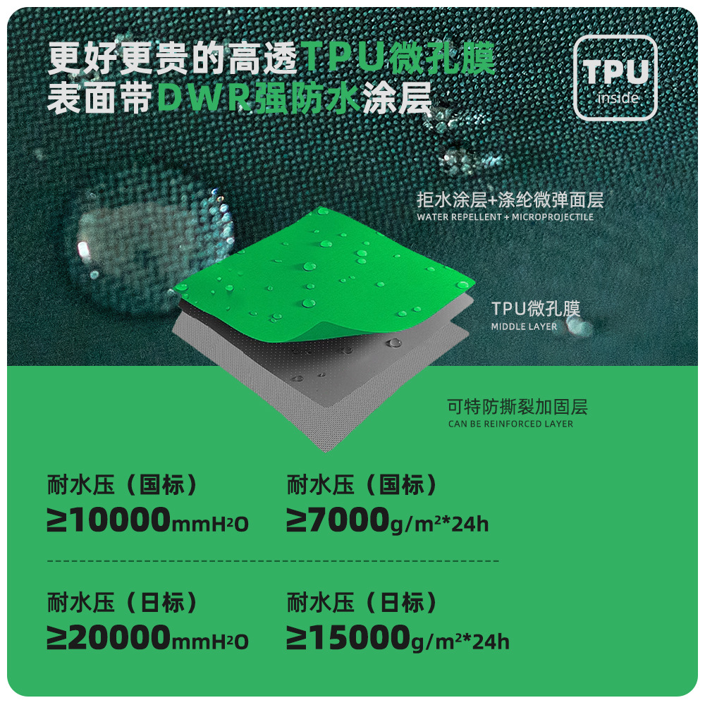 водонепроницаемый; Теплый; износостойкий; Ветрозащитный; Впитывание влаги; Антиобрастающий и водонепроницаемый