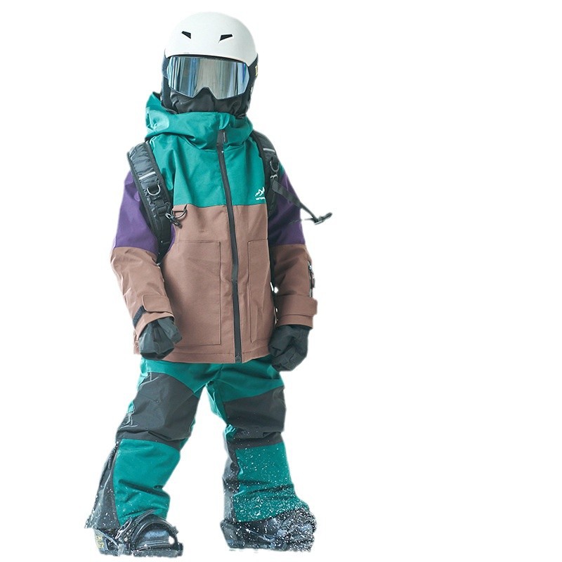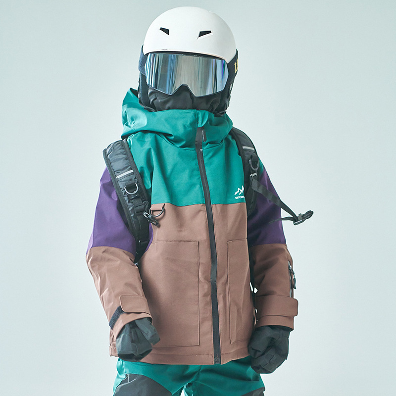 Трехцветный утолщенный ветрозащитный и теплый детский лыжный костюм для активного отдыха на природе с капюшоном, модная детская зимняя парка.