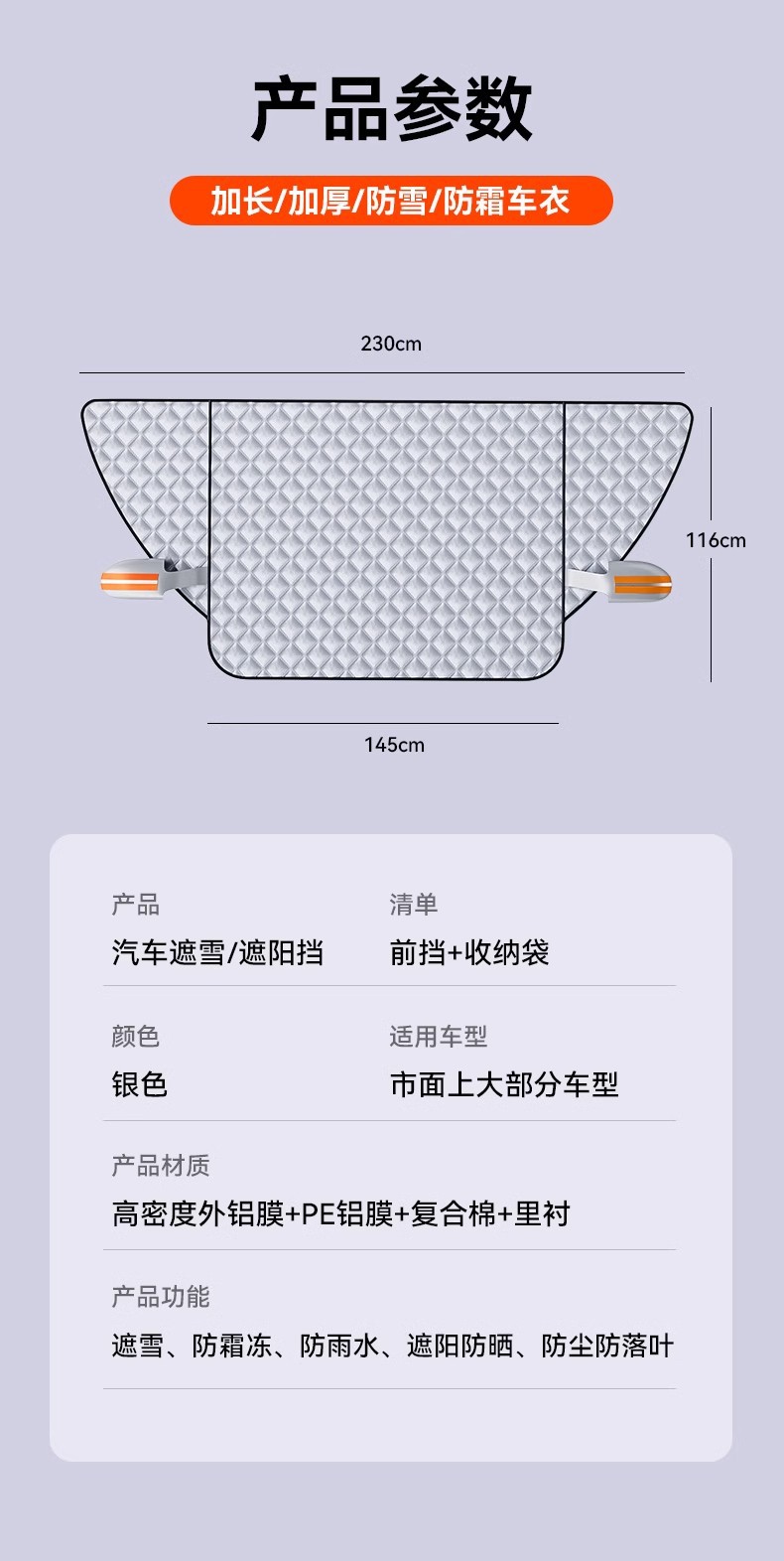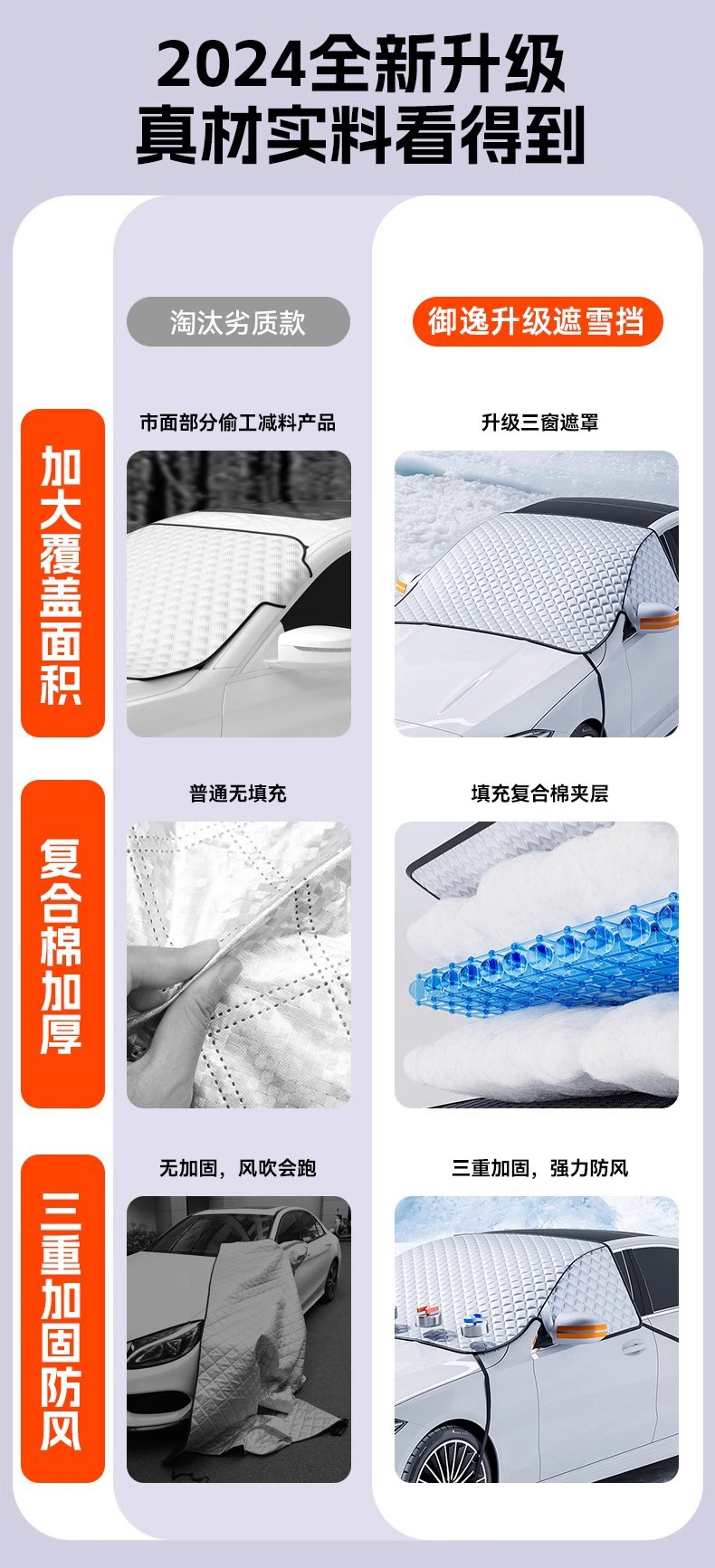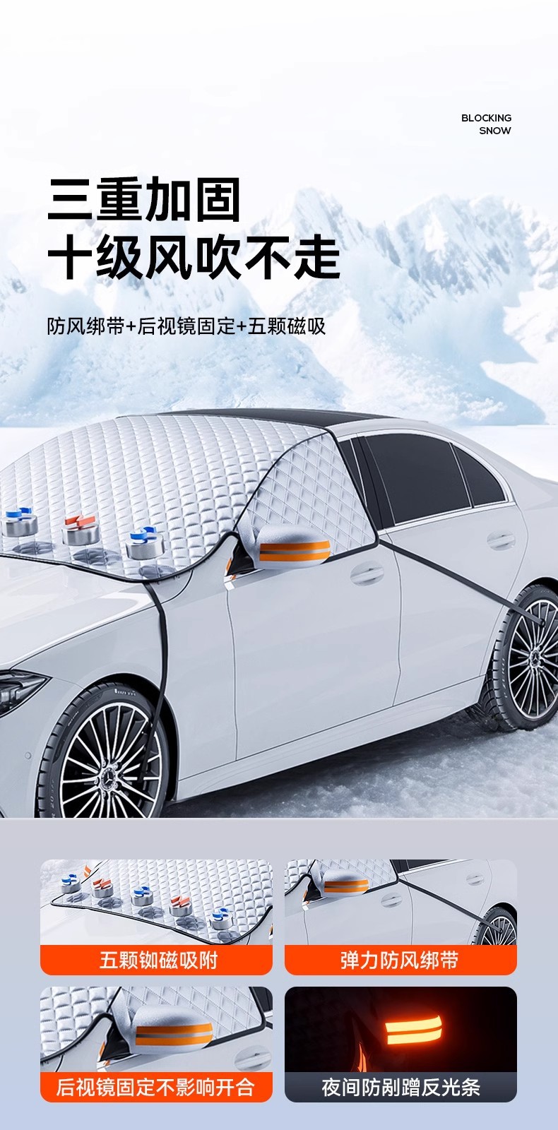 5 магнитных моделей автомобилей; 5 магнитная модель внедорожника; 5 магнитных моделей автомобилей + ветрозащитная веревка; 5 магнитная модель внедорожника + ветрозащитная веревка; 5 магнитных щитков для снега + ветрозащитная веревка + боковые окна (обычно для седанов и внедорожников); Тонкий дверной зажим; Толстый дверной зажим