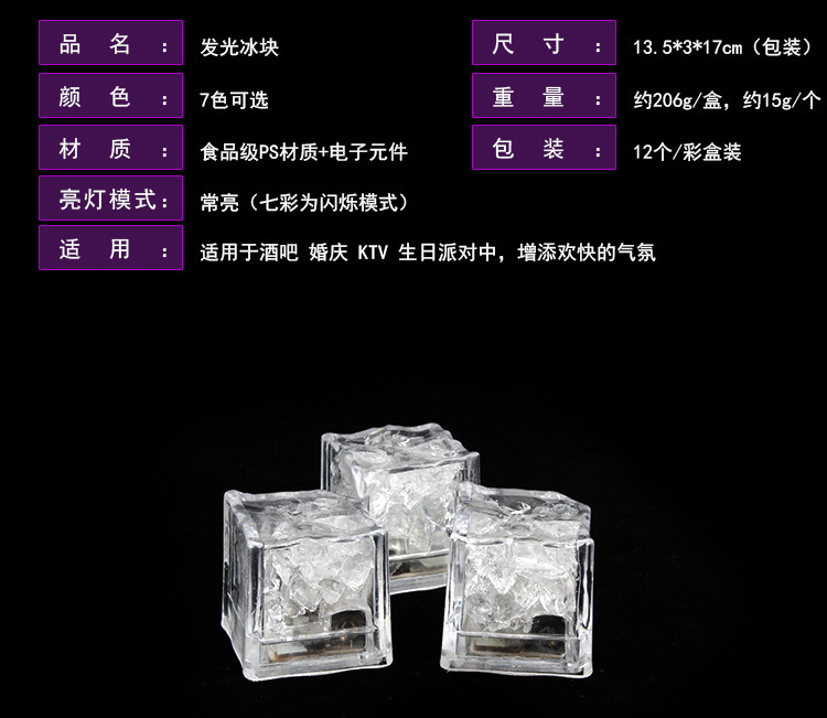 Светящиеся кубики льда, разноцветные мигающие, светящийся кубик, игрушечный бар КТВ, сенсорная лампа кубика льда, трансграничная при открытии к воде.