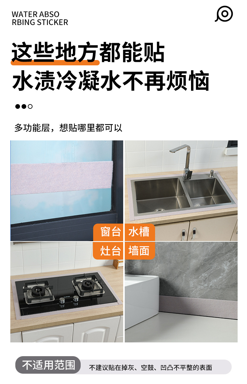 Толстая войлочная хлопчатобумажная лента для оконного стекла, поглощающая воду, анти-конденсация воды зимой подоконник