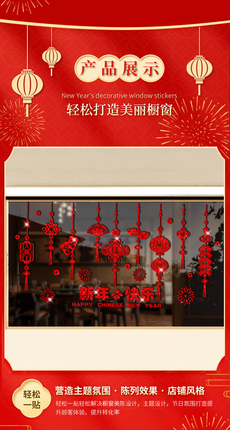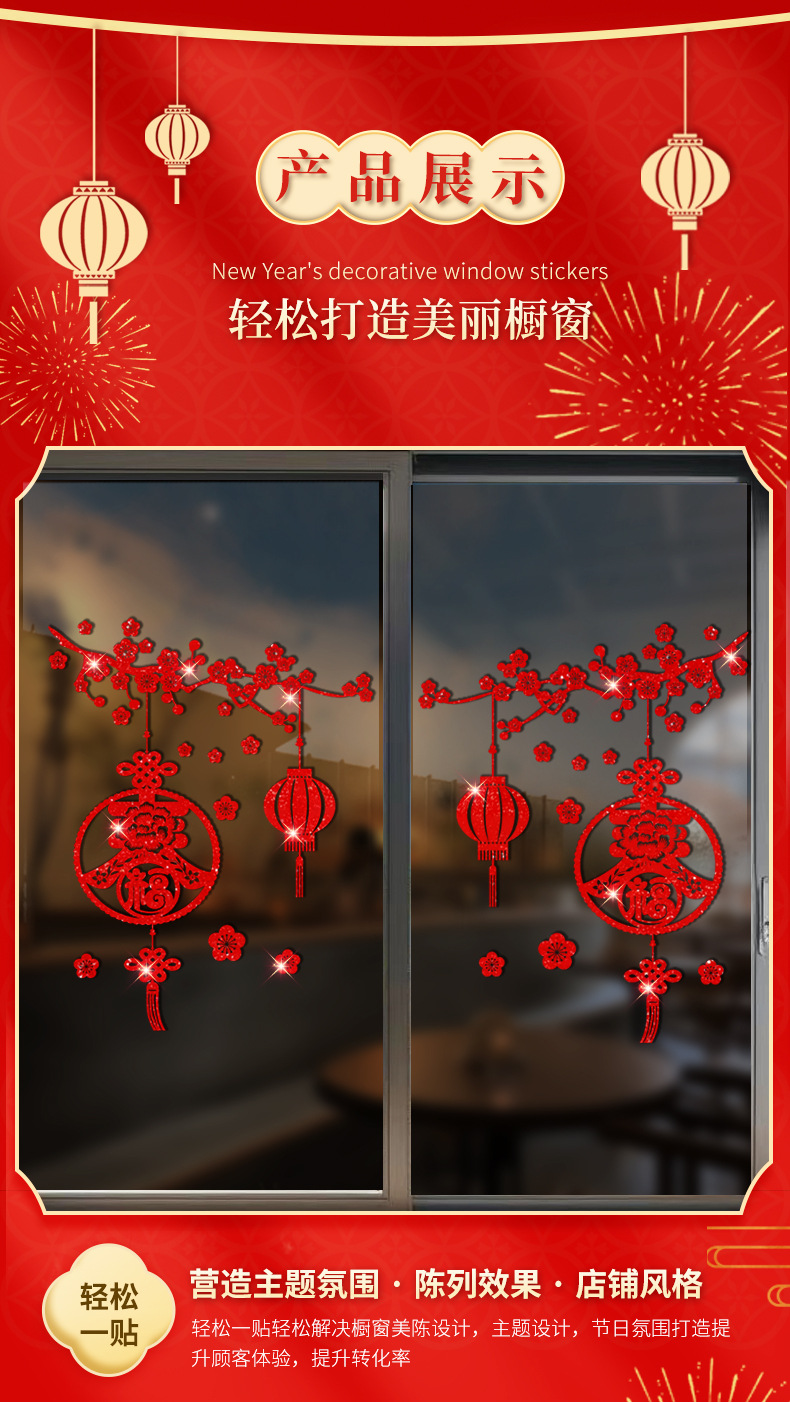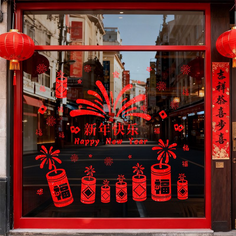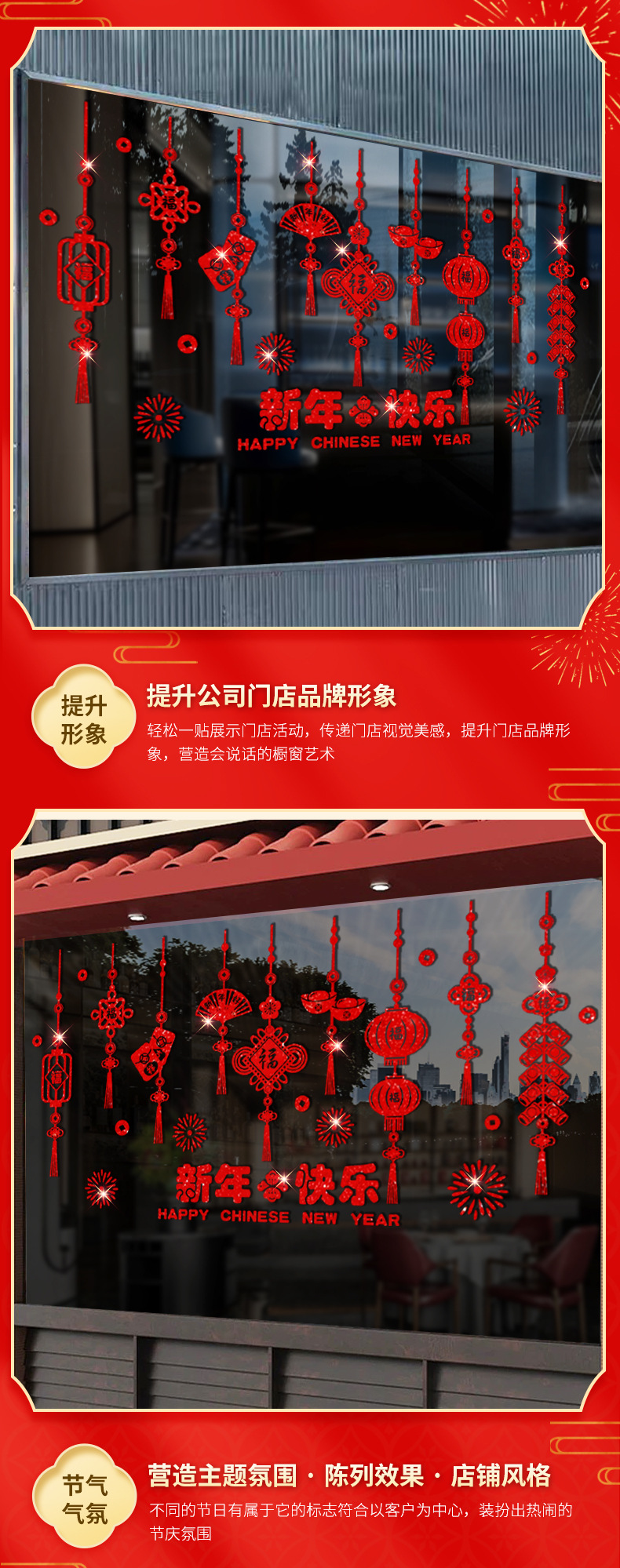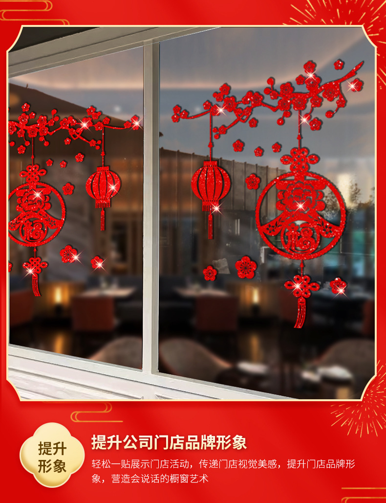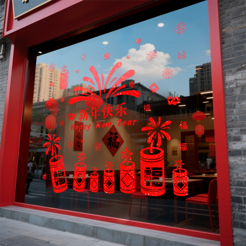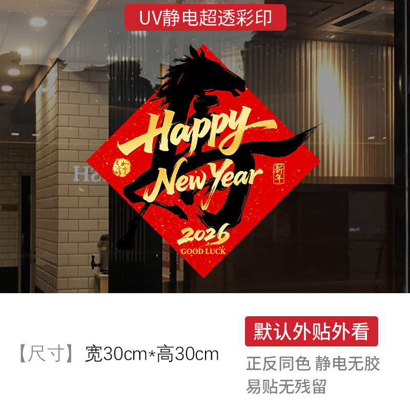Новый год 2026, Год Лошади, Праздник Весны, статичные декоративные элементы для создания атмосферы, наклейки на стеклянные двери торговых центров, красные украшения для окон