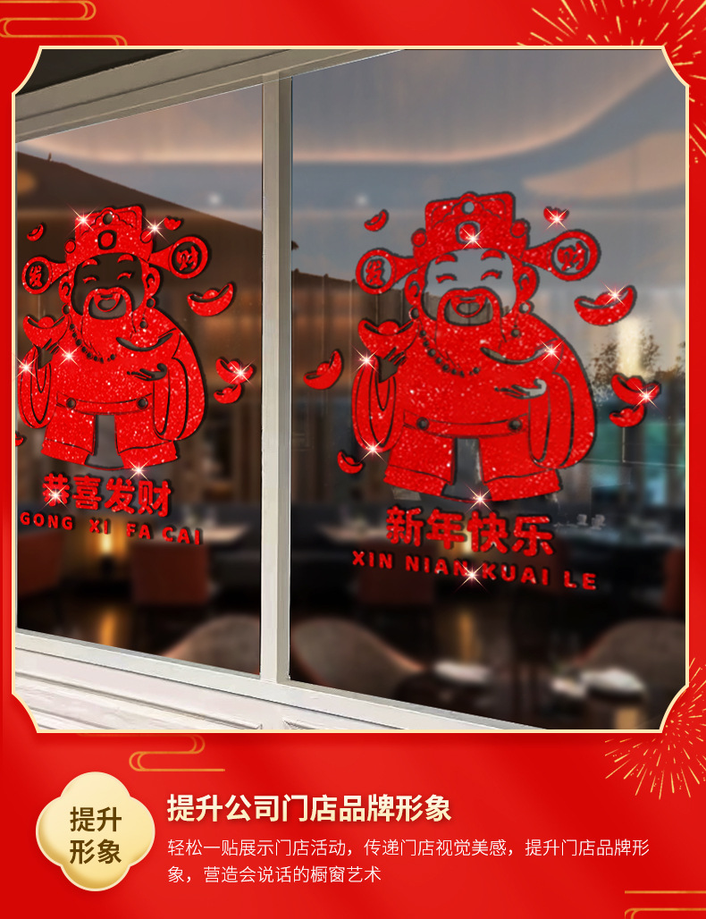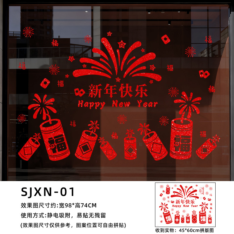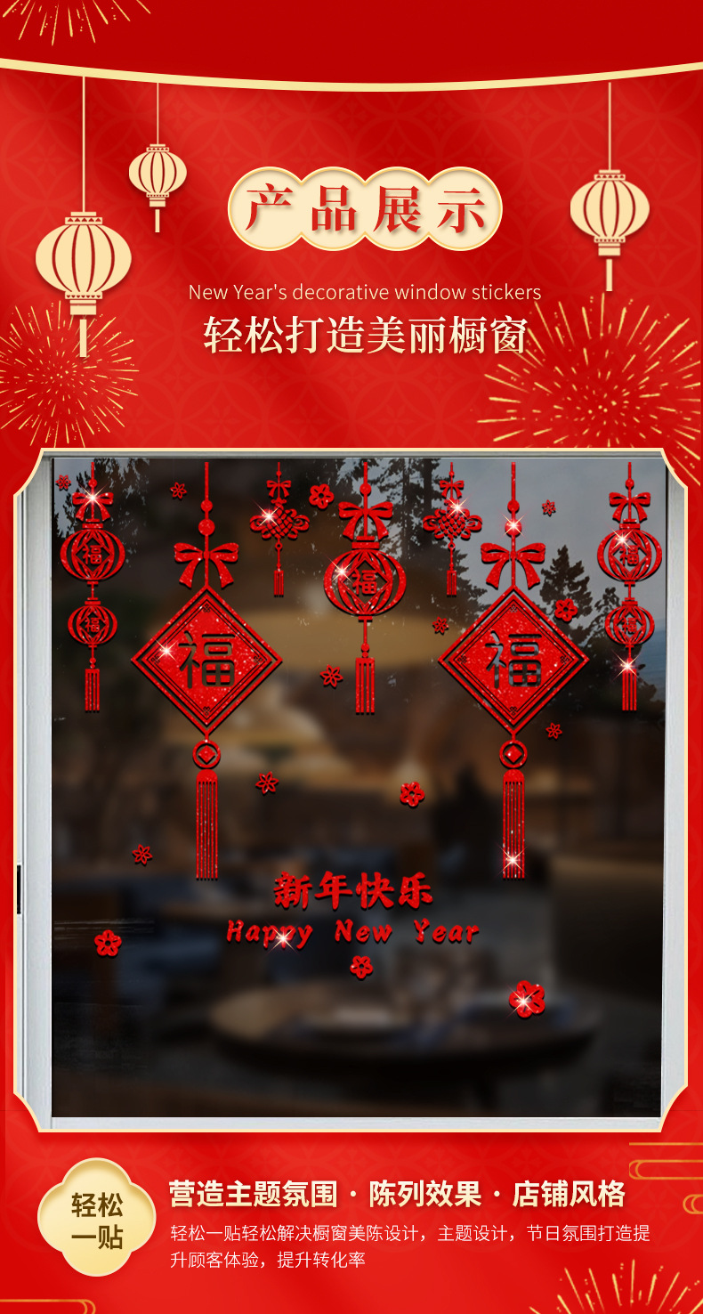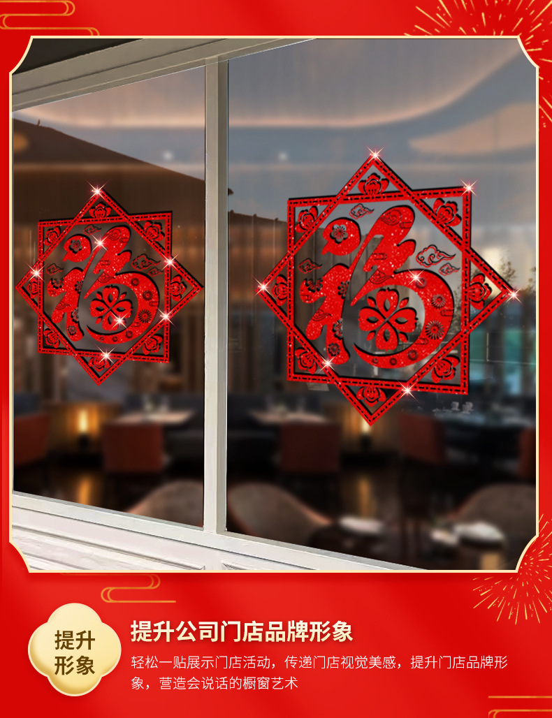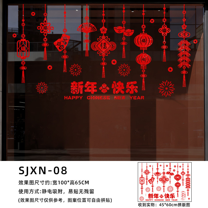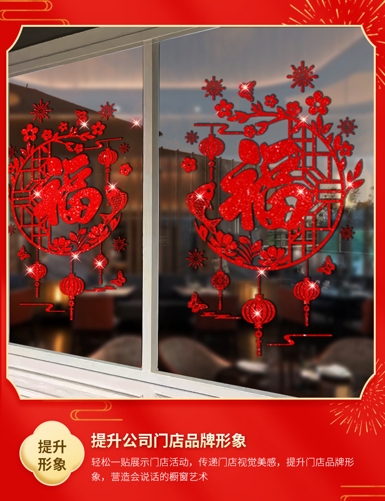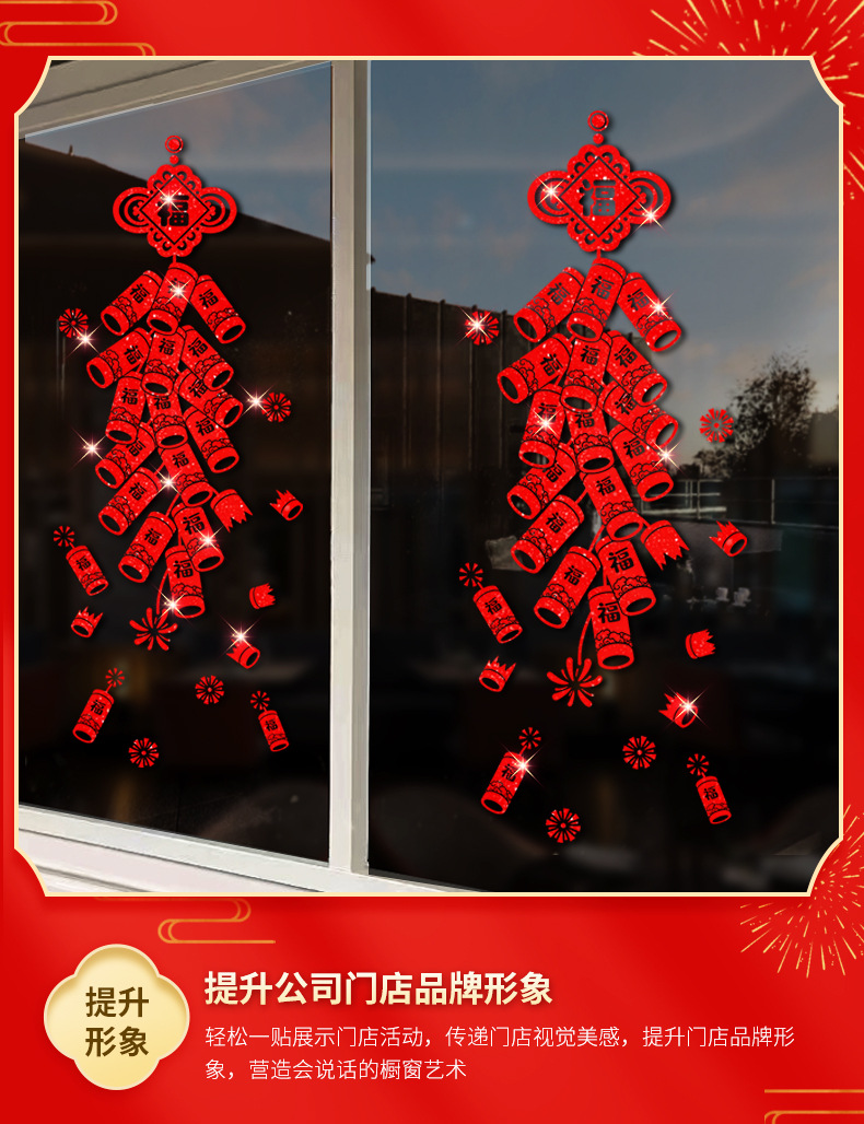 Новый год 2026, Год Лошади, Праздник Весны, статичные декоративные элементы для создания атмосферы, наклейки на стеклянные двери торговых центров, красные украшения для окон