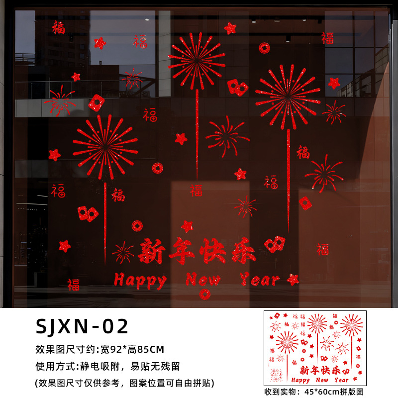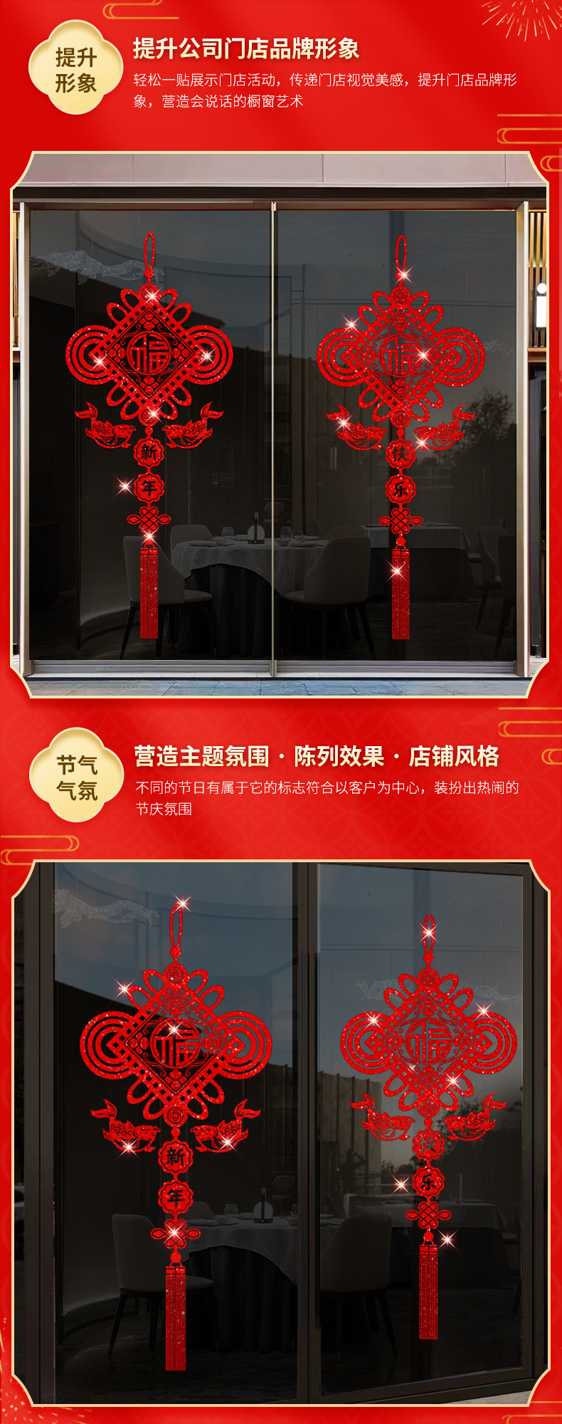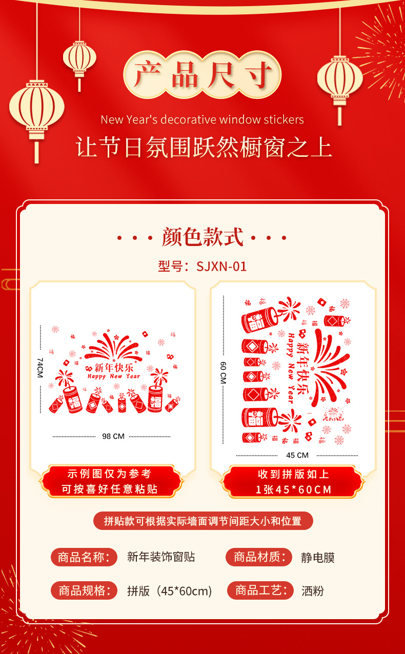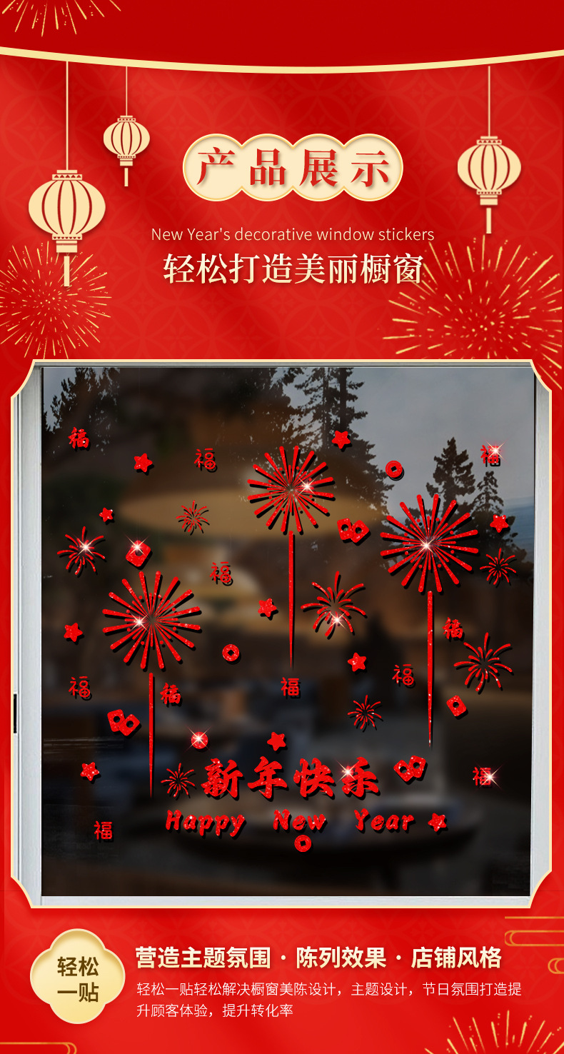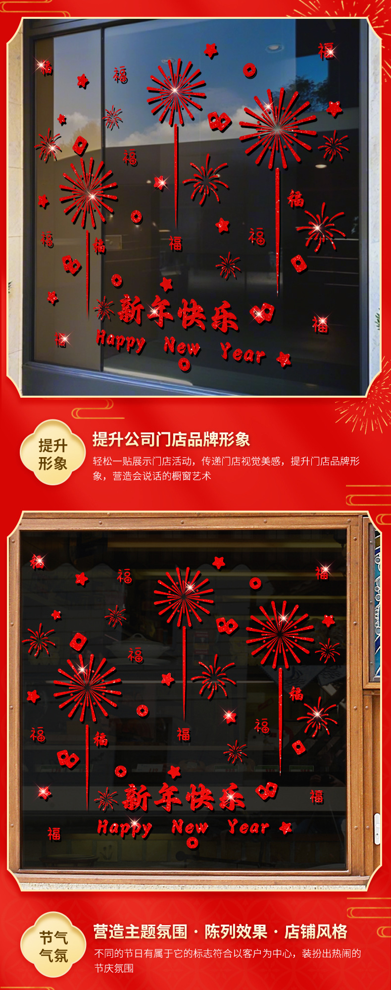 Новый год 2026, Год Лошади, Праздник Весны, статичные декоративные элементы для создания атмосферы, наклейки на стеклянные двери торговых центров, красные украшения для окон