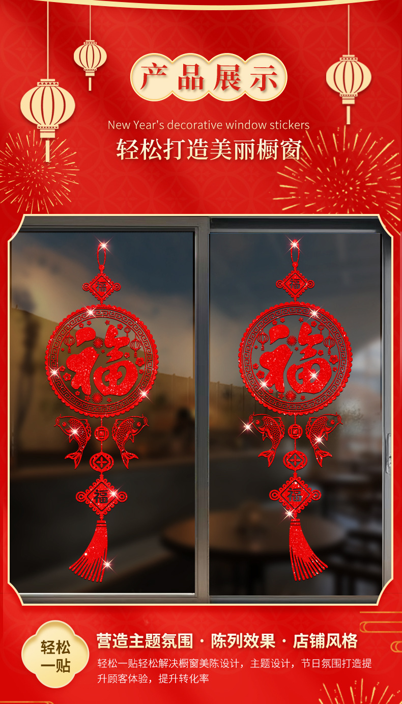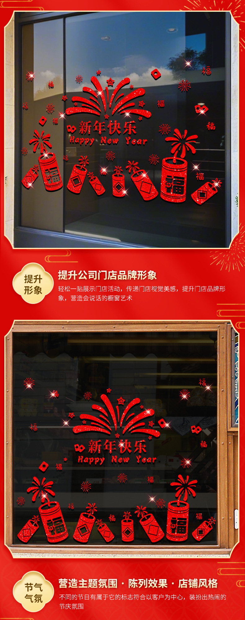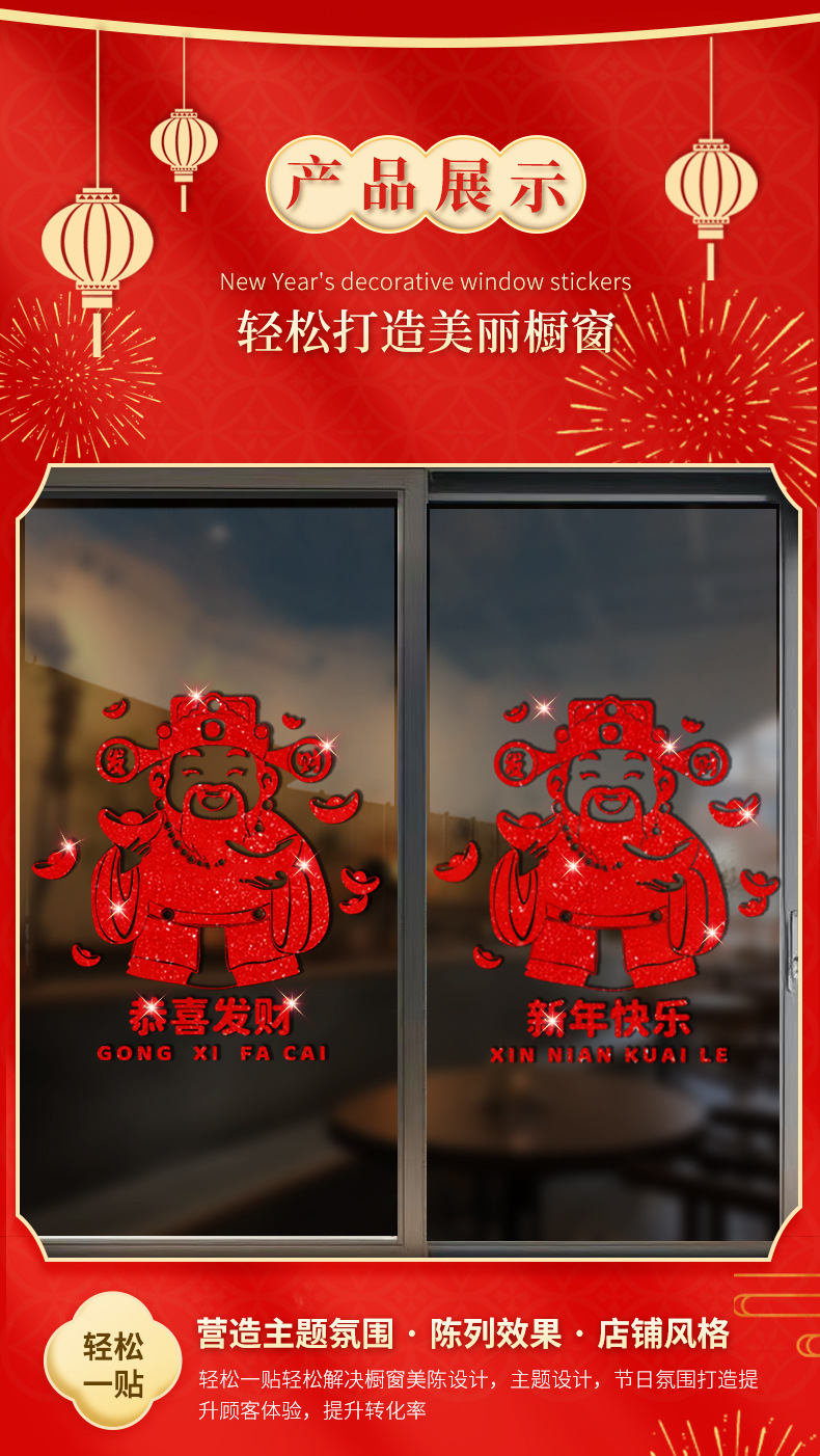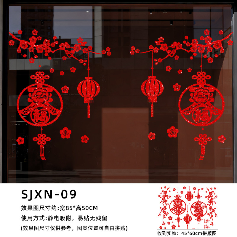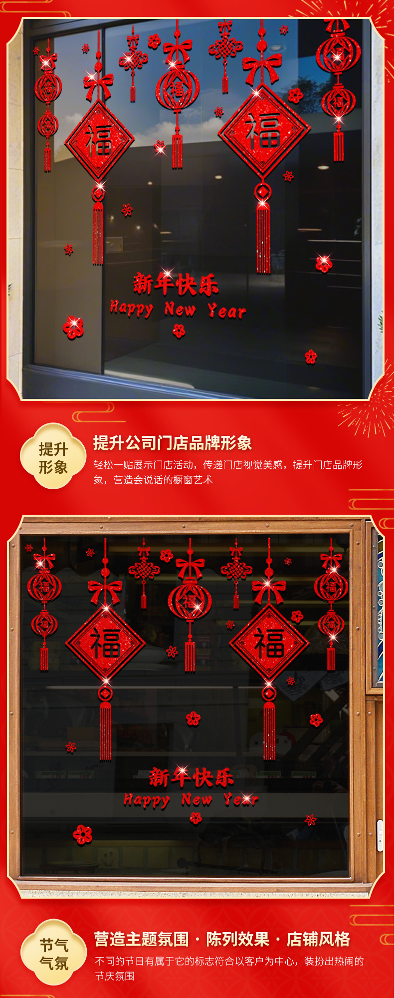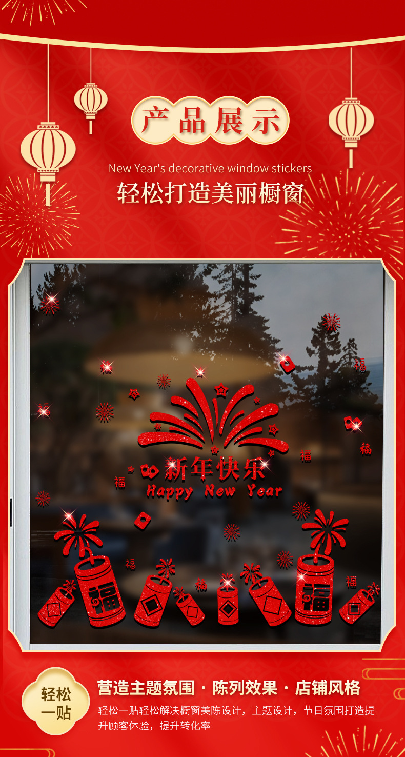 Новый год 2026, Год Лошади, Праздник Весны, статичные декоративные элементы для создания атмосферы, наклейки на стеклянные двери торговых центров, красные украшения для окон