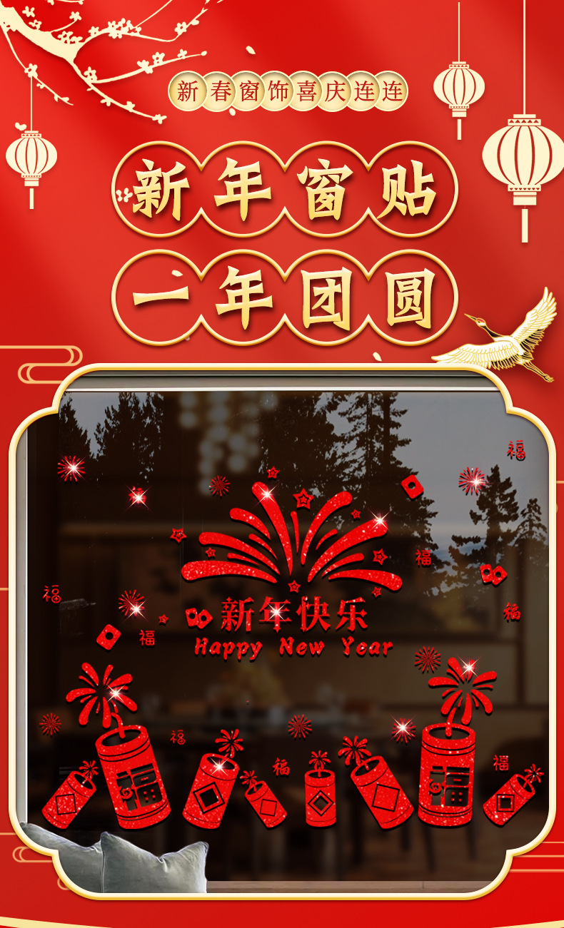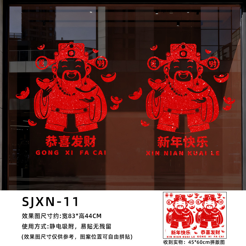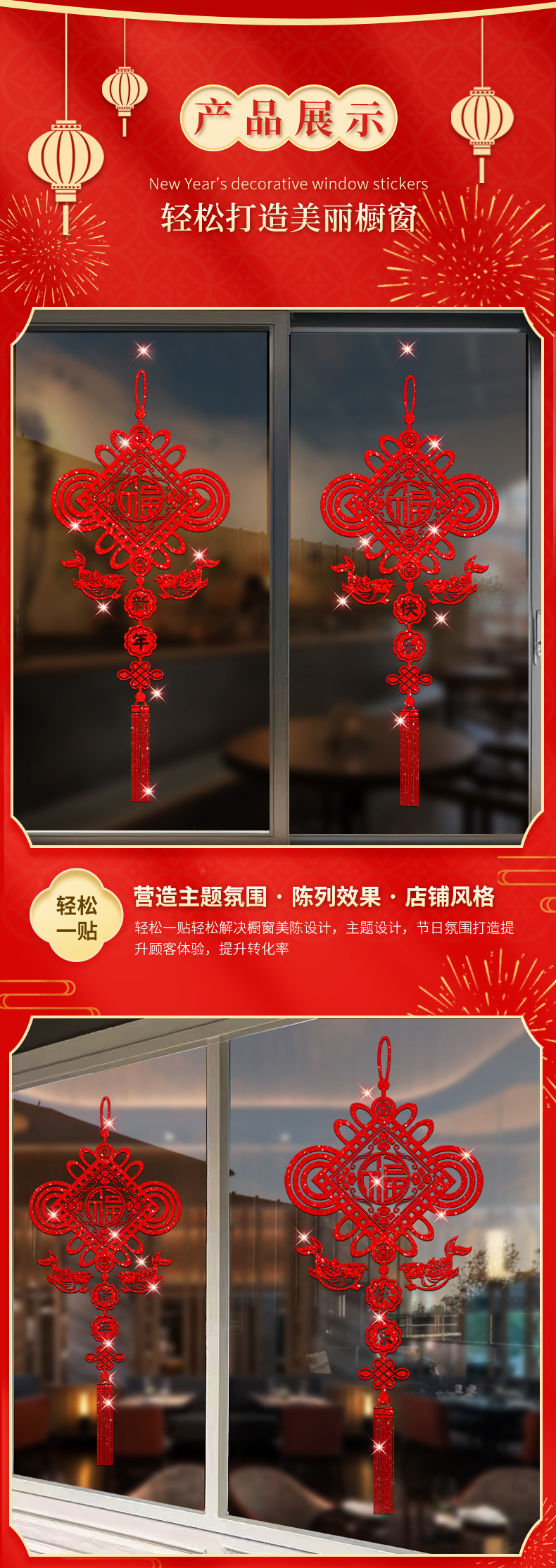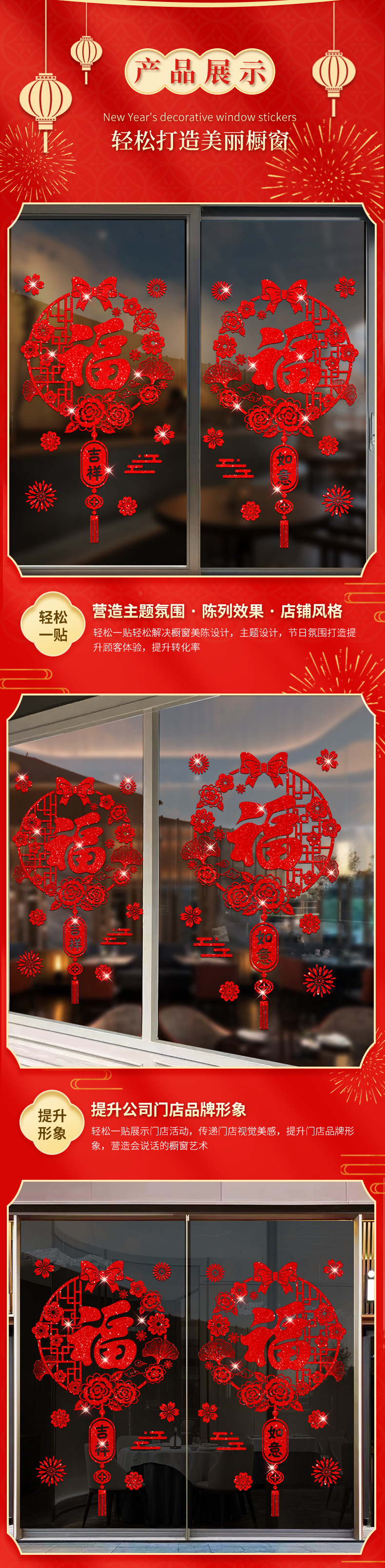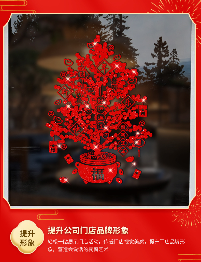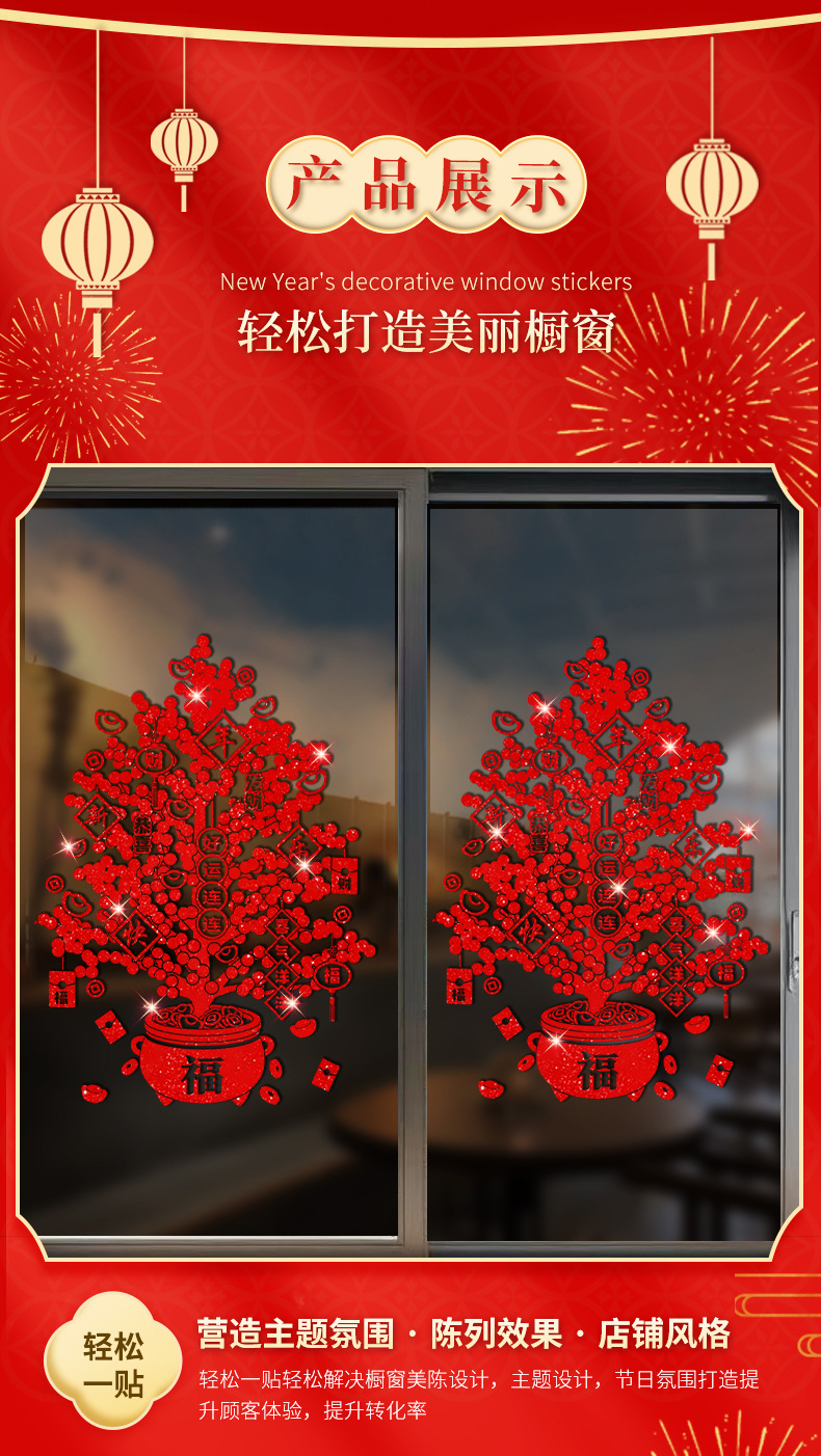 Новый год 2026, Год Лошади, Праздник Весны, статичные декоративные элементы для создания атмосферы, наклейки на стеклянные двери торговых центров, красные украшения для окон