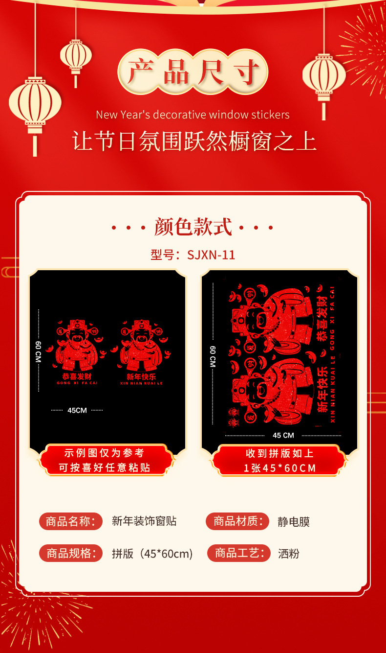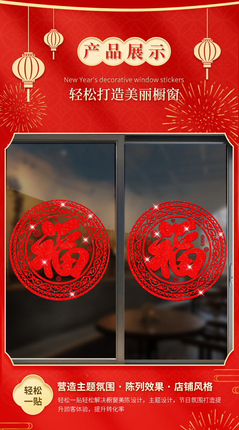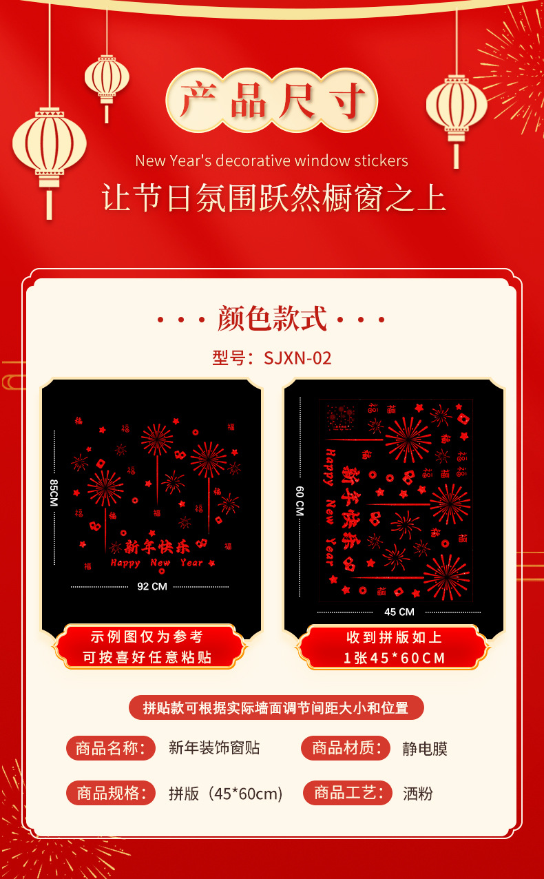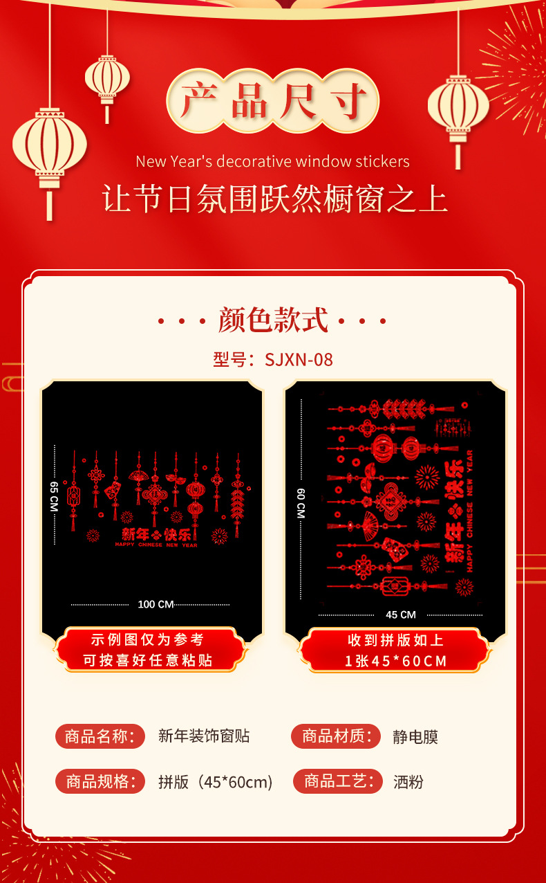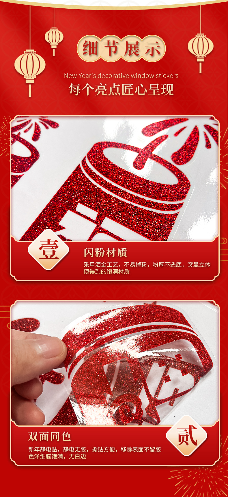 Новый год 2026, Год Лошади, Праздник Весны, статичные декоративные элементы для создания атмосферы, наклейки на стеклянные двери торговых центров, красные украшения для окон