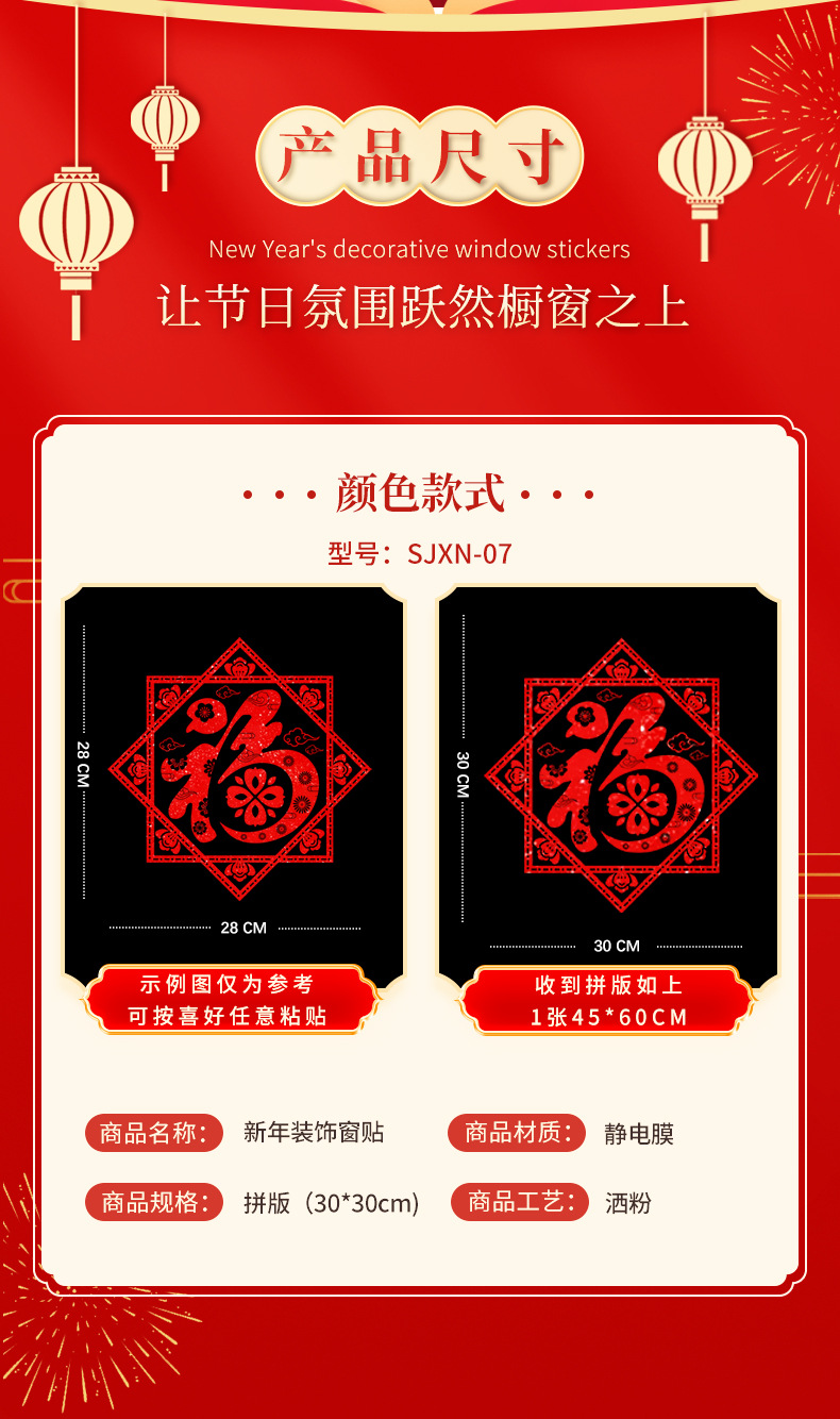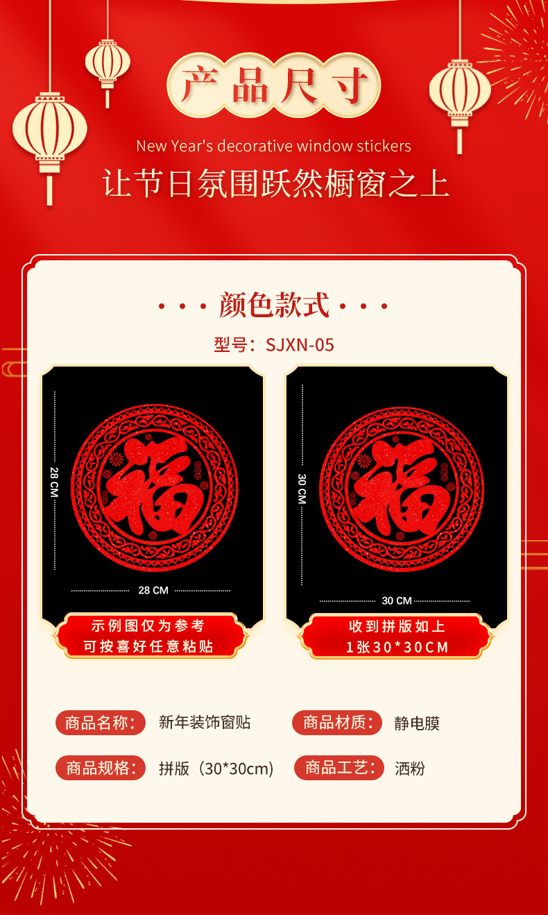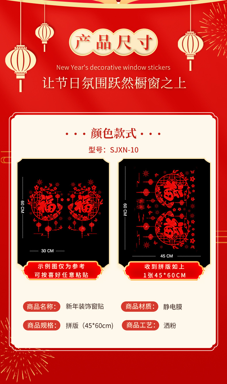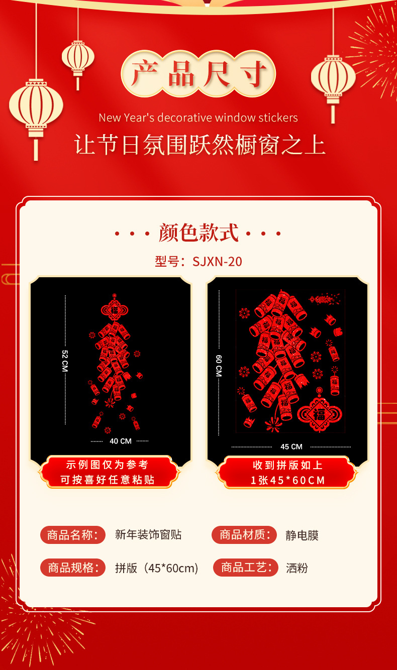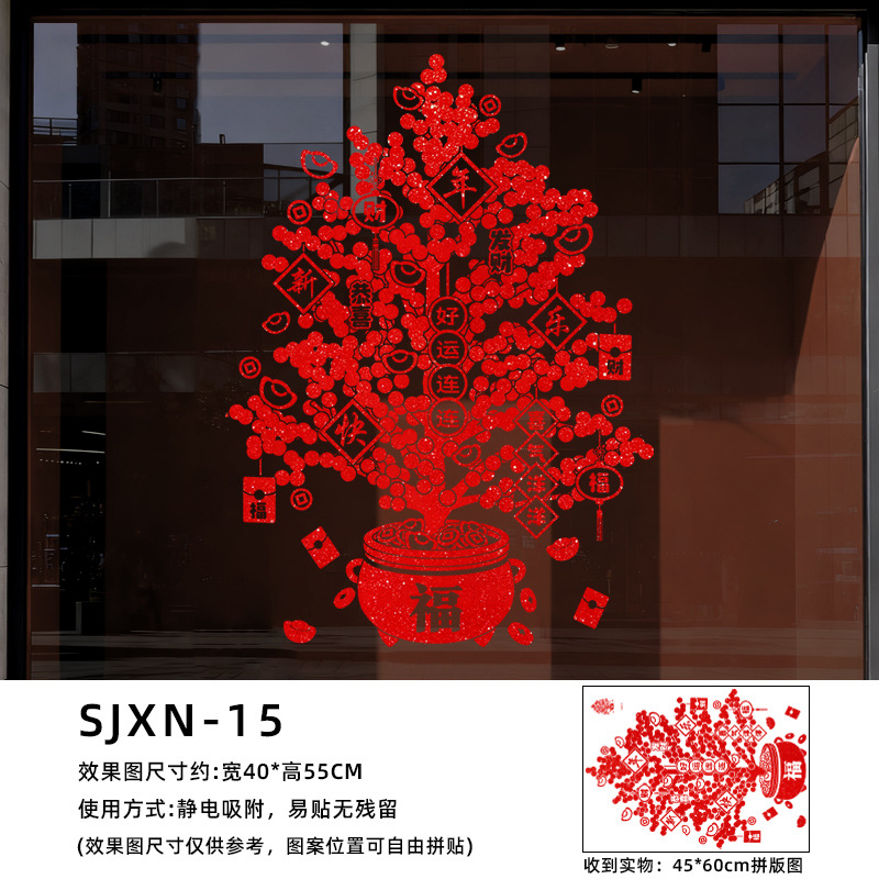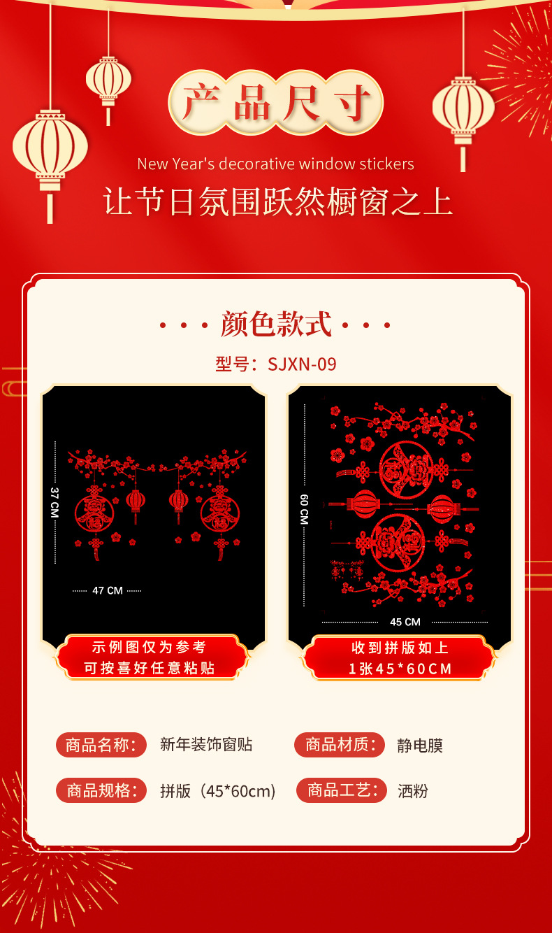 Новый год 2026, Год Лошади, Праздник Весны, статичные декоративные элементы для создания атмосферы, наклейки на стеклянные двери торговых центров, красные украшения для окон