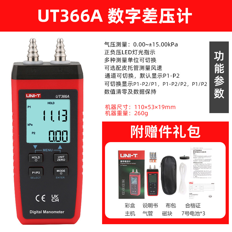 Улид UT366A Высокоточный цифровой дифференциальный манометр Кондиционирование системы вентиляции воздуховода Вентиляционный тестер давления воздуха измеритель дифференциального давления