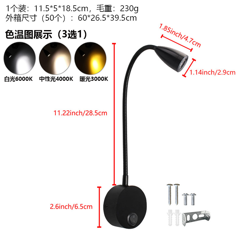 Светодиодный фонарь с гусиной шеей змеевидное чтение шланг лампа 3W отель прикроватный шланг настенный фонарь гусиная шея лампа для чтения шланг прожекционный