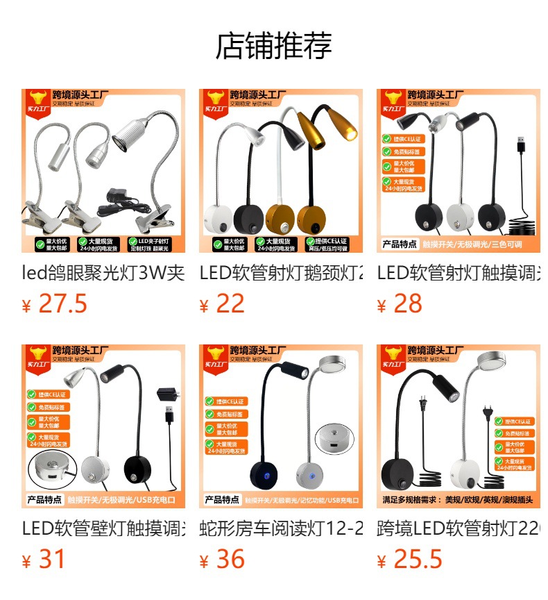 1.产品名称:软管射灯、鹅颈射灯、酒店壁灯、床头灯、蛇形阅读灯