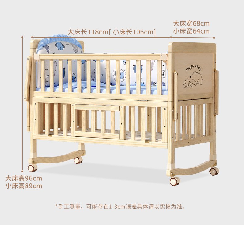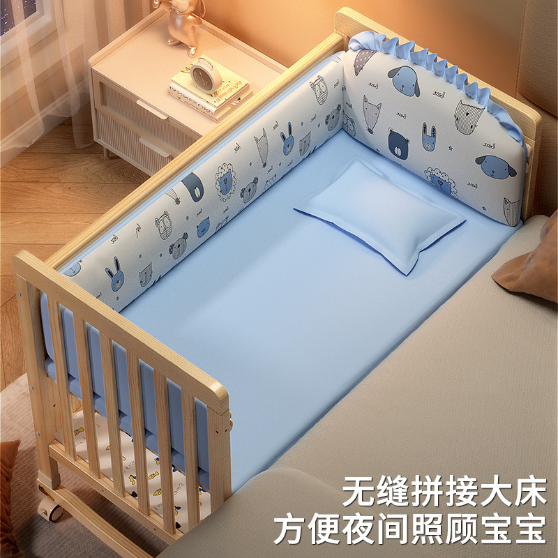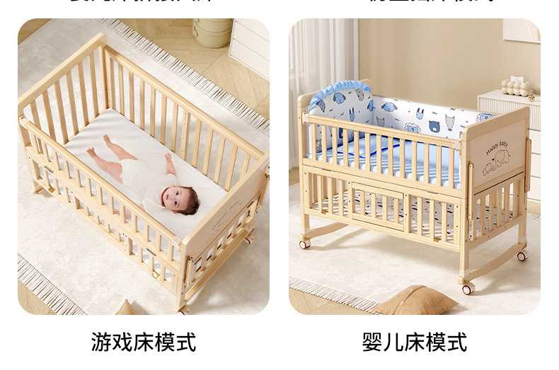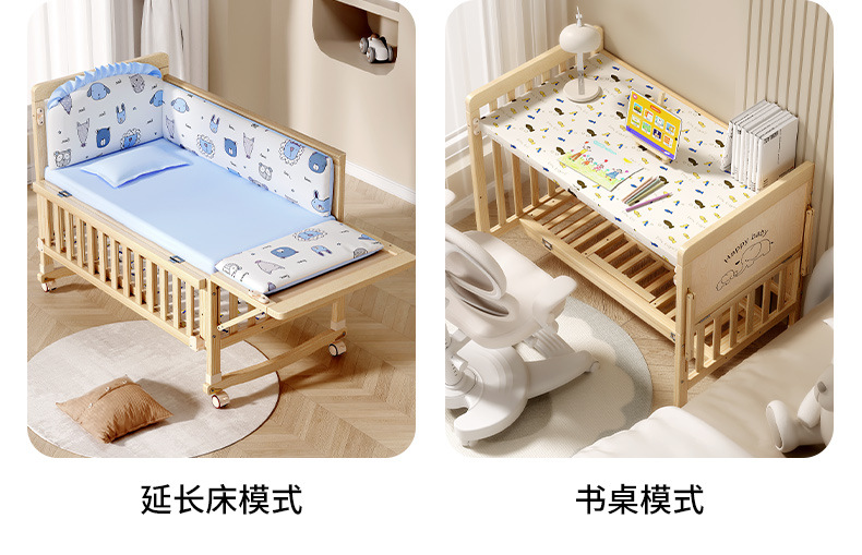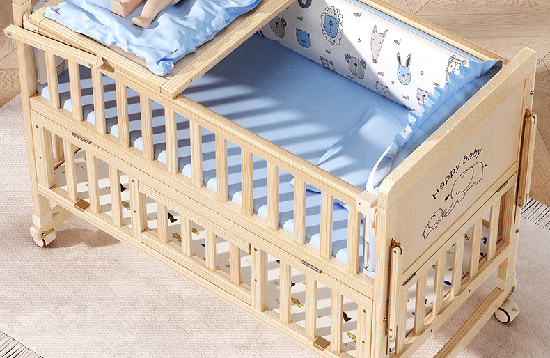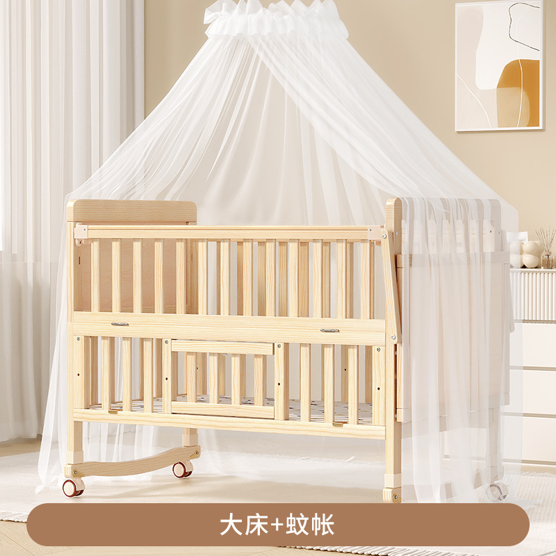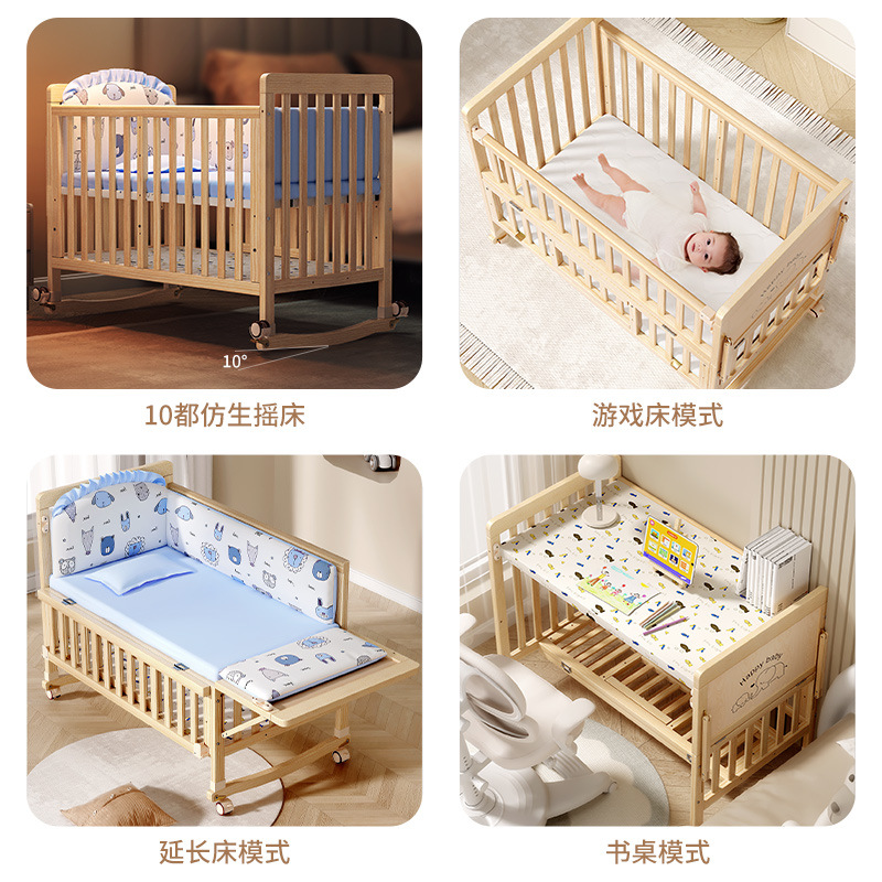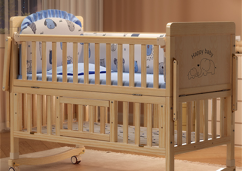 Детская кроватка-манеж из массива дерева, без покраски, многофункциональная, для новорожденных, передвижная, с возможностью расширения, большая кровать