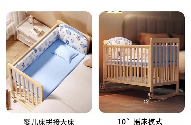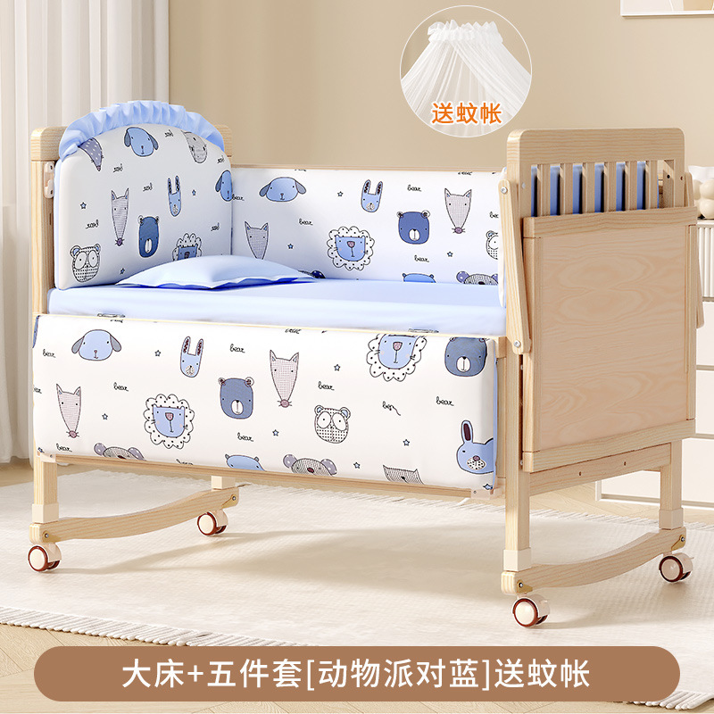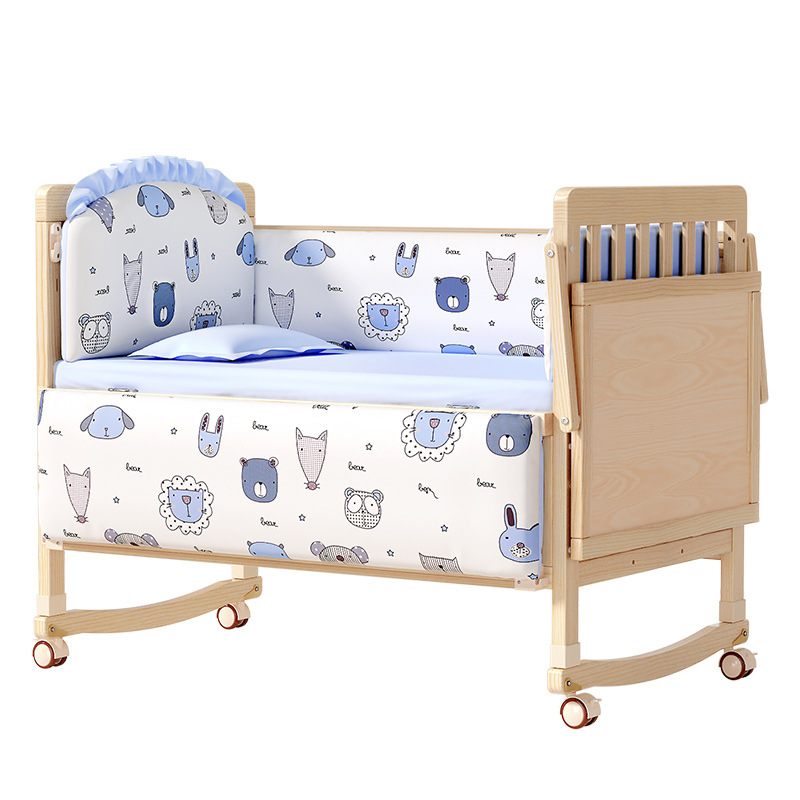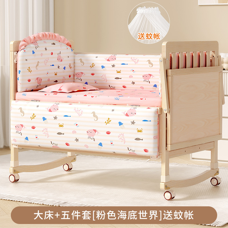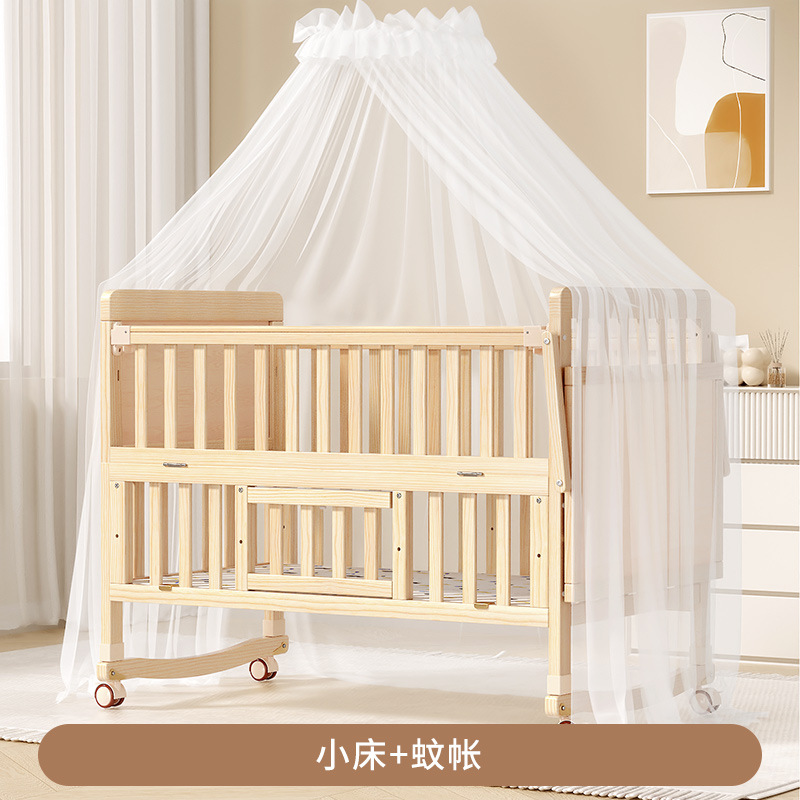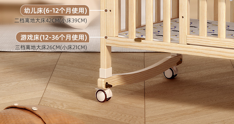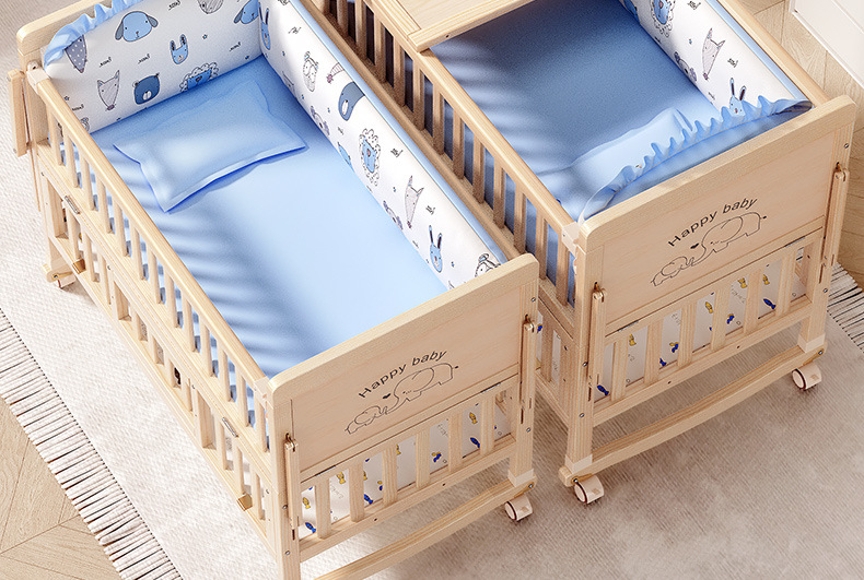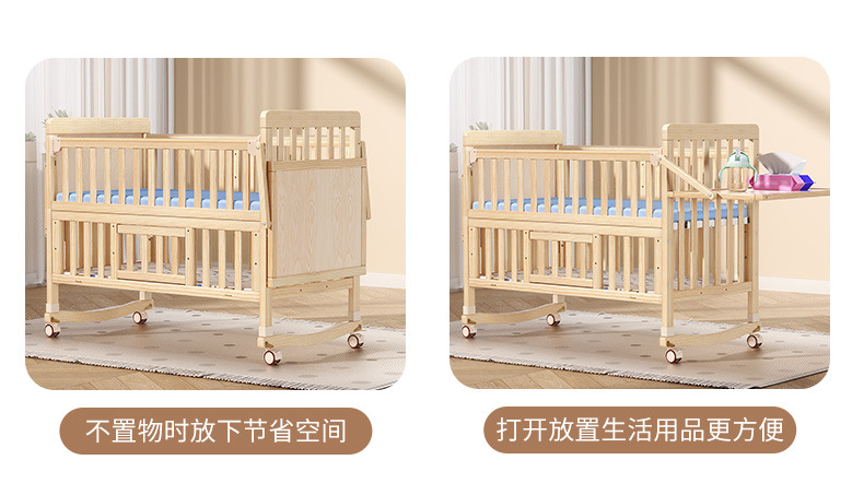 Детская кроватка-манеж из массива дерева, без покраски, многофункциональная, для новорожденных, передвижная, с возможностью расширения, большая кровать