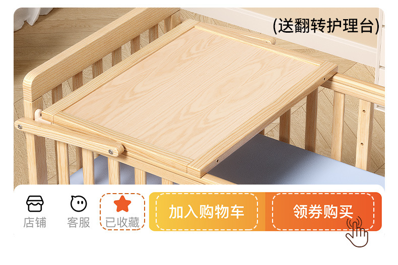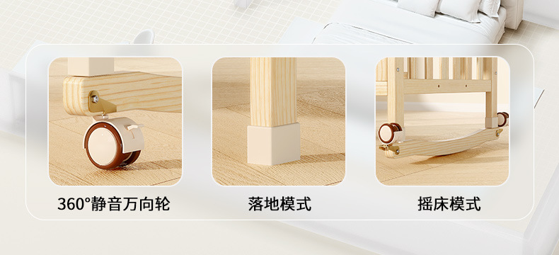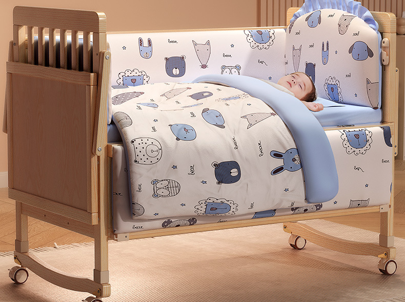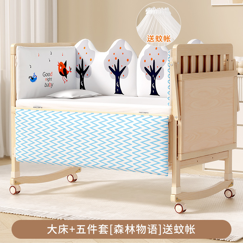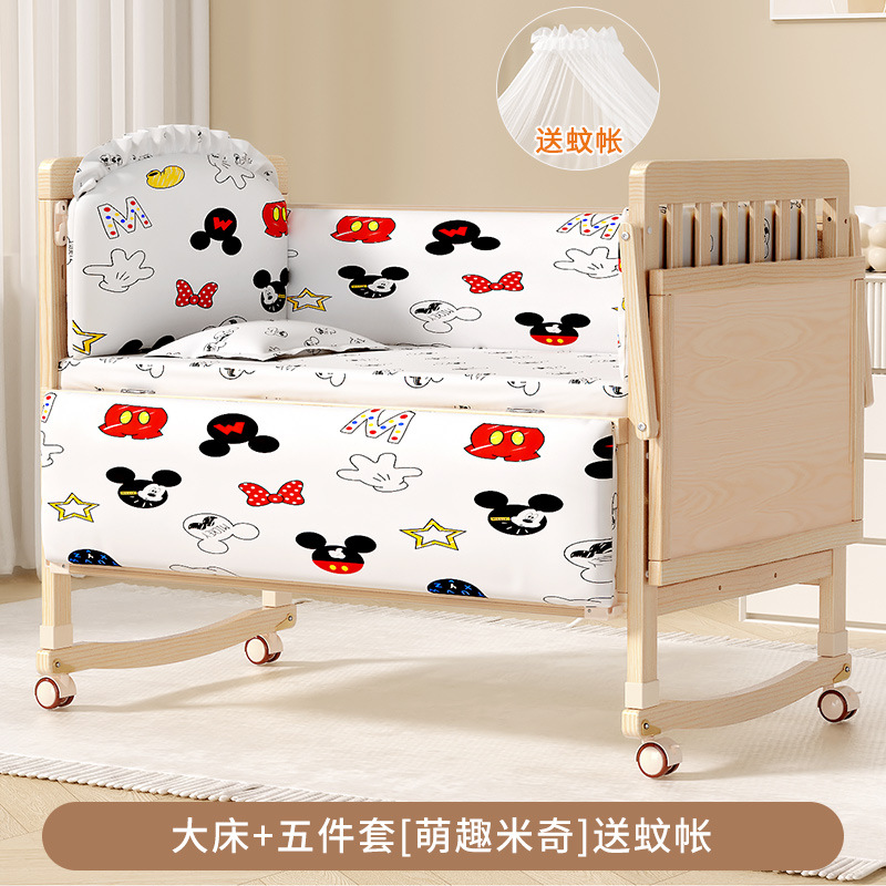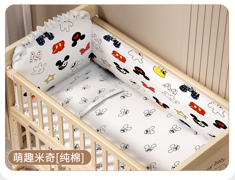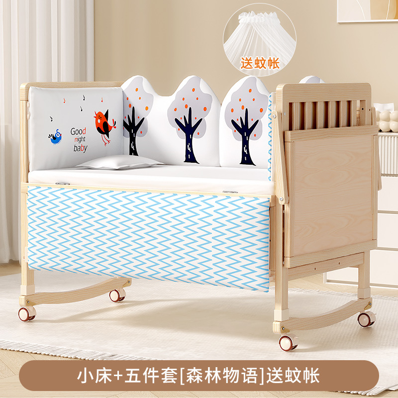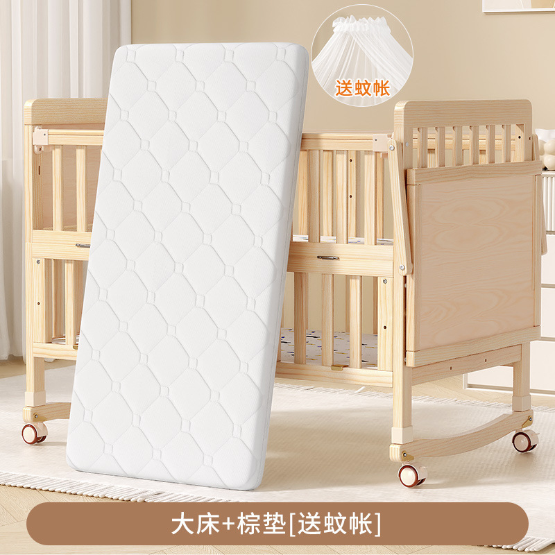 Детская кроватка-манеж из массива дерева, без покраски, многофункциональная, для новорожденных, передвижная, с возможностью расширения, большая кровать
