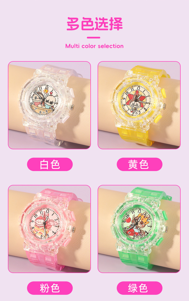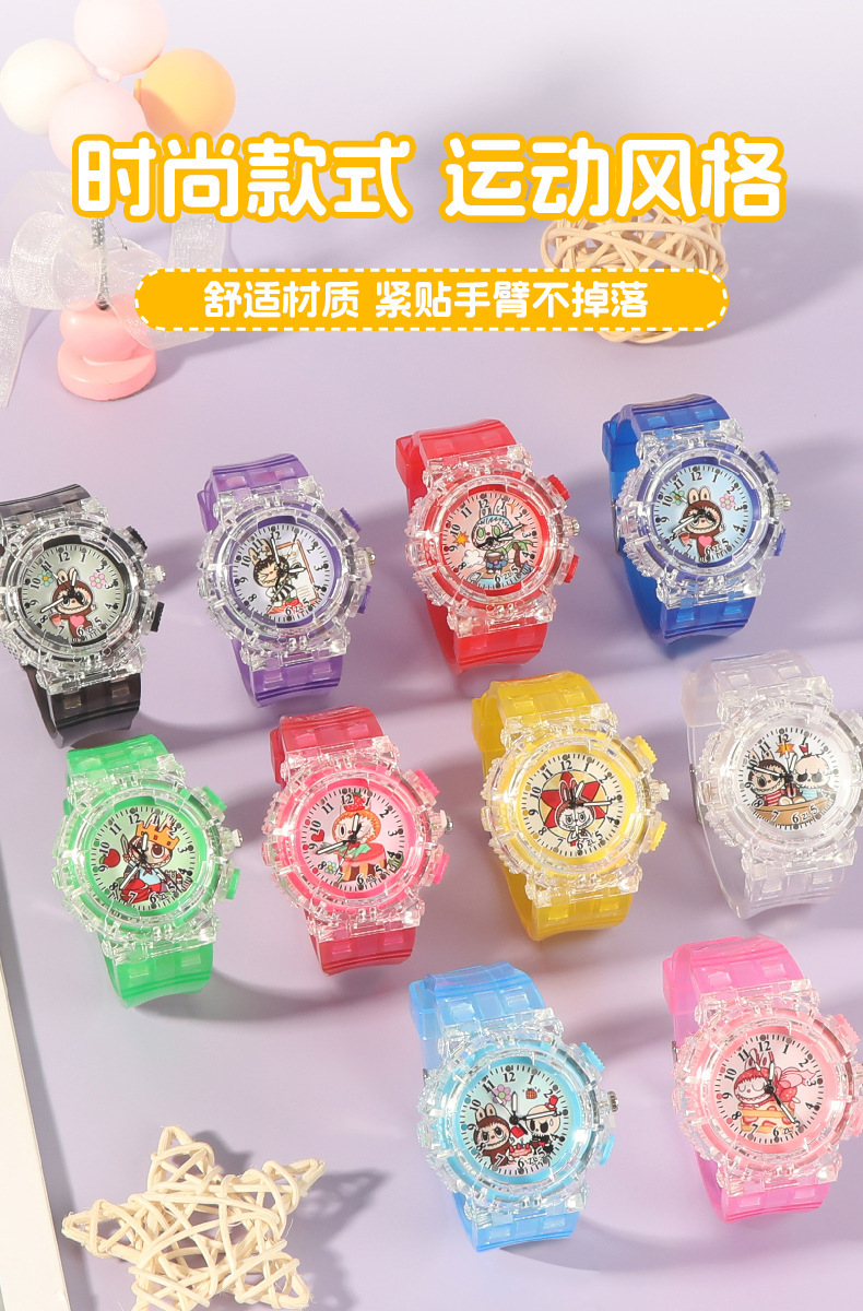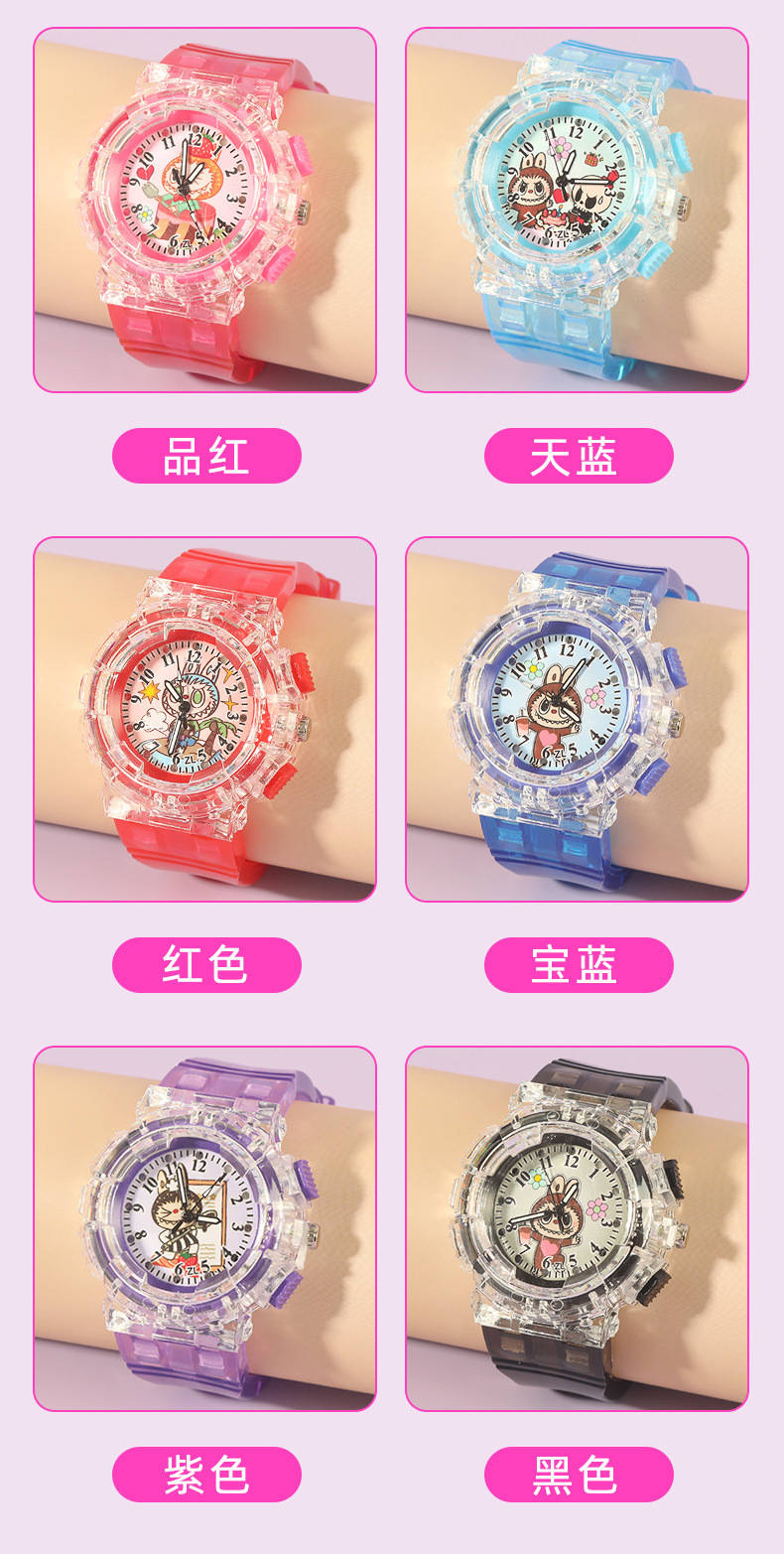 Детские часы Мультфильм светящиеся электронные часы Симпатичные часы Лаббу для девочек часы для учащихся начальной школы Цифровые указатели кварцевые часы