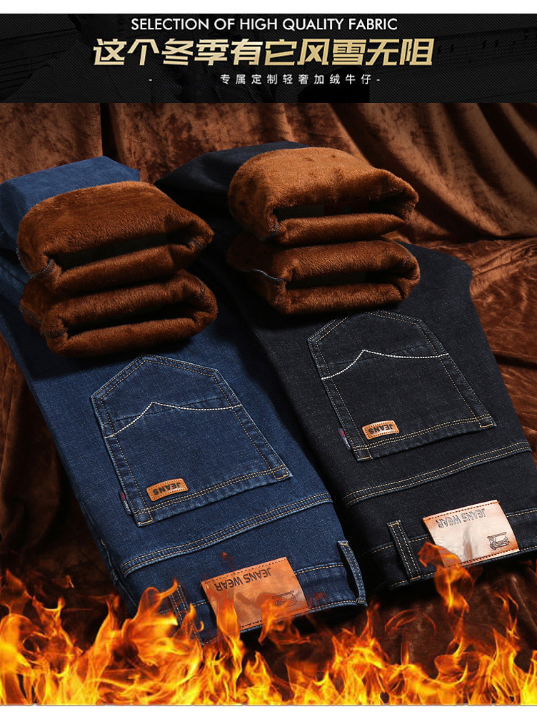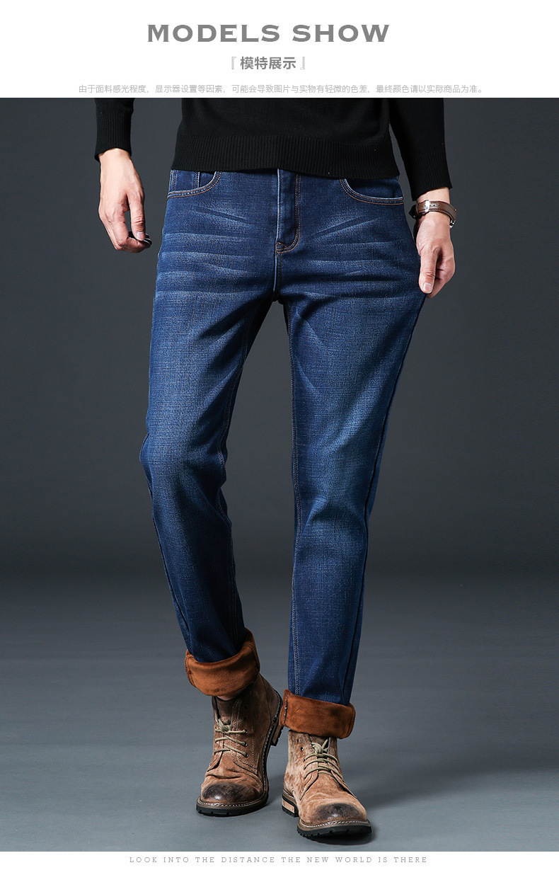 Мужские джинсы оптом на заказ, свободные прямые утепленные повседневные брюки для молодежи на осень и зиму, для стильных мужчин