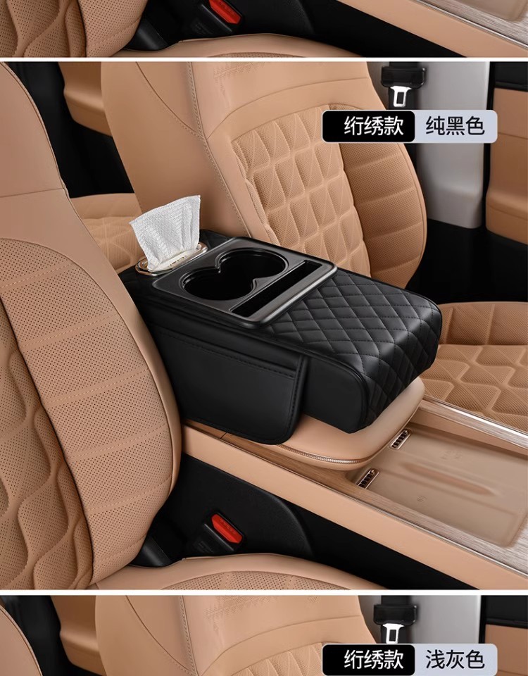 Автомобильные бумажные салфетки Коробки для подлокотников Подушка для повышения Подлокотник для автомобиля Центральная передовика для хранения сумки для хранения стаканов для воды четыре в одном
