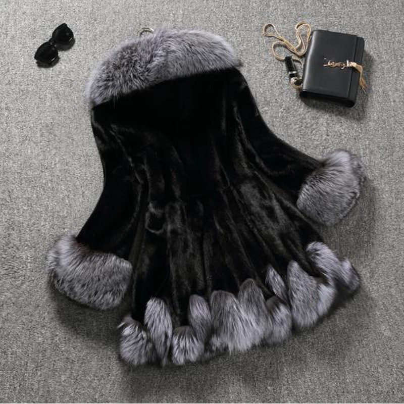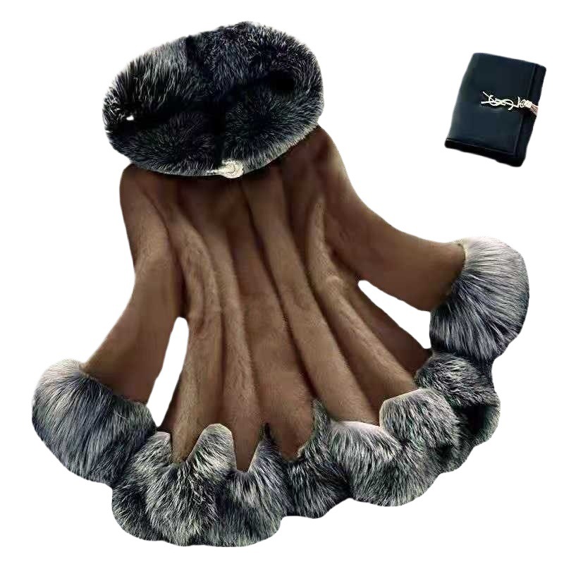 Новая зимняя одежда Haining из искусственного меха 2025 года: укороченное пальто с капюшоном из искусственного меха норки и искусственного меха лисы для женщин