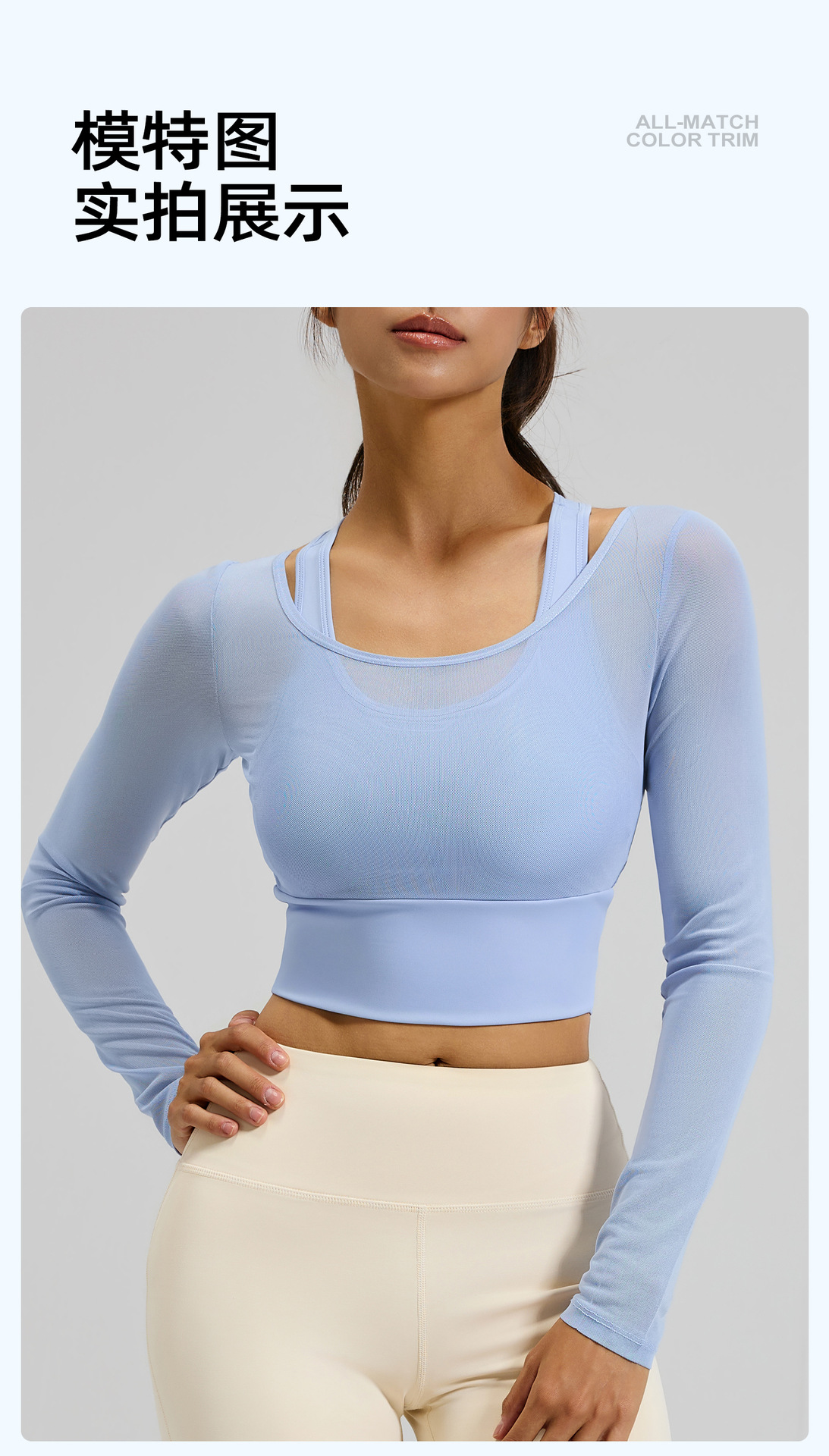 Juyitang весенне-осенняя новая сетчатая одежда из двух предметов для йоги, топы без бюстгальтера, спортивная одежда для фитнеса с длинными рукавами